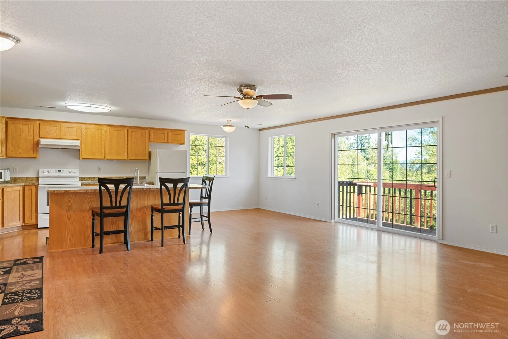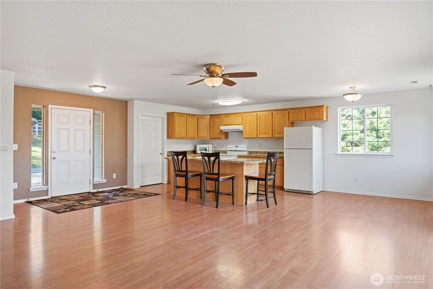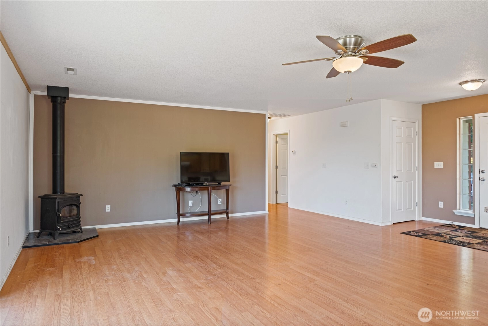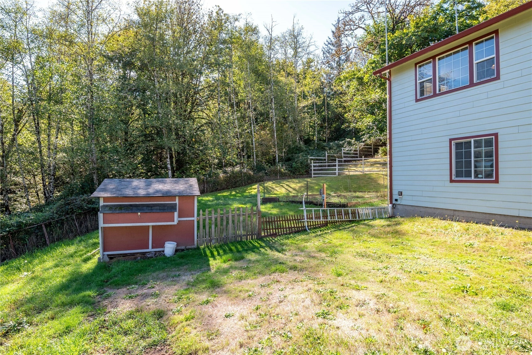Enjoy peaceful country living with this well-maintained home situated on 5.67 acres. The spacious great room offers an open layout perfect for relaxing or entertaining, with direct access to a small patio and newly replaced deck. The primary suite features a walk-in closet and a jetted tub with all new components. The second bedroom is ideal for guests or office use.Downstairs, a full 1,440 sq ft high-ceiling basement offers endless potential—storage, workshop, or future living space. The home is set up for a heat pump with hookups ready for easy installation. Outside, enjoy garden space, fruit trees, and a chicken coop.