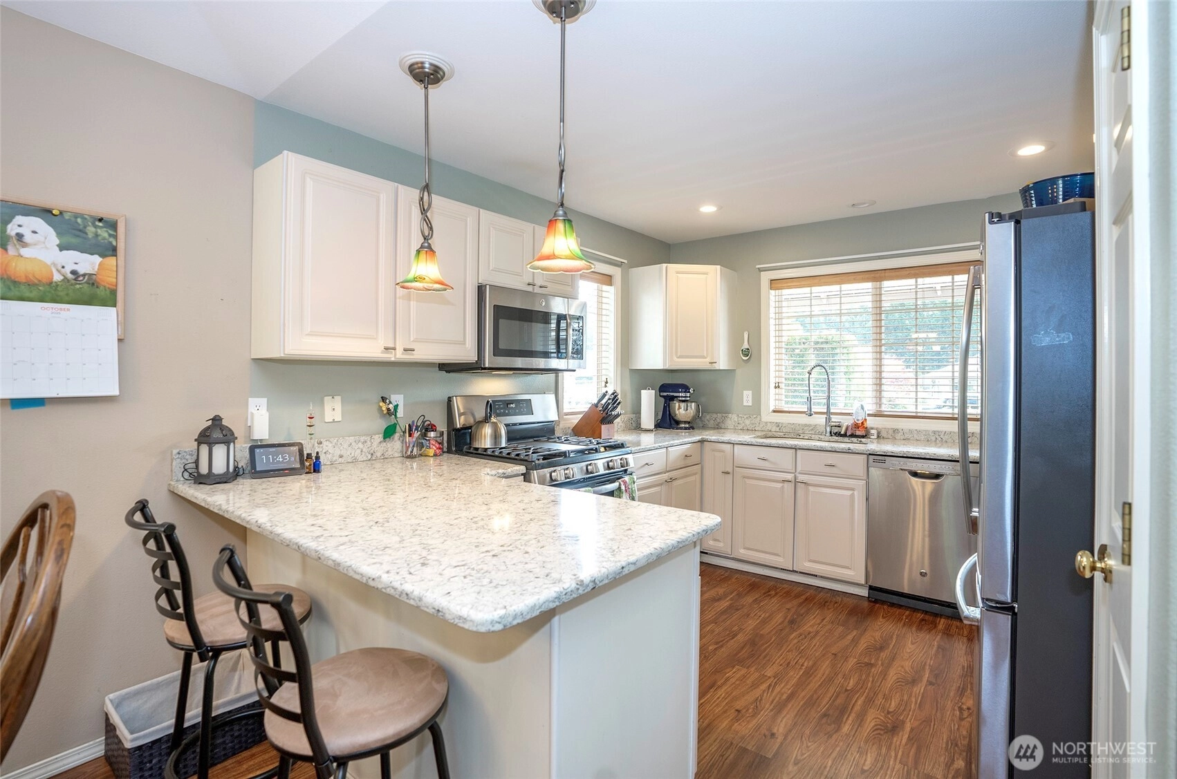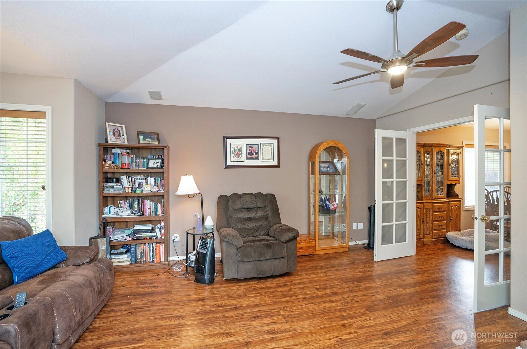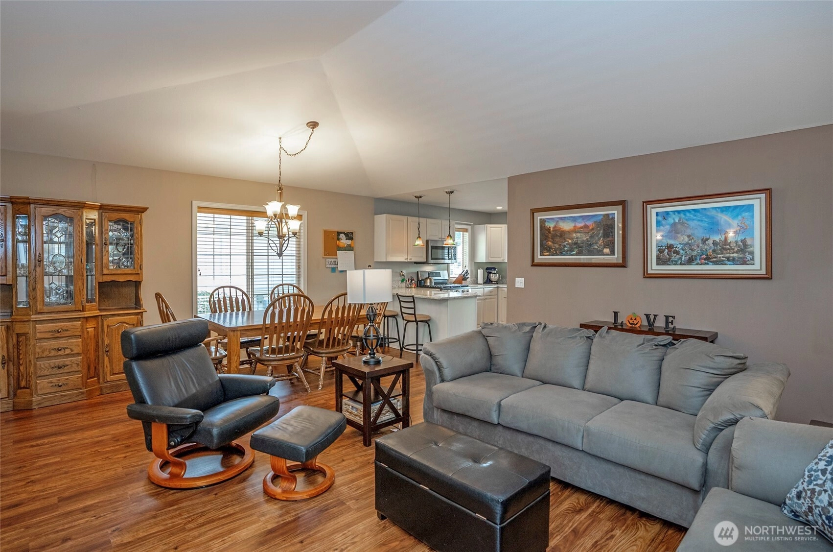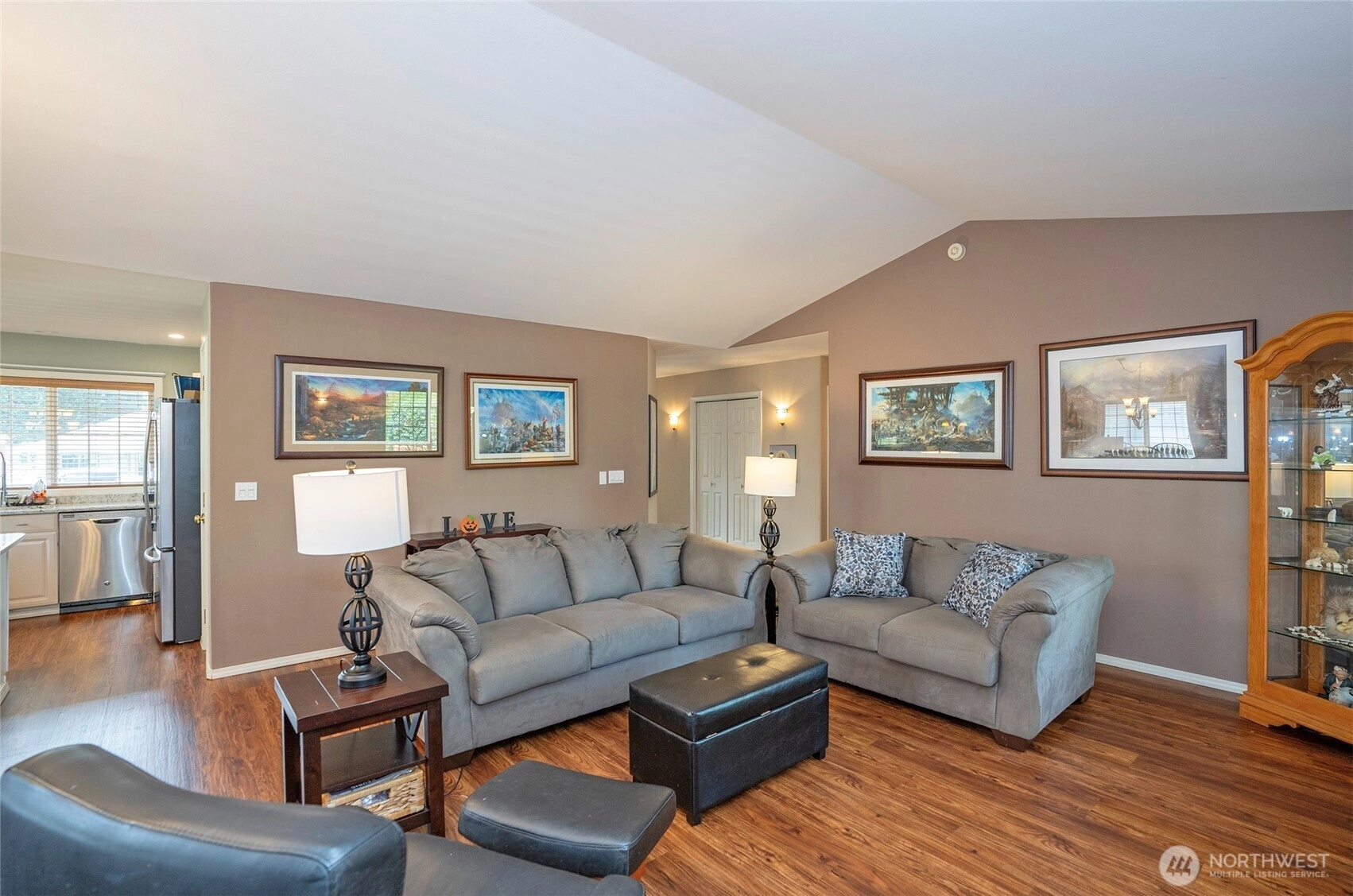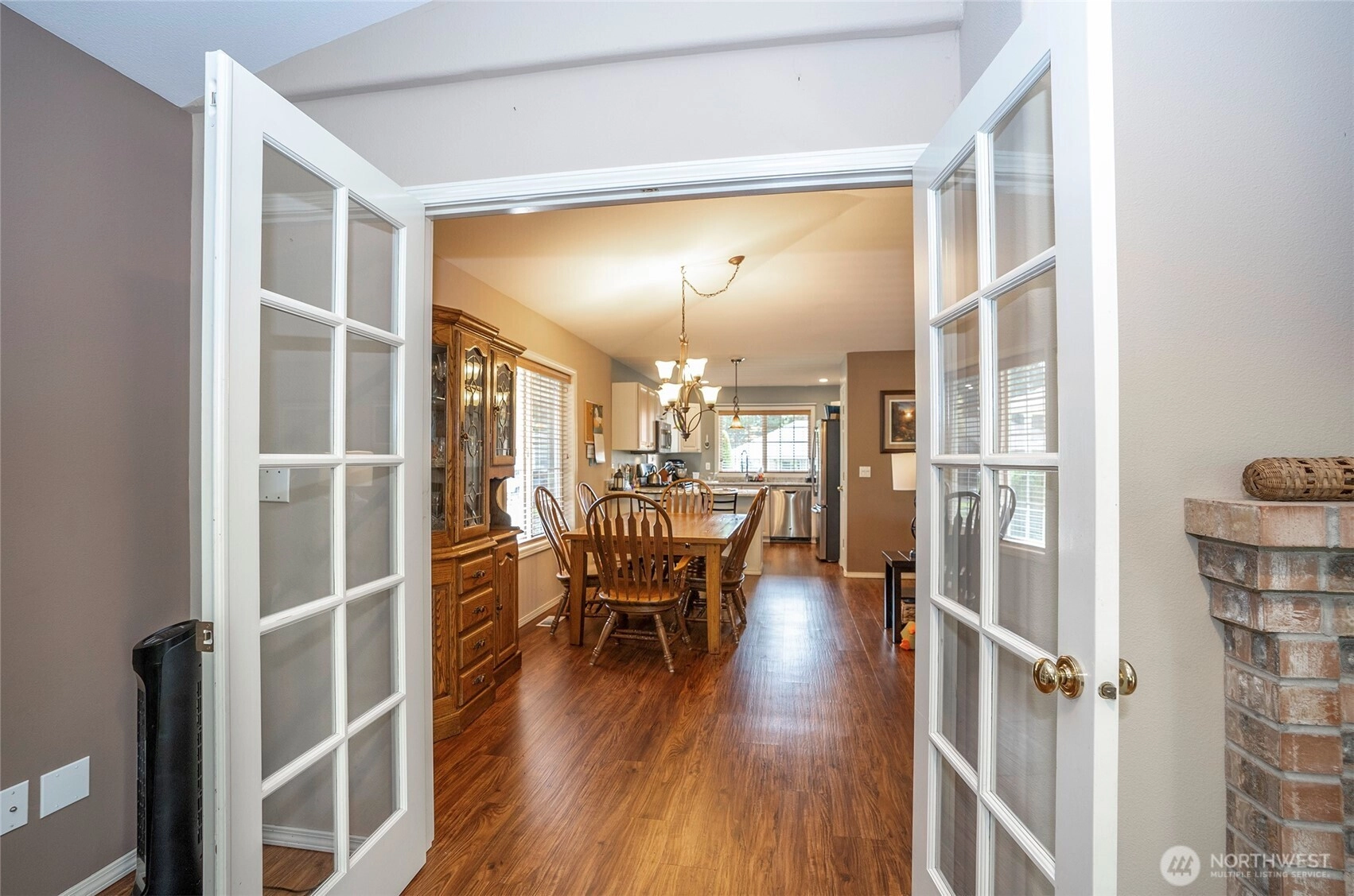 Enjoy one-level living in the beautiful, gated community of Arabella, featuring peaceful ponds, & fountains. This elegant home offers easy-care luxury vinyl flooring, vaulted ceilings for additional openness, & a spacious great room with a double-sided gas fireplace—perfect for entertaining. The updated kitchen boasts Granite countertops, stainless steel appliances, and a premium gas range. New windows brighten the family room, while the primary suite and living room open to a large Trex deck for relaxing or hosting guests, as well as the 2 sliding doors feature doggy doors. French doors lead to a private den, plus an attached 2-car garage & utility room with deep sink. A perfect blend of comfort, style, and simplicity in a serene setting!