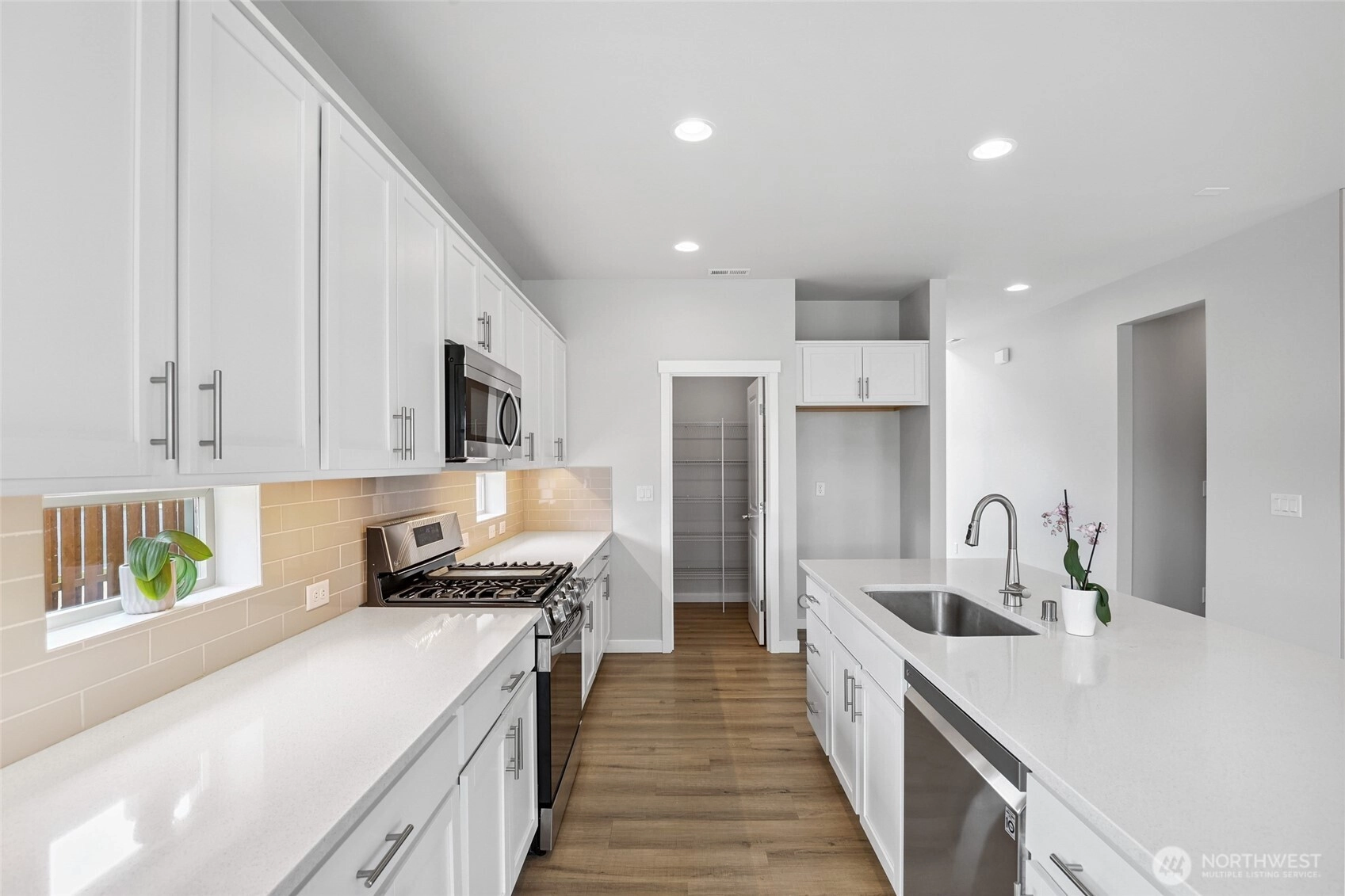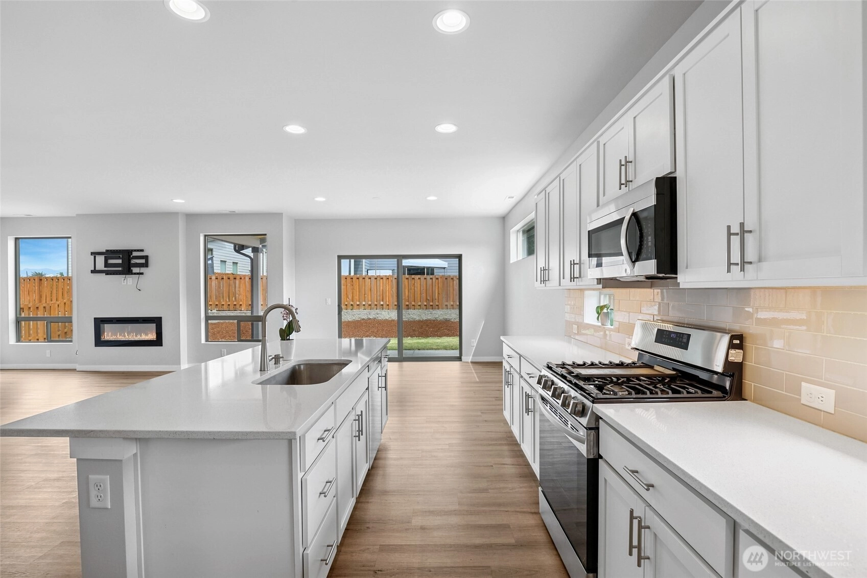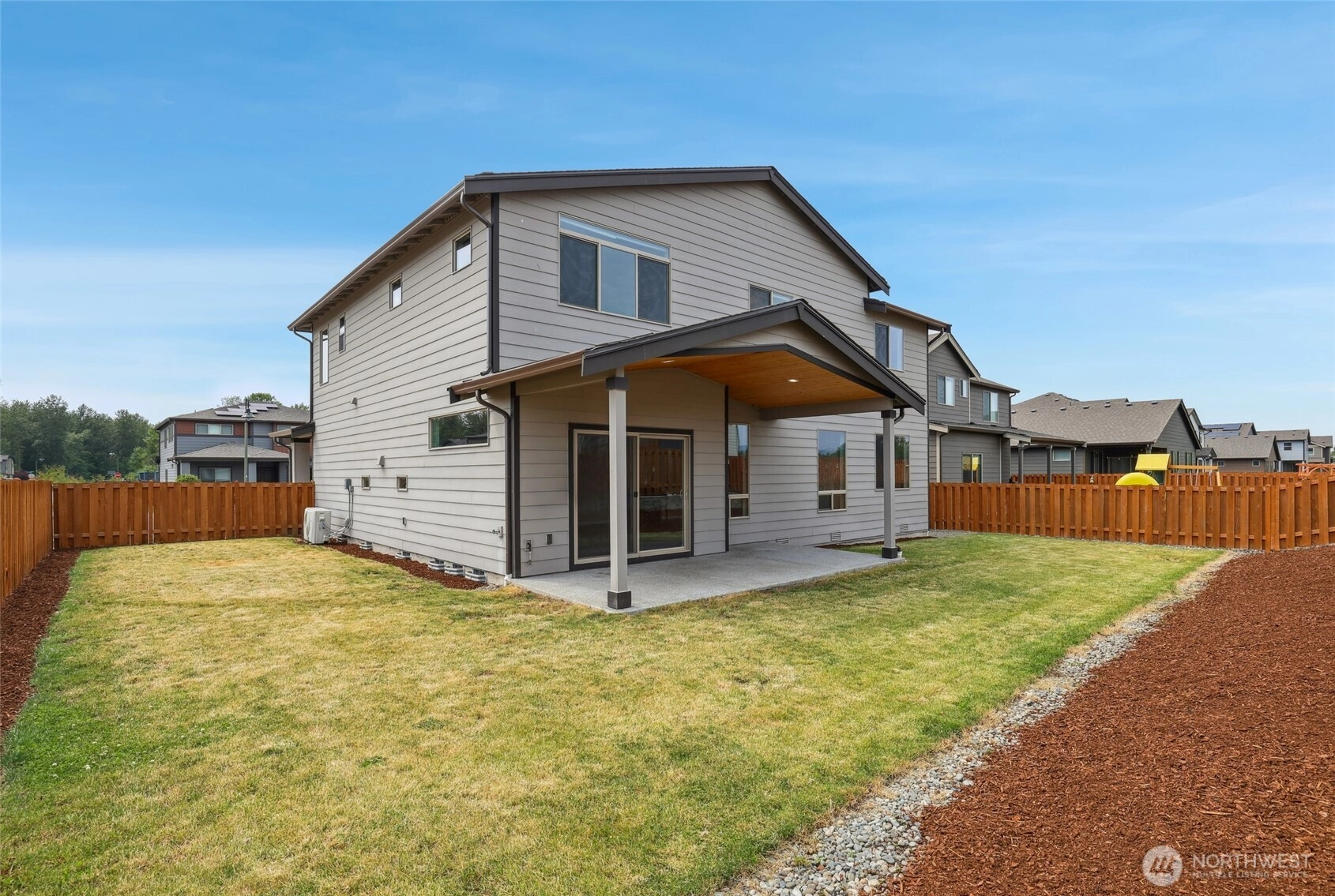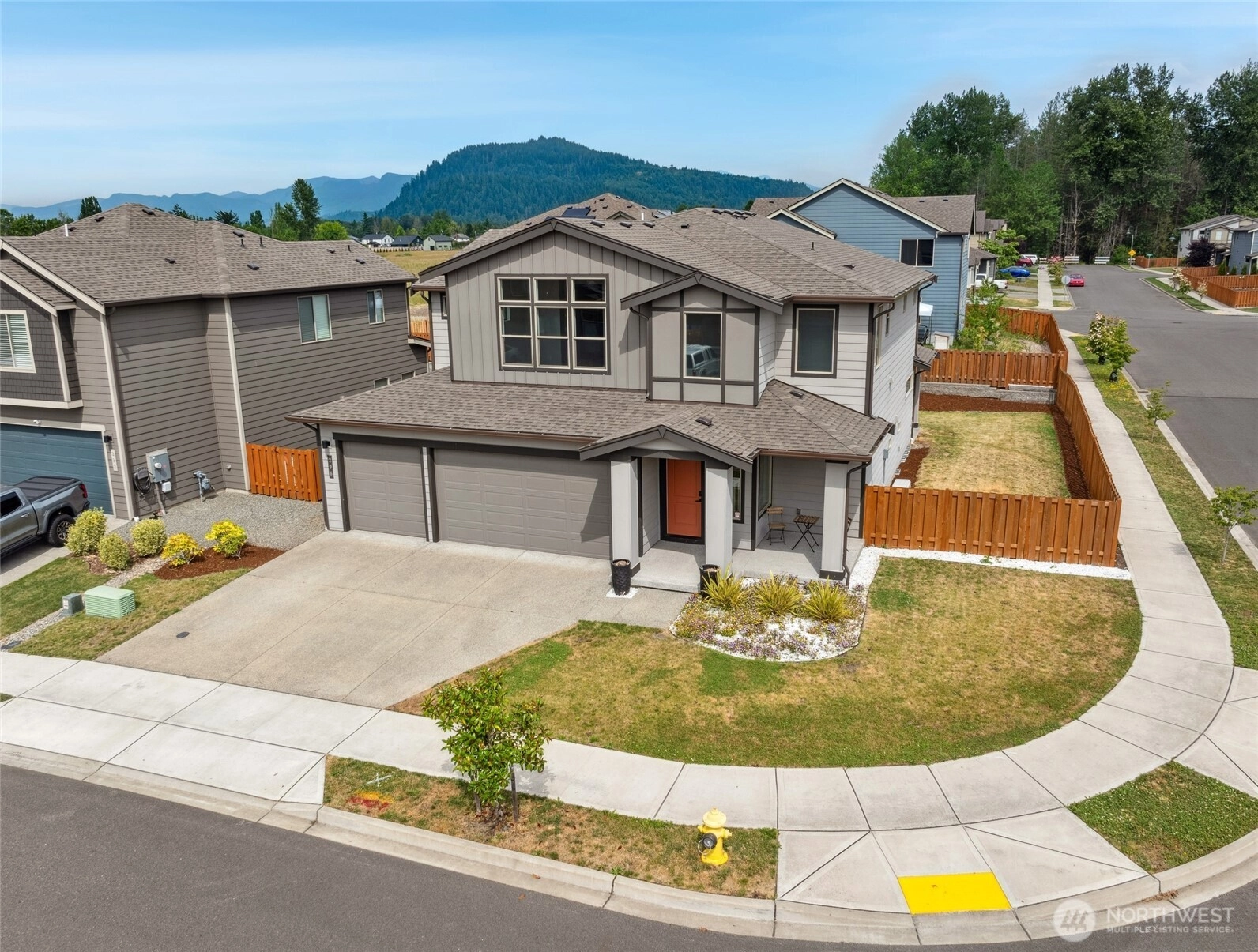 Discover this gorgeous 2022 resale in the sought-after Perkins Prairie neighborhood of Buckley. On a fully fenced corner lot, the home features a great room with an electric fireplace and a bright chef’s kitchen with white cabinetry, quartz counters, a center island, and a gas stainless stove. The main floor includes a 4th bedroom with an en-suite, while upstairs hosts the primary suite with a 5-piece bath and two walk-in closets, plus two more bedrooms and a bonus room. Step outside to a covered back patio with a gas BBQ stub, ideal for entertaining in comfort. With A/C, a three-car garage, and access to community parks, trails, and Buckley’s charming small-town surroundings, this is living at its best.