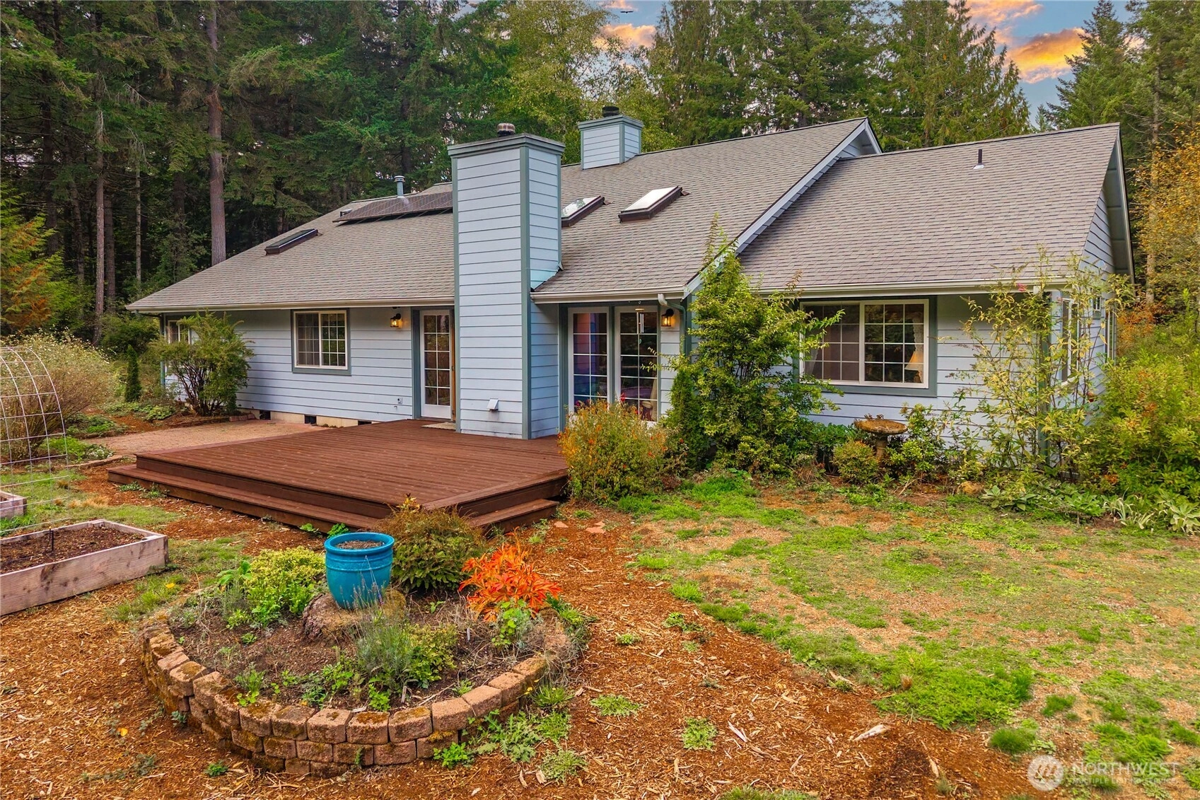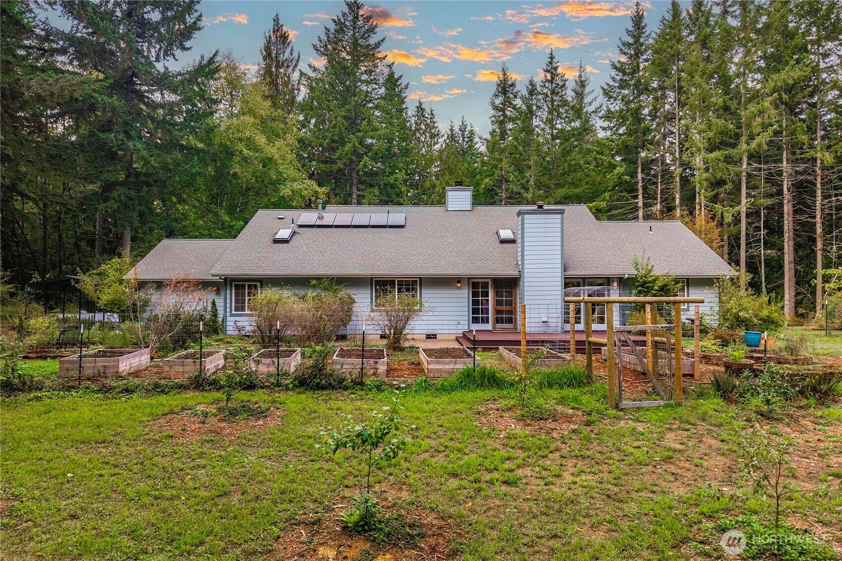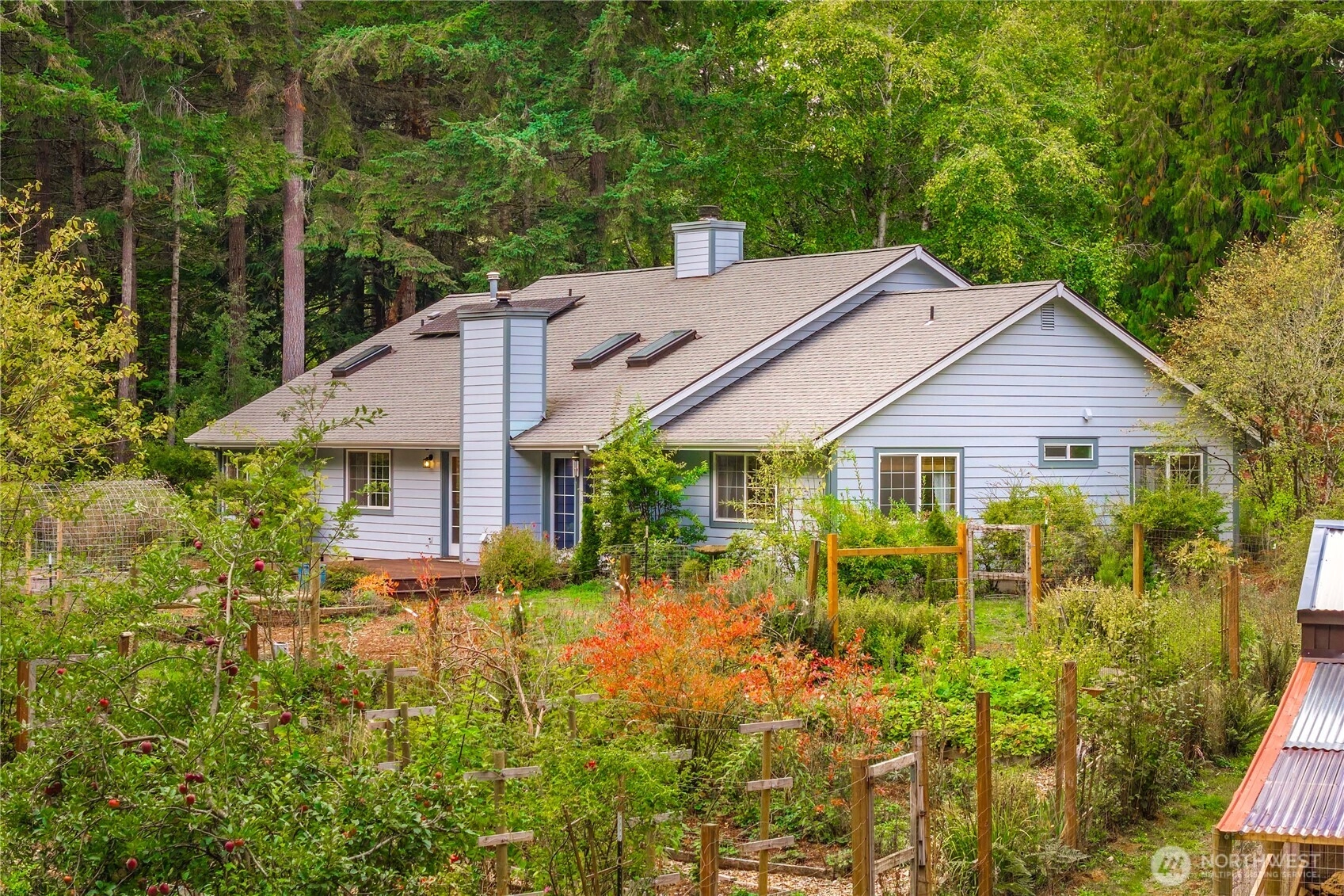 Escape to tranquility on 5 private acres! This spacious rambler sits at the end of a long driveway surrounded by lush gardens—perfect for your green thumb. The inviting interior offers a vaulted great room with a woodstove and skylights, a modern, well-appointed kitchen with a butler’s pantry, and a primary suite featuring a beautiful wooden soaking tub and walk-in shower. The office can easily convert to a third bedroom. Outdoors, enjoy paver patios, a deck, fenced orchard, forested trails, raised garden beds, and a enclosed herb/veggie/flower garden. Other features include a chicken coop, cleared area suitable for a horse and a carport. End of the road privacy within the desirable Griffin School District—this property is a must-see!