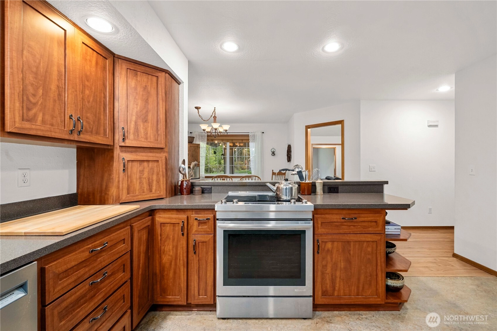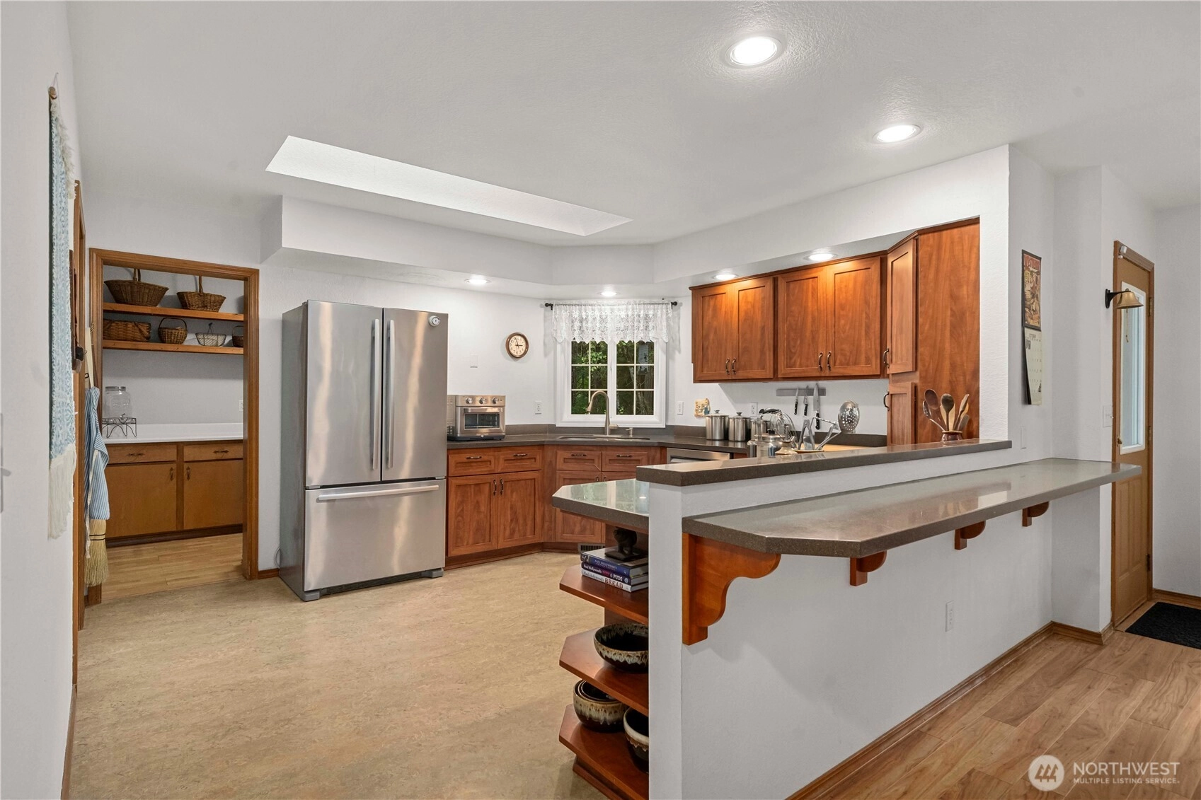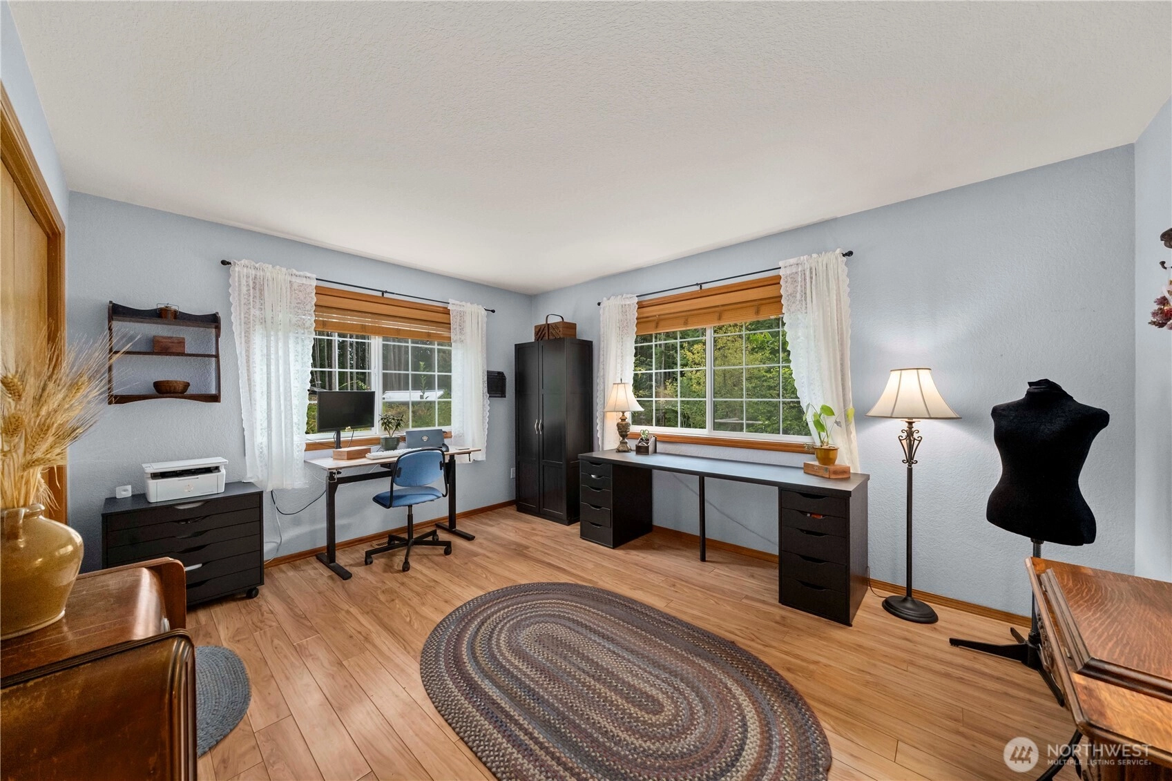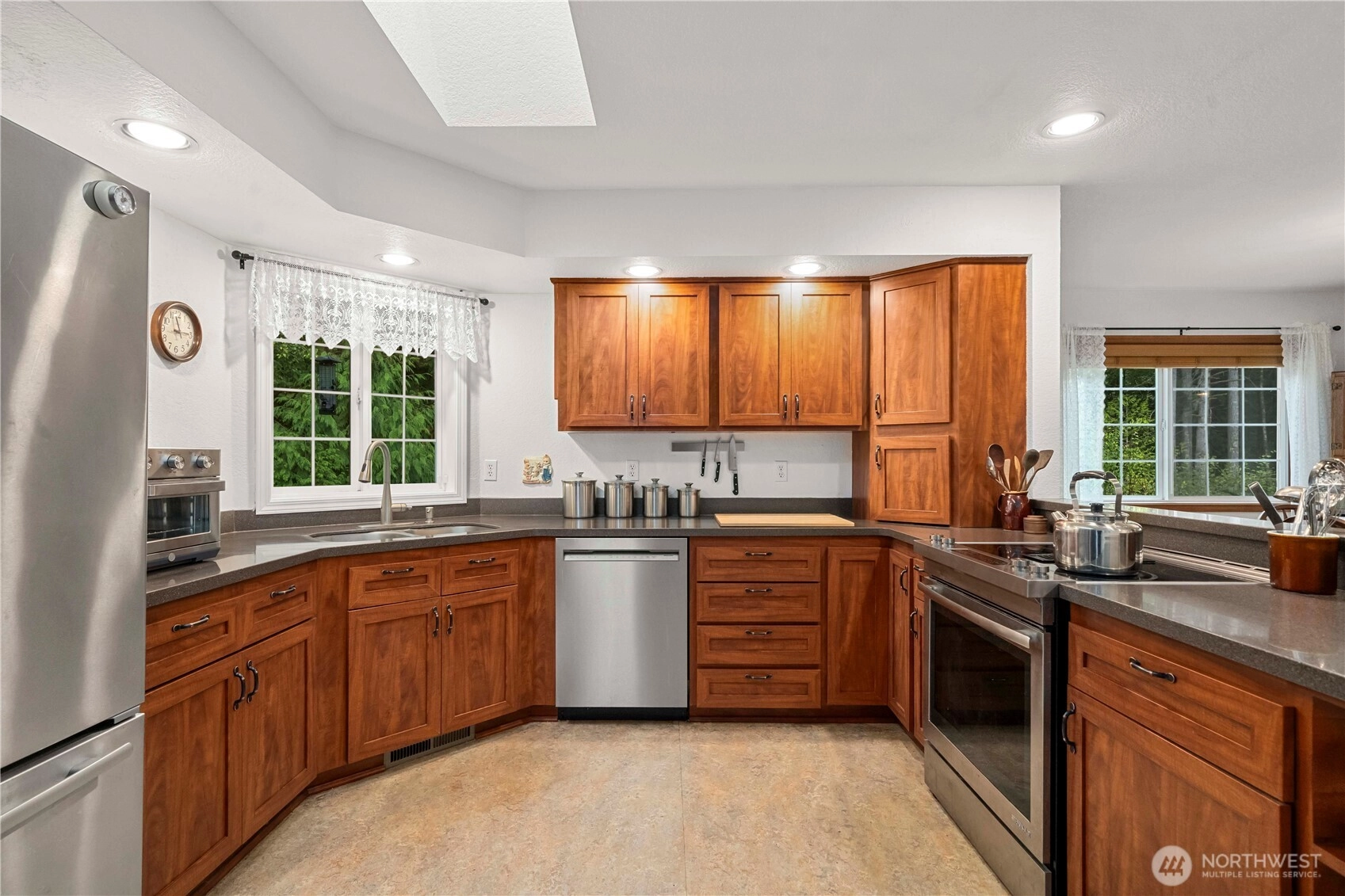 Escape to tranquility on 5 private acres! This spacious rambler sits at the end of a long driveway surrounded by lush gardens—perfect for your green thumb. The inviting interior offers a vaulted great room with a woodstove and skylights, a modern, well-appointed kitchen with a butler’s pantry, and a primary suite featuring a beautiful wooden soaking tub and walk-in shower. The office can easily convert to a third bedroom. Outdoors, enjoy paver patios, a deck, fenced orchard, forested trails, raised garden beds, and a enclosed herb/veggie/flower garden. Other features include a chicken coop, cleared area suitable for a horse and a carport. End of the road privacy within the desirable Griffin School District—this property is a must-see!