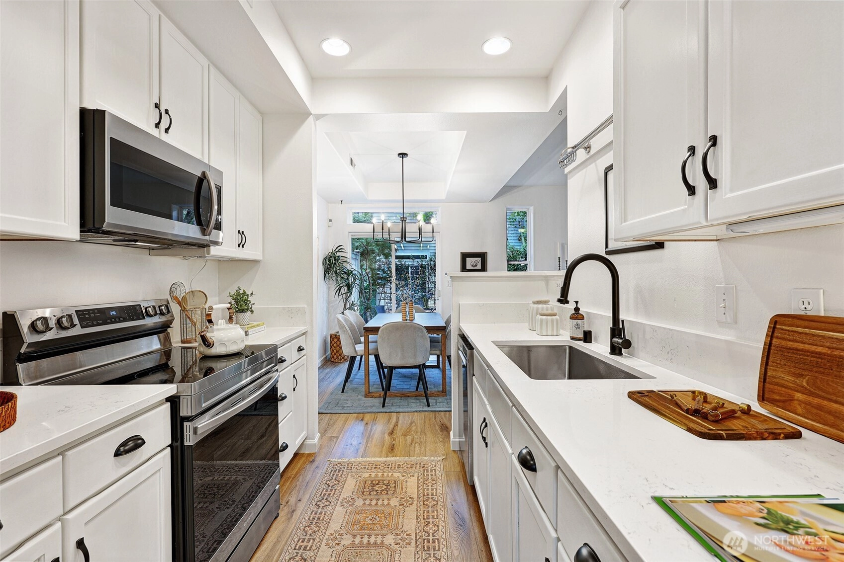 Welcome to this smartly designed townhome in a quiet, cozy community in coveted Edmonds. This end-unit seamlessly combines comfort, functionality & insta-ready aesthetics. Private entrance, high ceilings, gas fireplace & lots of natural light. Open kitchen, living, & dining provides an inviting atmosphere & direct access to private patio & garden. Thoughtful updates include newer appliances, fresh paint, quartz counters, gas furnace, LVP flooring & new carpet. 3-beds (all up!) with spacious primary with walk-in closet. 2-car garage conveniently connects to the mudroom/ laundry. Proximity to shopping, restaurants, public transit, I-5, Highway 99, the charming Edmonds business district, ferries & downtown. Pet-friendly & no rental cap.