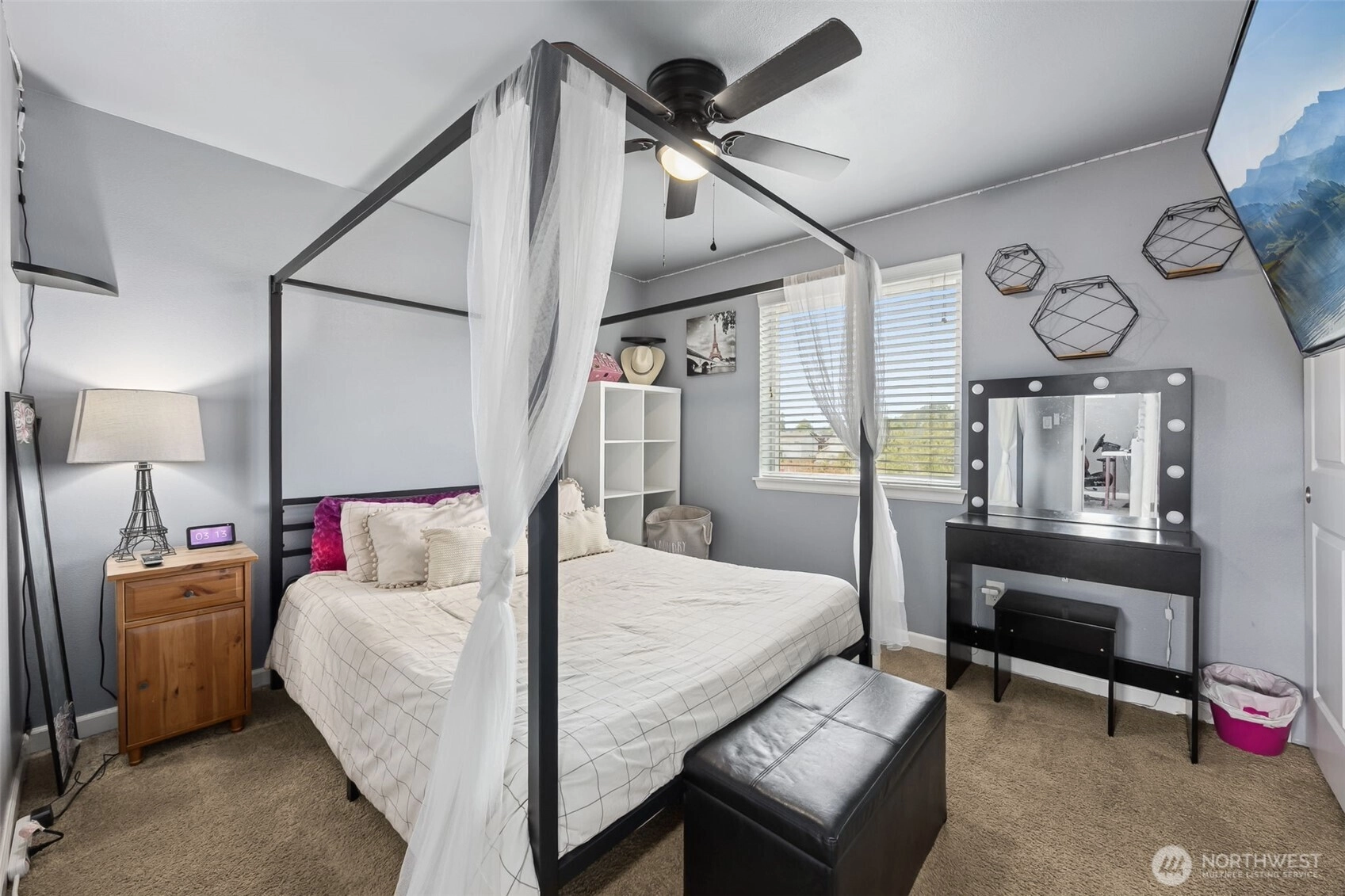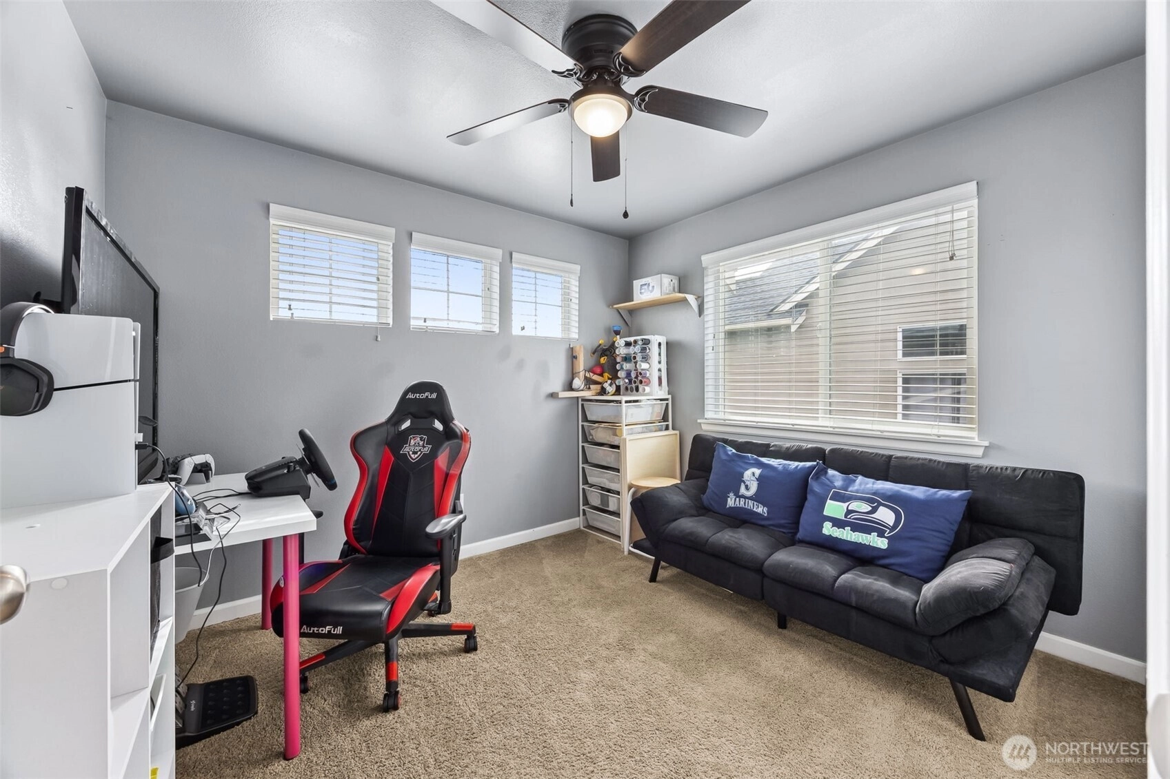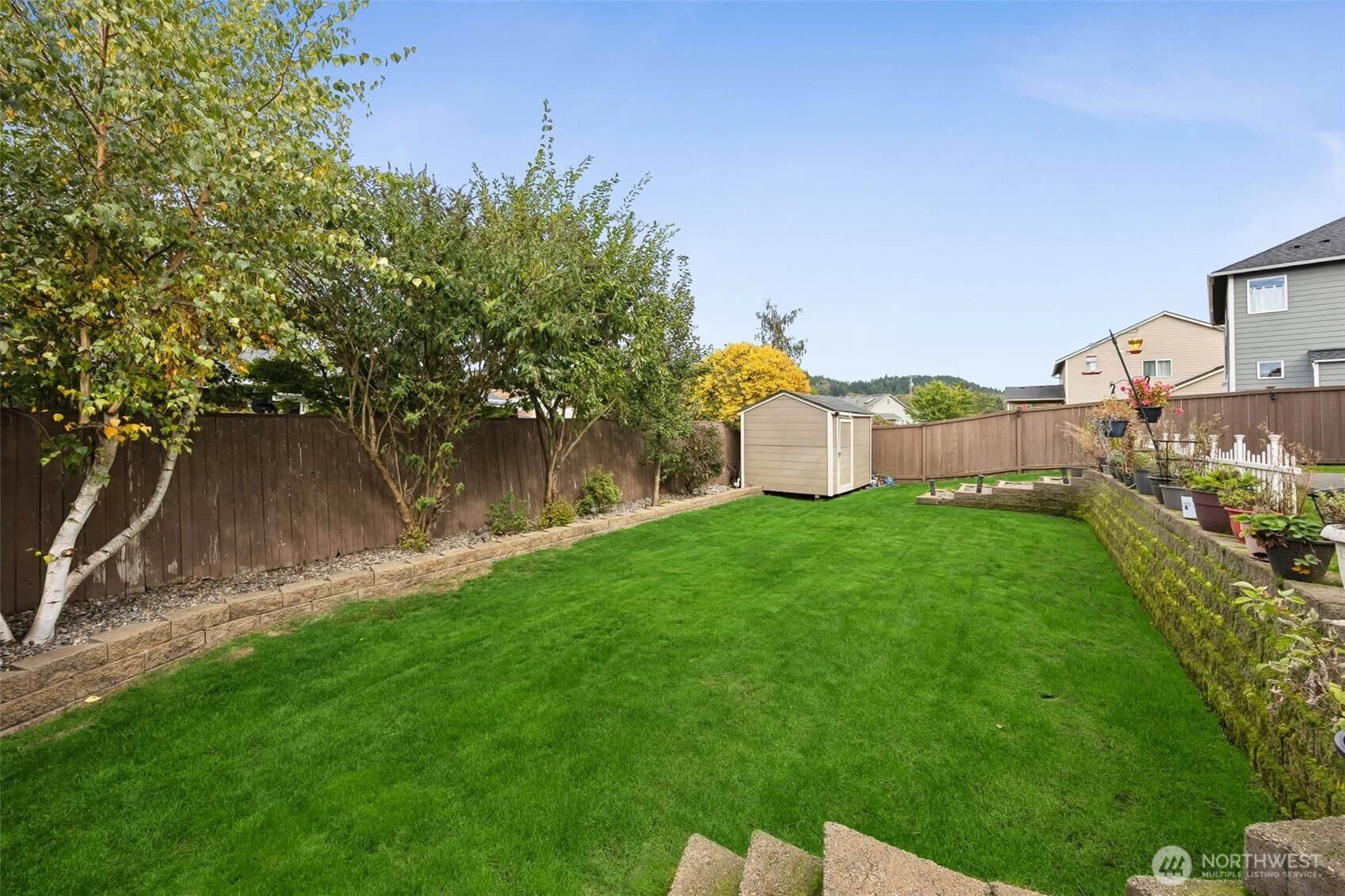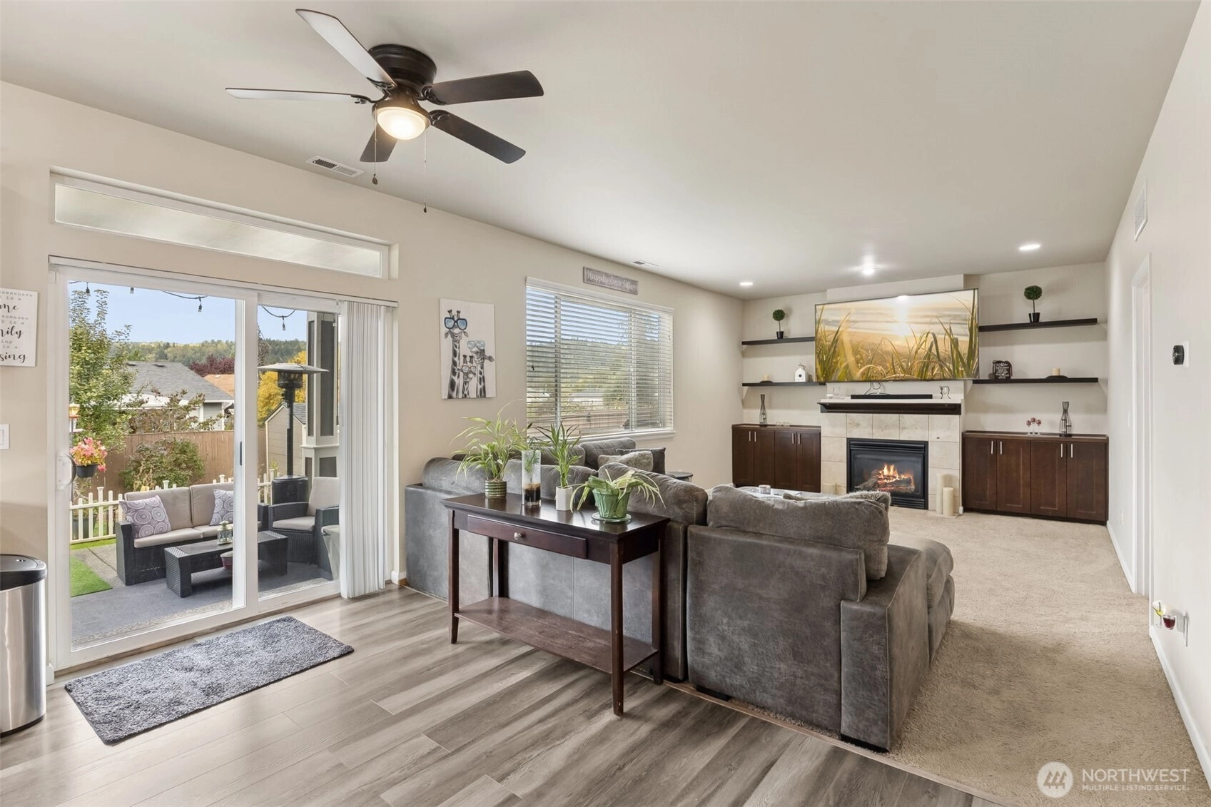 This spacious 4-bedroom 2.5-bath home offers over 2,300 sqft of comfortable living with a bright, open layout. Step inside to a vaulted entry and high ceilings. The large kitchen features soft-close cabinetry, granite counters, and a generous island that flows seamlessly into the living room, complete with built-in shelving, perfect for gatherings or cozy nights in with the gas fireplace. Upstairs, you’ll find all four bedrooms, including a generous primary suite with a versatile bonus room-ideal for a home office, gym, or private retreat. Enjoy the beautifully landscaped backyard with a covered patio, mature apple and plum trees, and plenty of space to relax or entertain. A perfect blend of style, comfort, and functionality