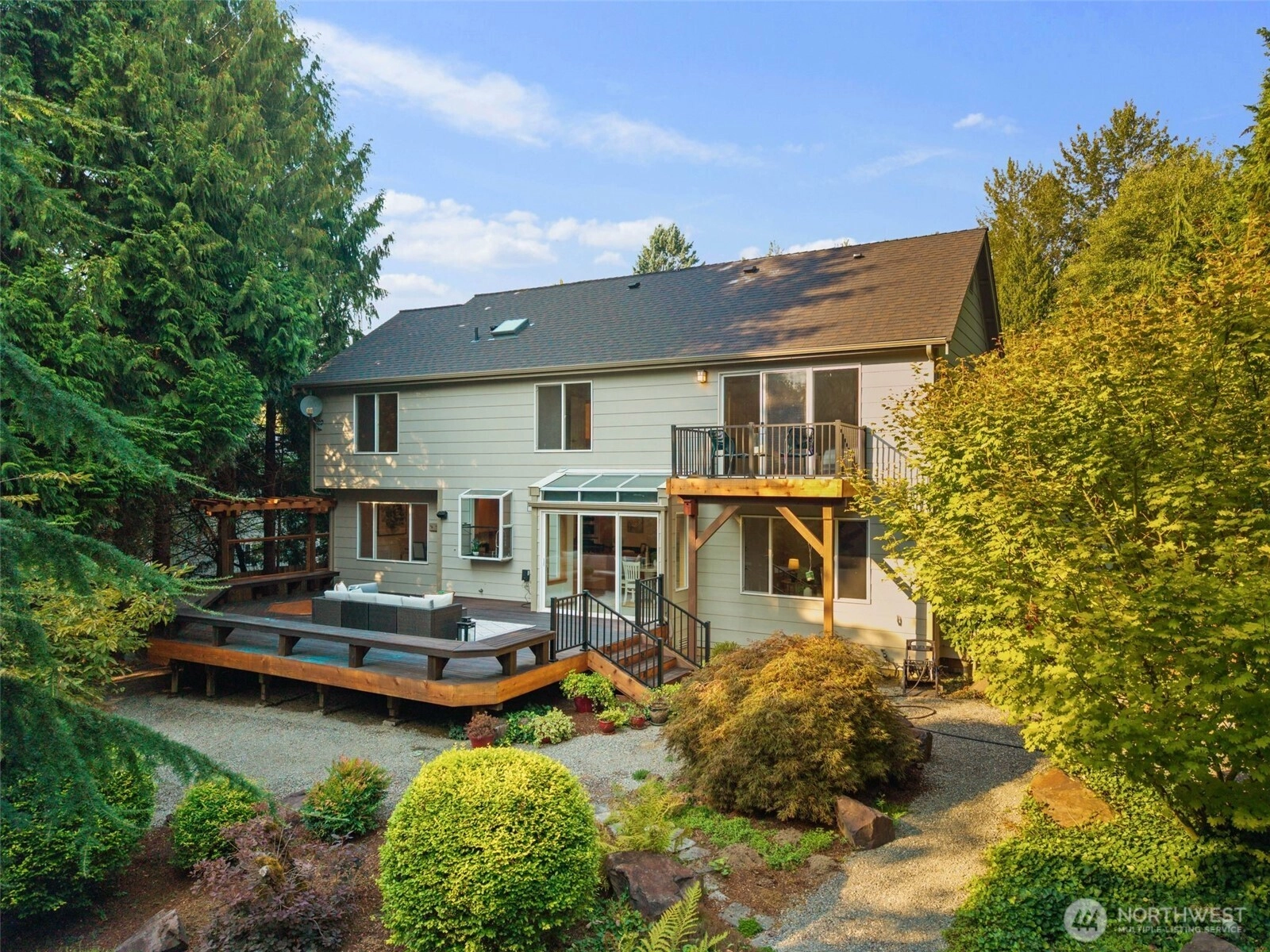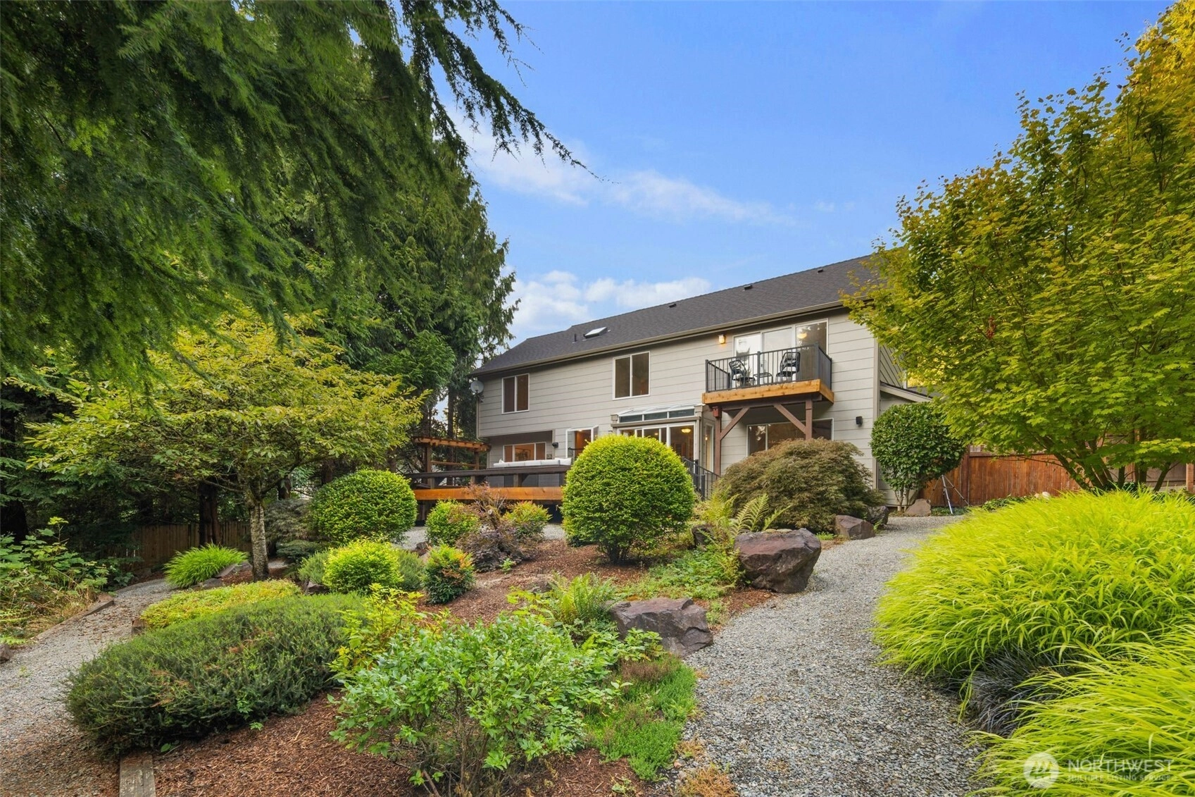 Welcome to Daniel’s Ranch, a coveted neighborhood where craftsmanship and community meet. On the Redmond/Carnation border, this 4bd/2.5bth home features 2840sf of light-filled living with vaulted ceilings & walls of windows. The main floor offers open living and dining, a den with built-ins, and two gas fireplaces. Upstairs, the primary suite has a spacious bath, walk-in closet, and private deck. The backyard is a retreat with trails, mature plantings, stonework, ponds, and water features. An expansive Ironwood deck, plumbed for gas, is ideal for entertaining. Minutes to DT Redmond, Microsoft, and SpaceX, Daniel’s Ranch provides oversized lots, privacy, natural beauty, and a true sense of community. Secluded and serene, yet close to it all.