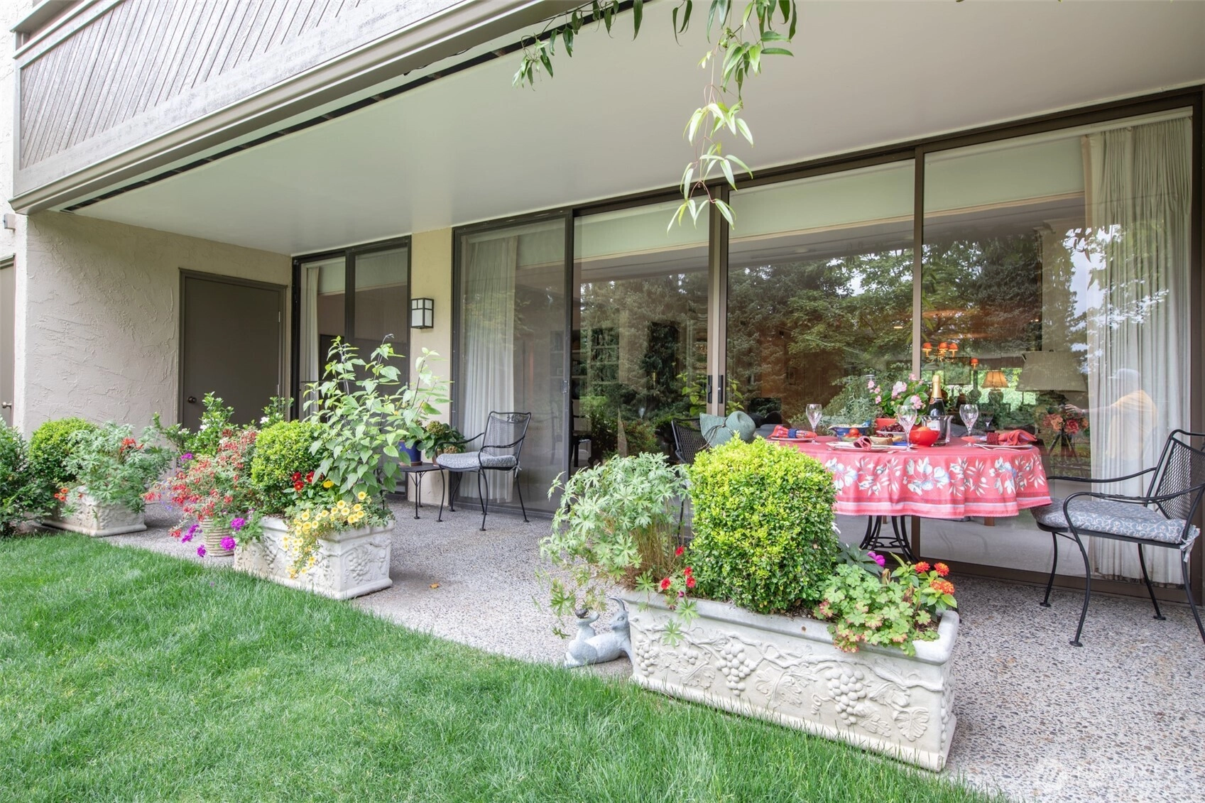 Welcome to a rare ground floor walk-out unit in the highly sought-after Parkpoint Condominiums. This spacious home lives large with over 2000 sf & an open, flowing layout, abundant natural light & easy indoor-outdoor living. Thoughtfully updated & lovingly maintained, with quartz & travertine counters & plenty of built-ins & storage! Two bedrooms + a den/study allow lots of options. Enjoy the ease of single-level living with direct access to patio & beautifully landscaped grounds. Parkpoint is a well-managed, amenity-rich community with indoor/outdoor pool, tennis court & walking trails. Ideal for smart-sizers or retirees from North Seattle’s finest neighborhoods seeking comfort, convenience, and community in a serene, park-like setting.