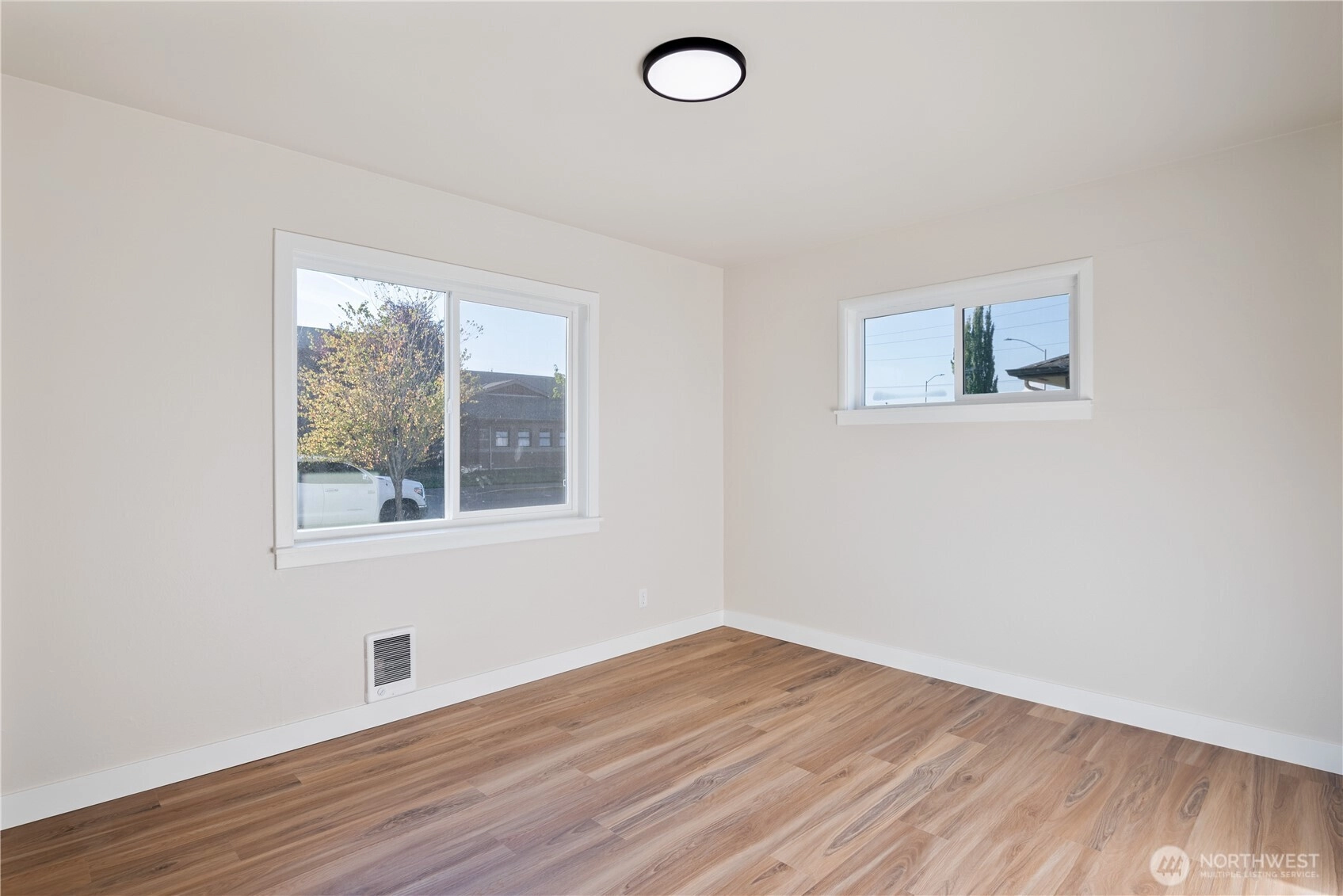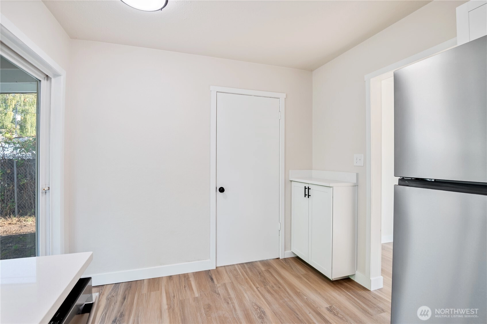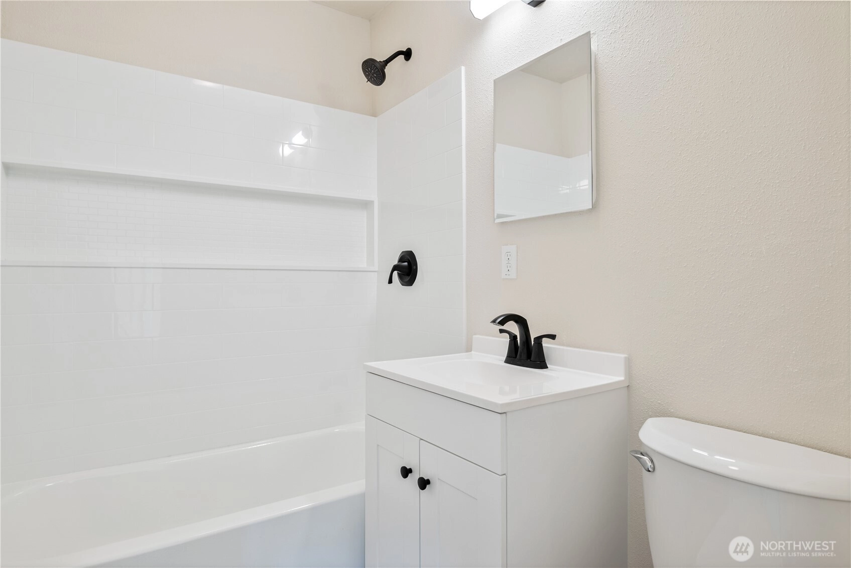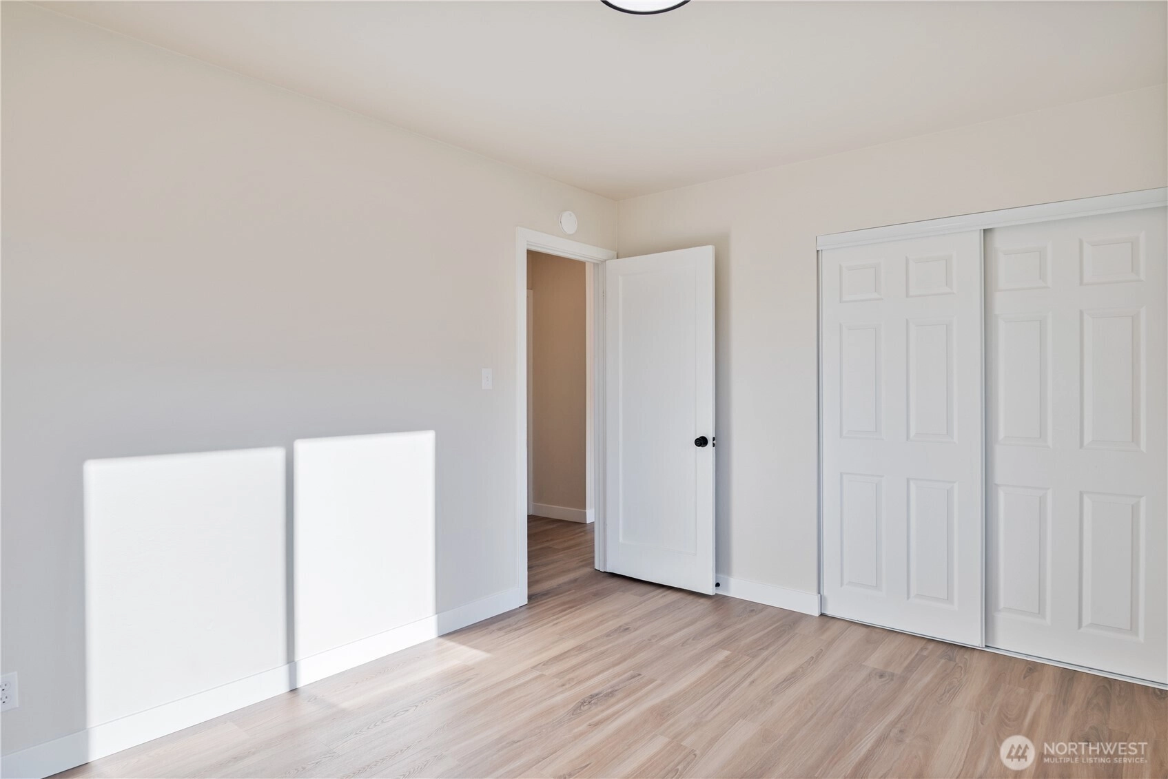 Freshly remodeled one level home w/private fully fenced back yard! Pristine home boasting 2 large bedrooms, updated bathroom w/new fixtures, light filled living room w/picture window, beautiful kitchen w/new cabinetry-quartz countertops-under mount sink-stainless steel appliances & slider to large covered Trex deck, new luxury vinyl floors throughout, new vinyl windows, 30 year architectural roof, fresh interior & exterior paint, 240 SF garage with garage door opener and a well groomed yard. The home is conveniently located to parks, shopping, restaurants, I-5, and schools.