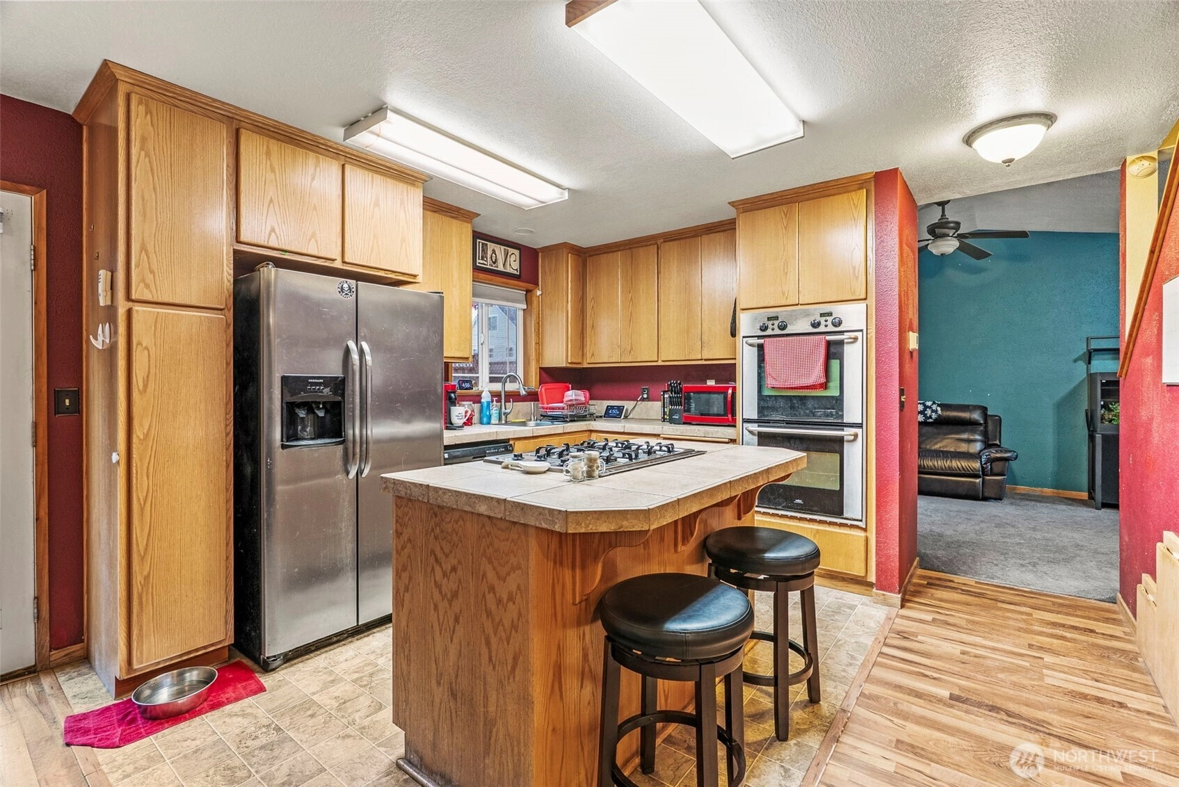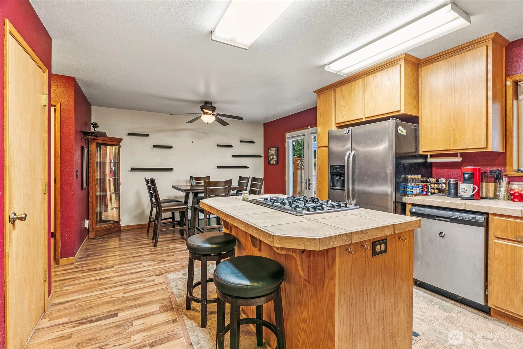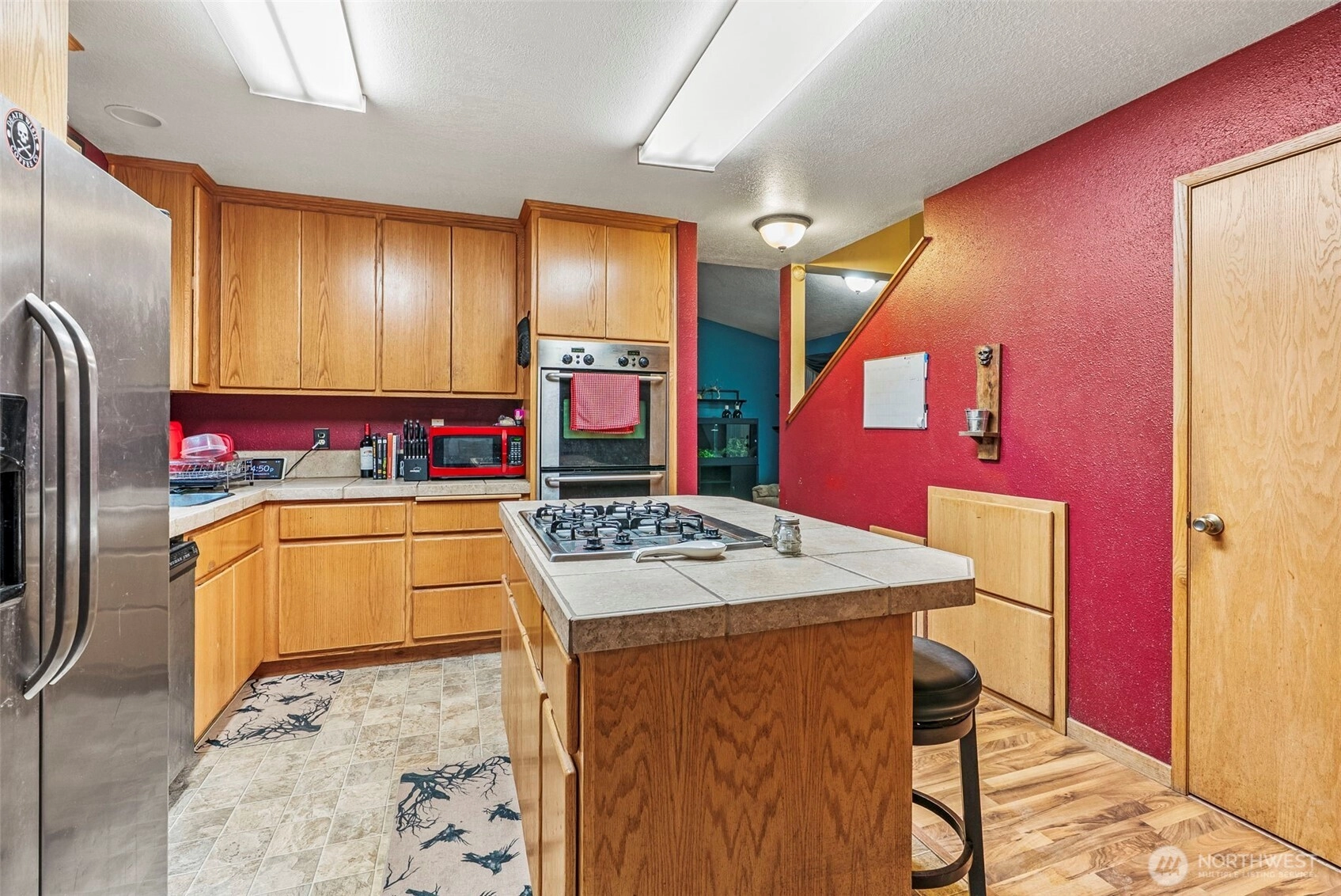 North Kelso corner lot - 3 bedroom, 2 1/2 bath home features gourmet kitchen w/2 stainless ovens, gas range top, abundance of storage, creative pantry cupboard & pull outs under the stairs, tile counters, high efficiency furnace w/electronic air filter, heat pump, whole-home water filtration system, tankless water heater, Trex decking and terraced, fenced backyard. Large living room, dining room off kitchen w/slider to yard and 1/2 bath on main level. Upstairs find 3 bedrooms, full guest bath, additional room for sewing or hobbies, large laundry, oversized primary w/walk-in & second closet. Enjoy its location with easy access to I-5, shopping, schools & more. Don't miss out on this mature, established, bikeable and walkable neighborhood.