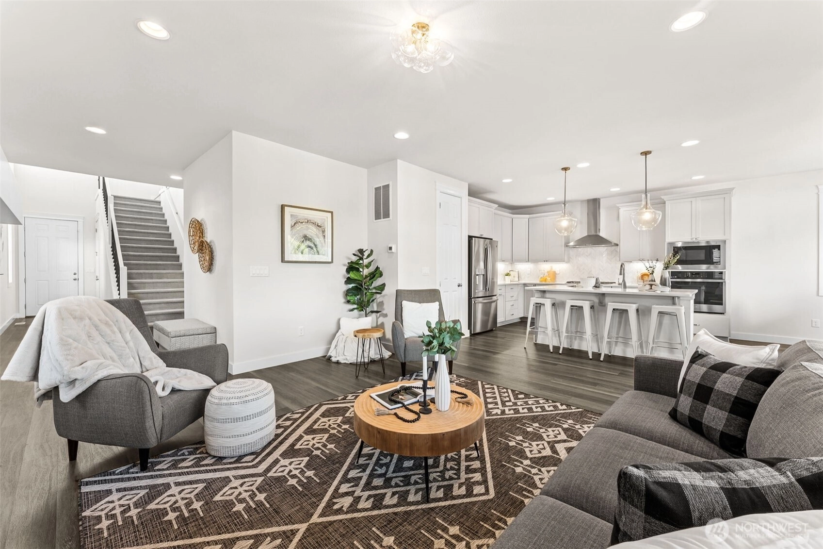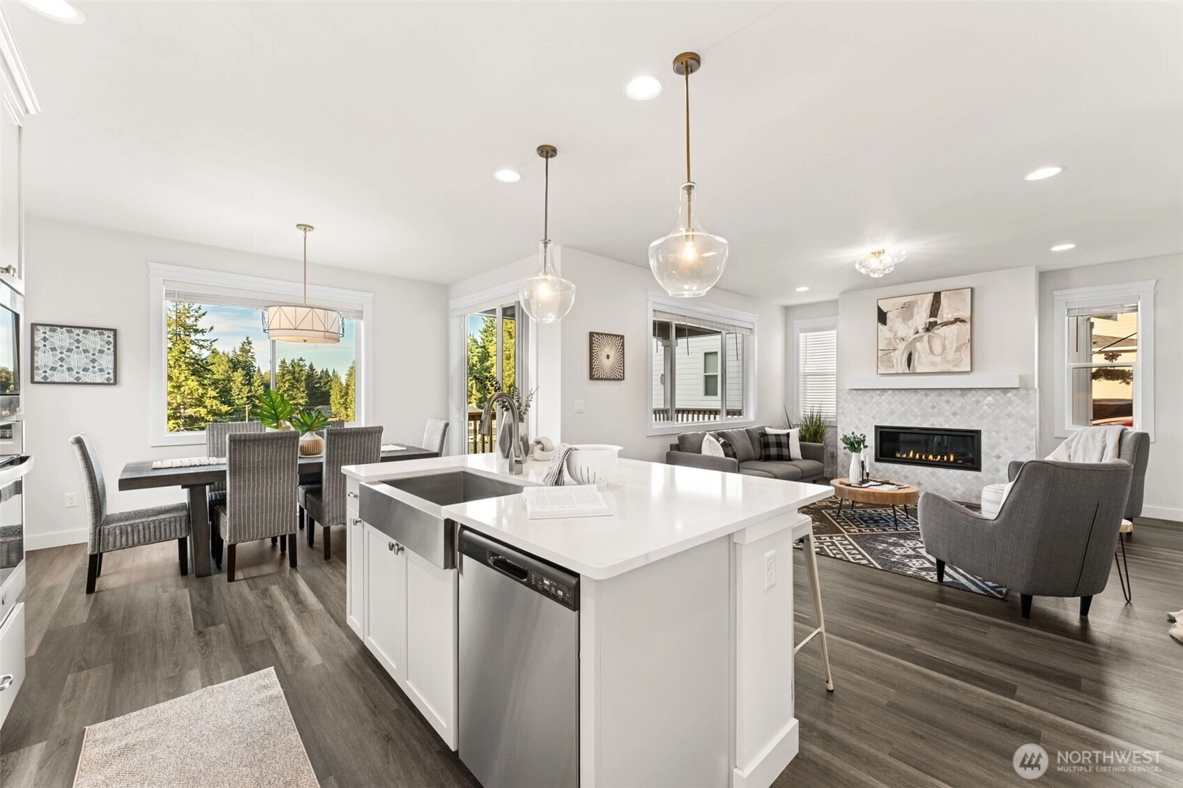 Experience a home masterpiece living in this stunning 5-bed, 4.75-bath, 3,540 sq ft Richland American home (2022) with tranquil lake views from every level. Soaring vaulted entry ceilings, walls of windows on each floor & a grand staircase create immediate grandeur. High-end finishes include California Closet upgrades throughout, lush tile & marble accents in bathrooms, custom kitchen backsplash & stainless appliances. The owner's suite offers a spa-inspired bath & expansive walk-in closet. The finished walk-out basement with built-in bookcases provides versatile space for entertaining or a mother-in-law suite. Community park across the street. Minutes to Southworth Fast Ferry—effortless commutes to downtown Seattle, West Seattle & beyond!