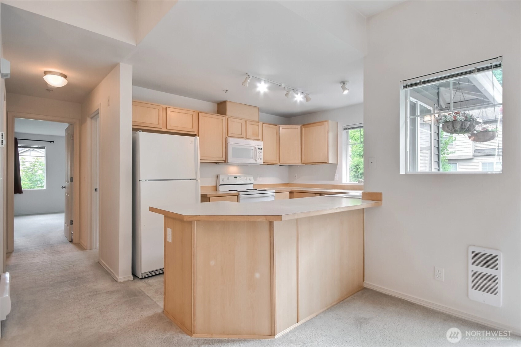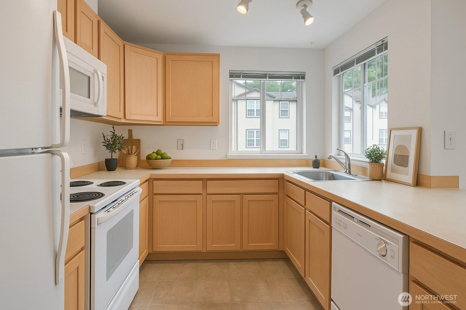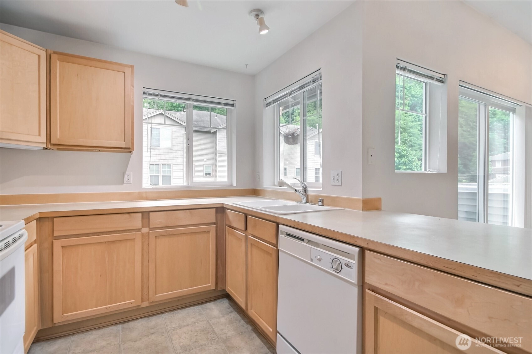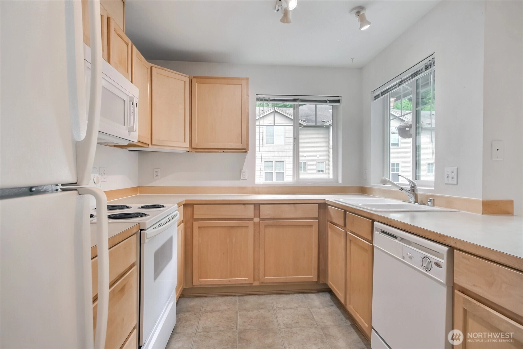 Corner unit in desirable River Valley community. Plenty of room to live & work from home. Main floor connects kitchen, dining, & living room for easy entertainment. Primary bedroom w/ walk-in closet offers tons of natural light. Second bedroom provides flexible space for guests or home office. Kit w/ maple cabinets & breakfast island that spills into living area. Laundry room w/ full-size washer & dryer. Enjoy a quiet deck that overlooks green belt. Includes attached 1-car gar w/ oversized storage space + extra pkg space & plenty of guest parking. Low HOA, pet-friendly. Brand new hot water tank. Cedar River Trail nearby & community parks. Easy access to freeway, shops, restaurants, Boeing & Maplewood Golf Course. BRAND NEW HOT WATER TANK.