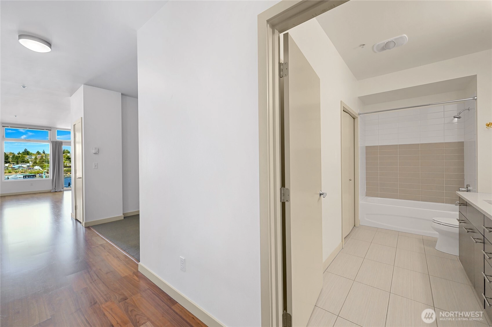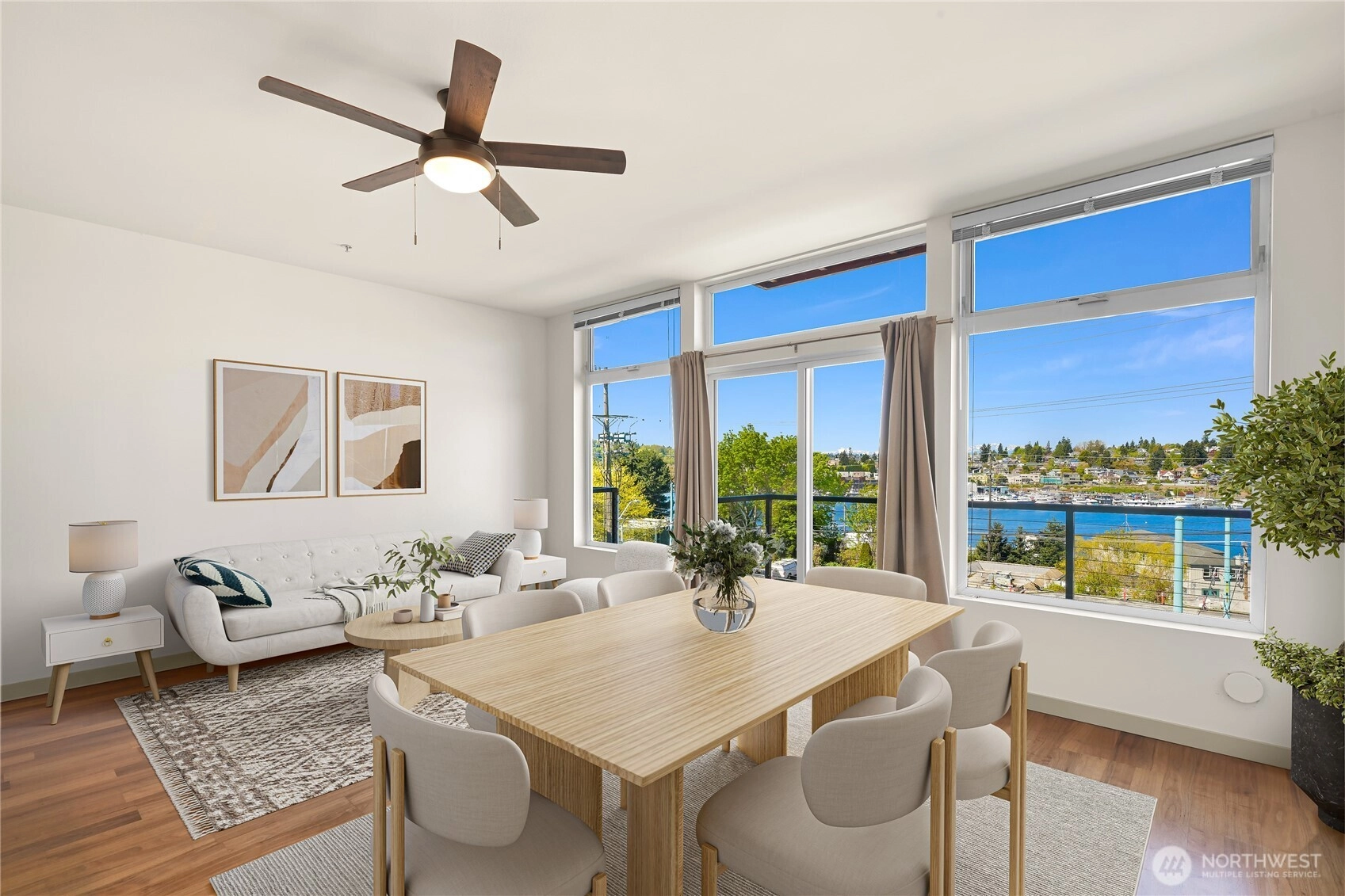 Modern, west-facing 1-bedroom condo with panoramic views of Lake Union & the Ship Canal Bridge. This light-filled unit features an open layout, oversized windows & 9' ceilings for an expansive, airy feel. The kitchen is equipped with wood cabinets, granite countertops, a brand new gas cooktop and plenty of room to entertain. Features include hardwood floors throughout main living space, tiled bathroom with soaker tub and quartz countertops, plus extra storage on the same floor and a great parking spot in the underground parking garage. Outside, enjoy a fully landscaped courtyard with a grill station and lounge areas. Live steps from UW, Lake Union, local parks, and Seattle’s best dining. Pet-friendly and right on the bus line to downtown!