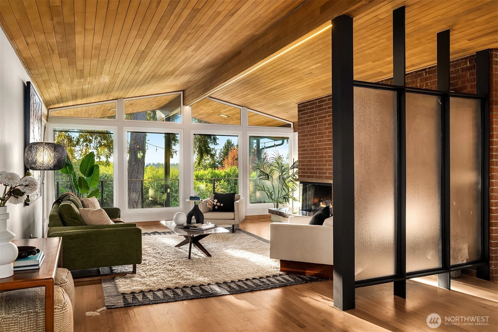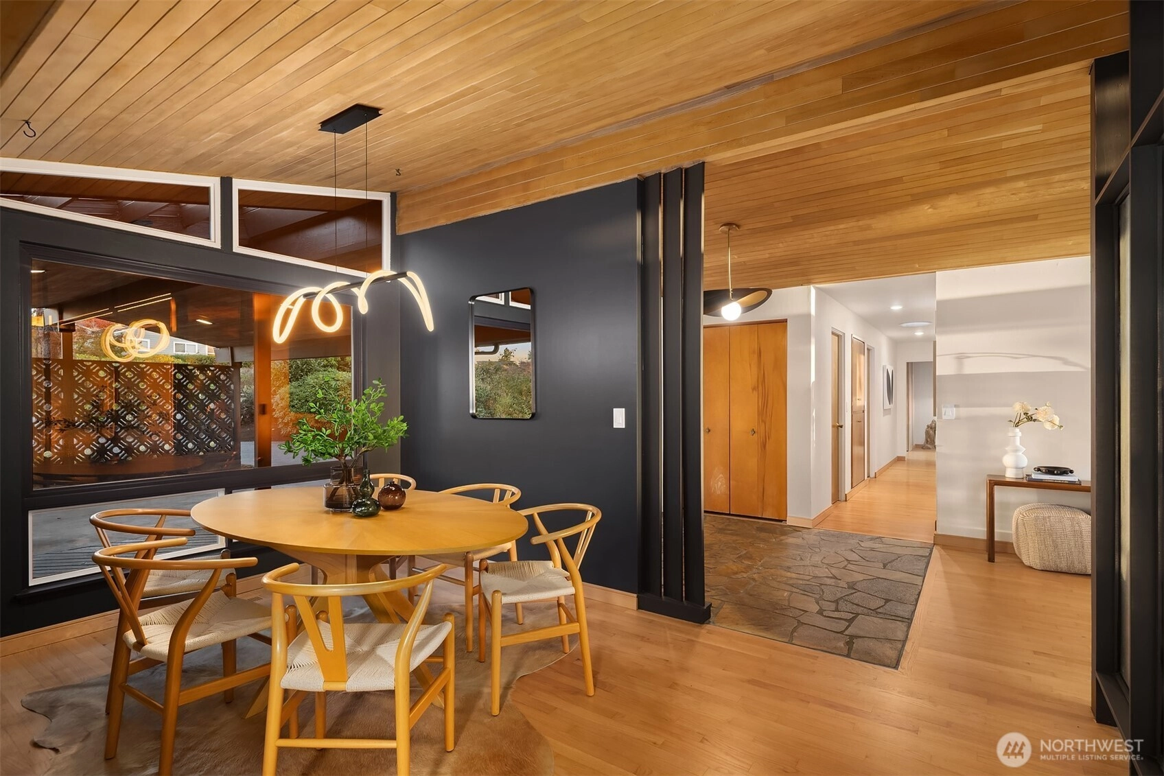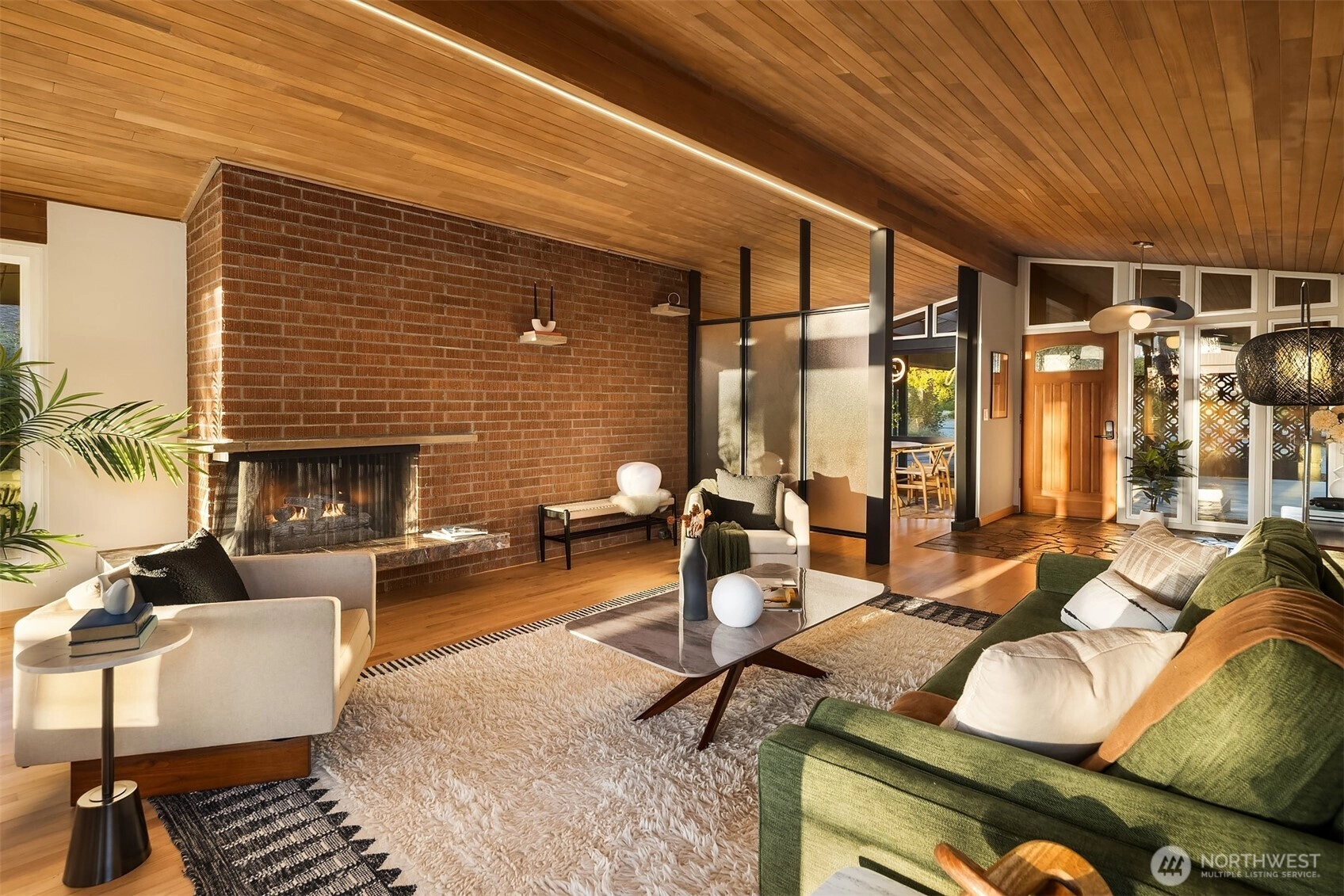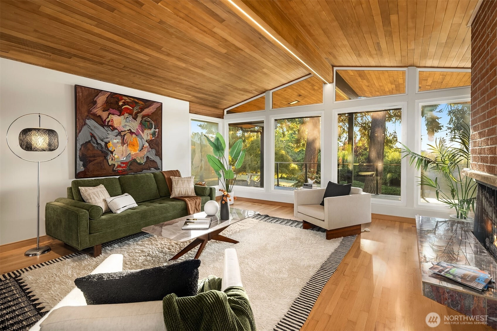 This is the Mid-Century modern you have been waiting for! Every aspect has been thoughtfully updated & they kept the right MCM touches, like hand sanding the wood ceilings! Pull through a quintessential mid-century carport & enter into a stylish home glistening in the evening sun. Every room in the house faces west with abundant light. Double lot with mature trees & large yard create privacy. Kitchen is fully remodeled. New hardwood and porcelain floors. The primary bedroom has been remodeled including wood clad ceilings, new slider to the back yard, new closet & fully remodeled bath w/ heated floors. New 40K membrane roof, furnace + Â AC, water heater, interior paint, exterior paint, trim, rebuilt deck & chimney tucked. Two community pools!