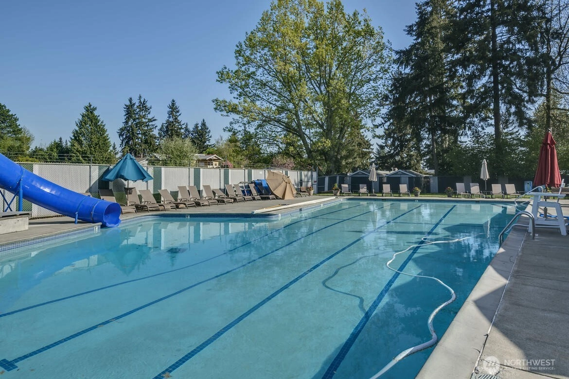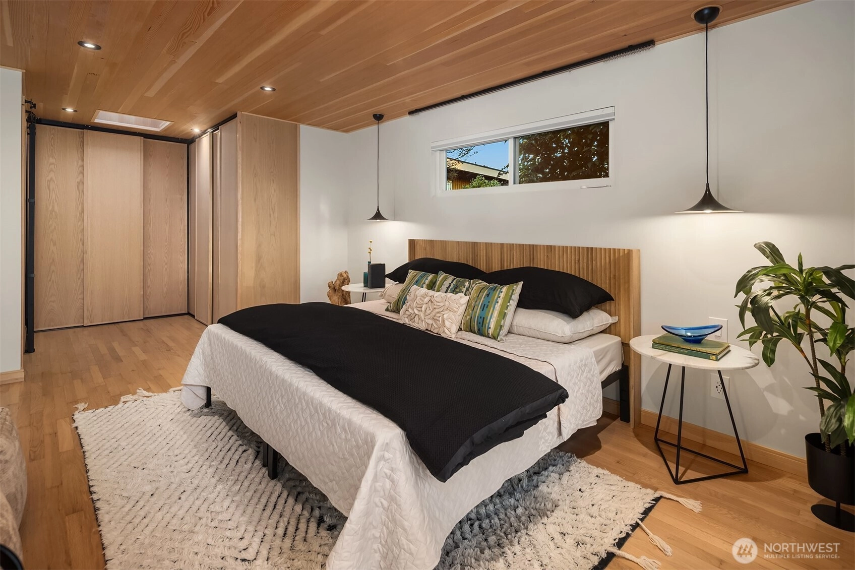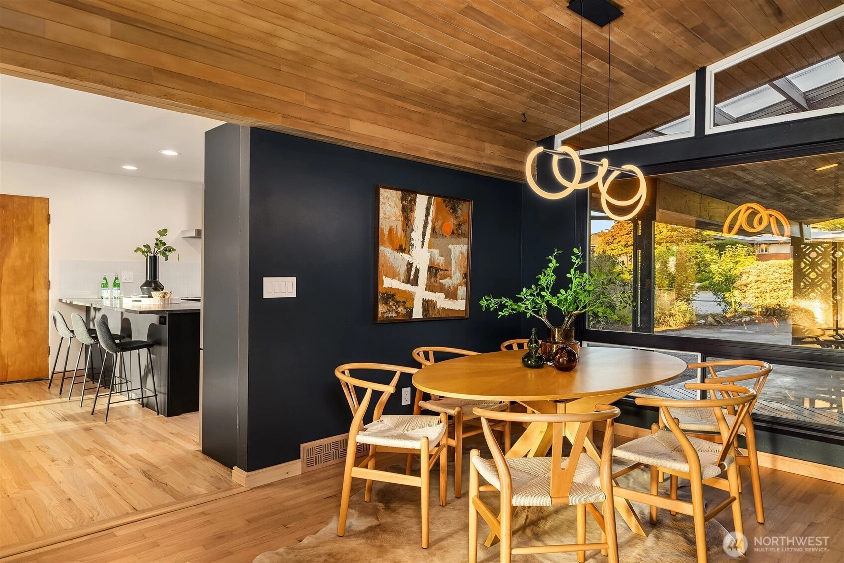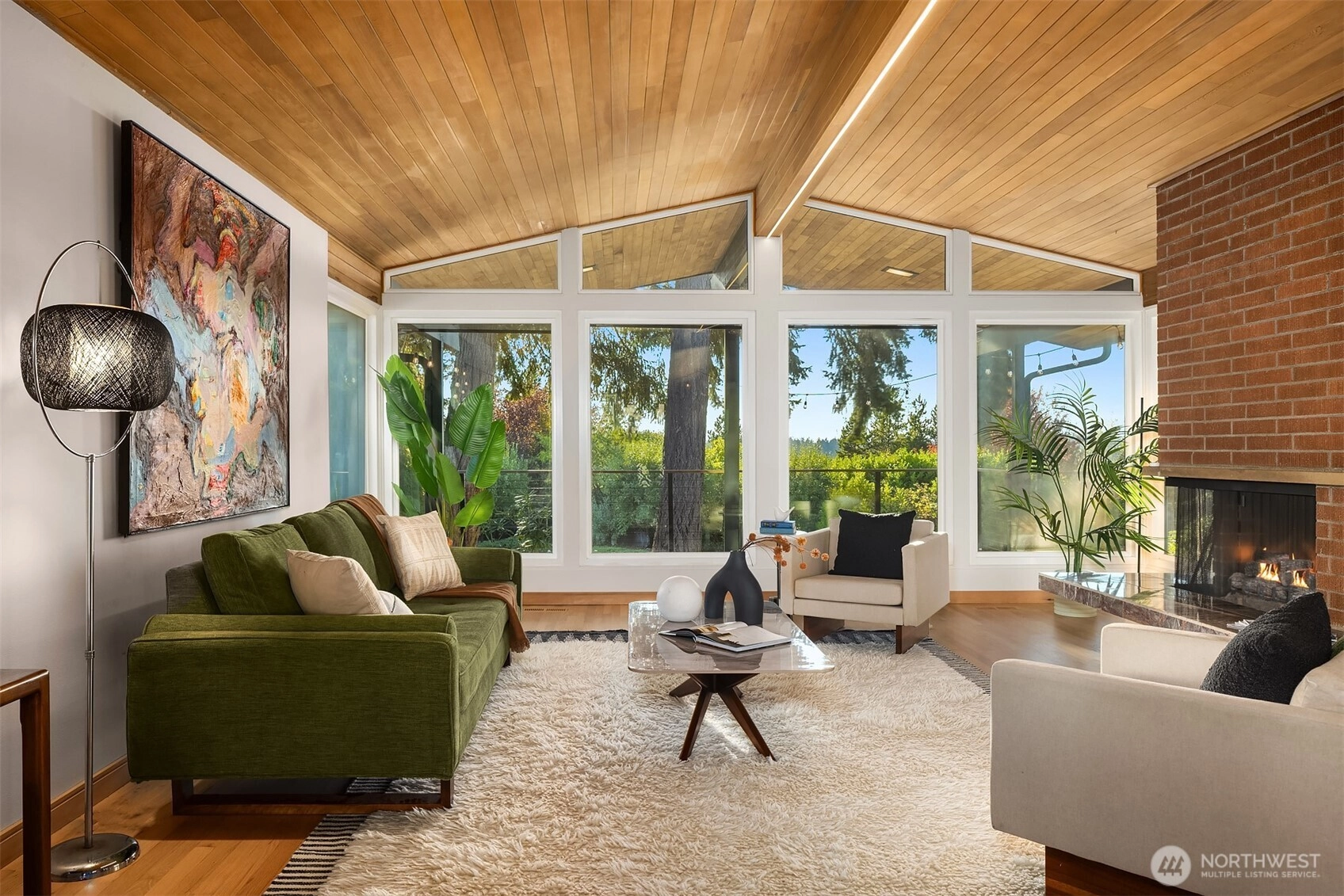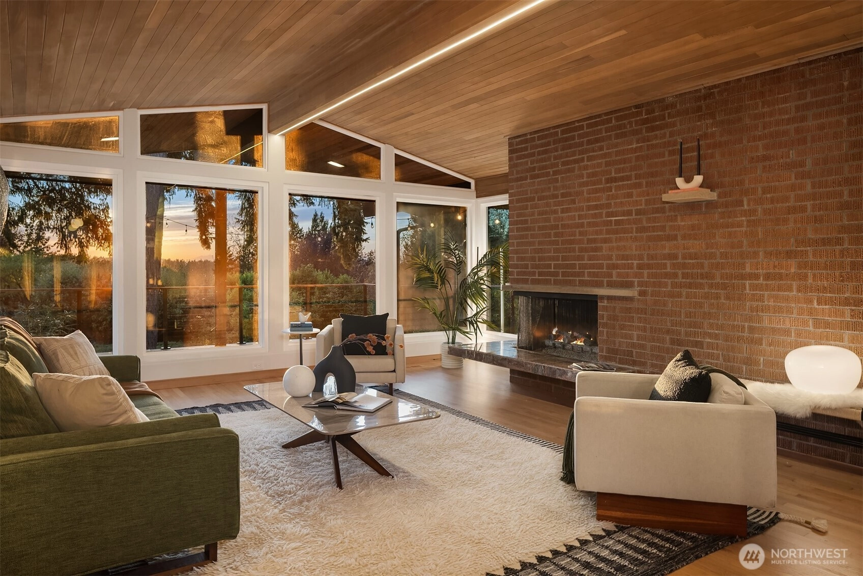 This is the Mid-Century modern you have been waiting for! Every aspect has been thoughtfully updated & they kept the right MCM touches, like hand sanding the wood ceilings! Pull through a quintessential mid-century carport & enter into a stylish home glistening in the evening sun. Every room in the house faces west with abundant light. Double lot with mature trees & large yard create privacy. Kitchen is fully remodeled. New hardwood and porcelain floors. The primary bedroom has been remodeled including wood clad ceilings, new slider to the back yard, new closet & fully remodeled bath w/ heated floors. New 40K membrane roof, furnace + Â AC, water heater, interior paint, exterior paint, trim, rebuilt deck & chimney tucked. Two community pools!
