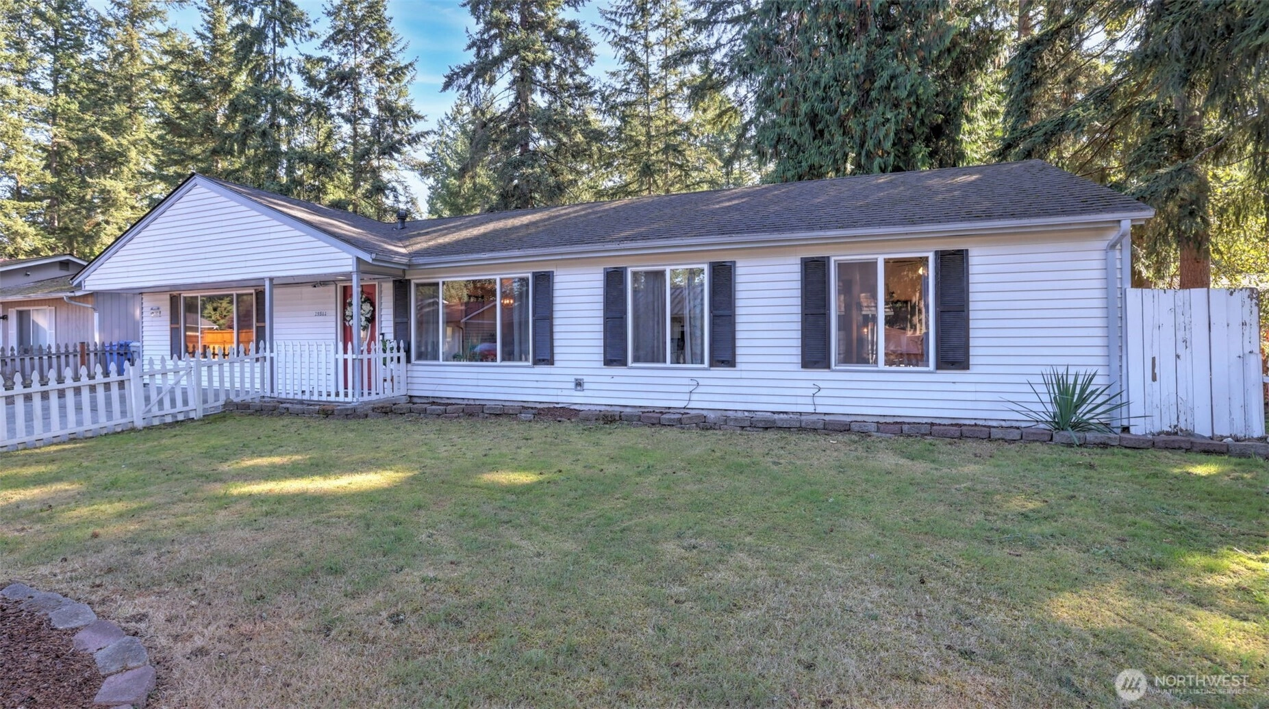The home you have been waiting for has finally hit the market! Enter property through the quaint white picket fence and head inside to see all this open floorplan has to offer. Slab granite kitchen with breakfast bar and stainless appliance package. Living room + spacious family room. Updated bathroom with new vanity has full tile shower surround. You can exit through the sliding glass doors from the dining nook or family room to access the large fully-fenced back yard with recently installed entertainment sized patio that has covered + uncovered space for year-round enjoyment. This surprisingly secluded yard space is complete with firepit & shed is buffered with green space on 2 sides. In-home laundry. All appliances are included.