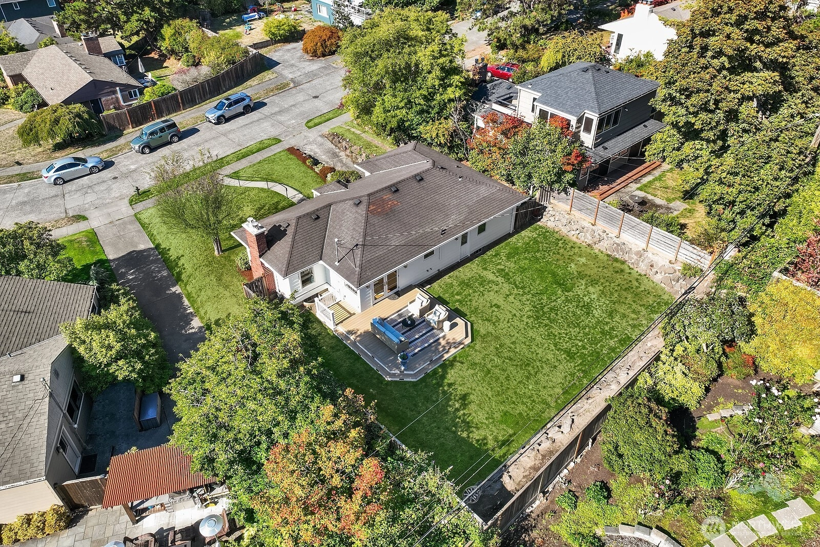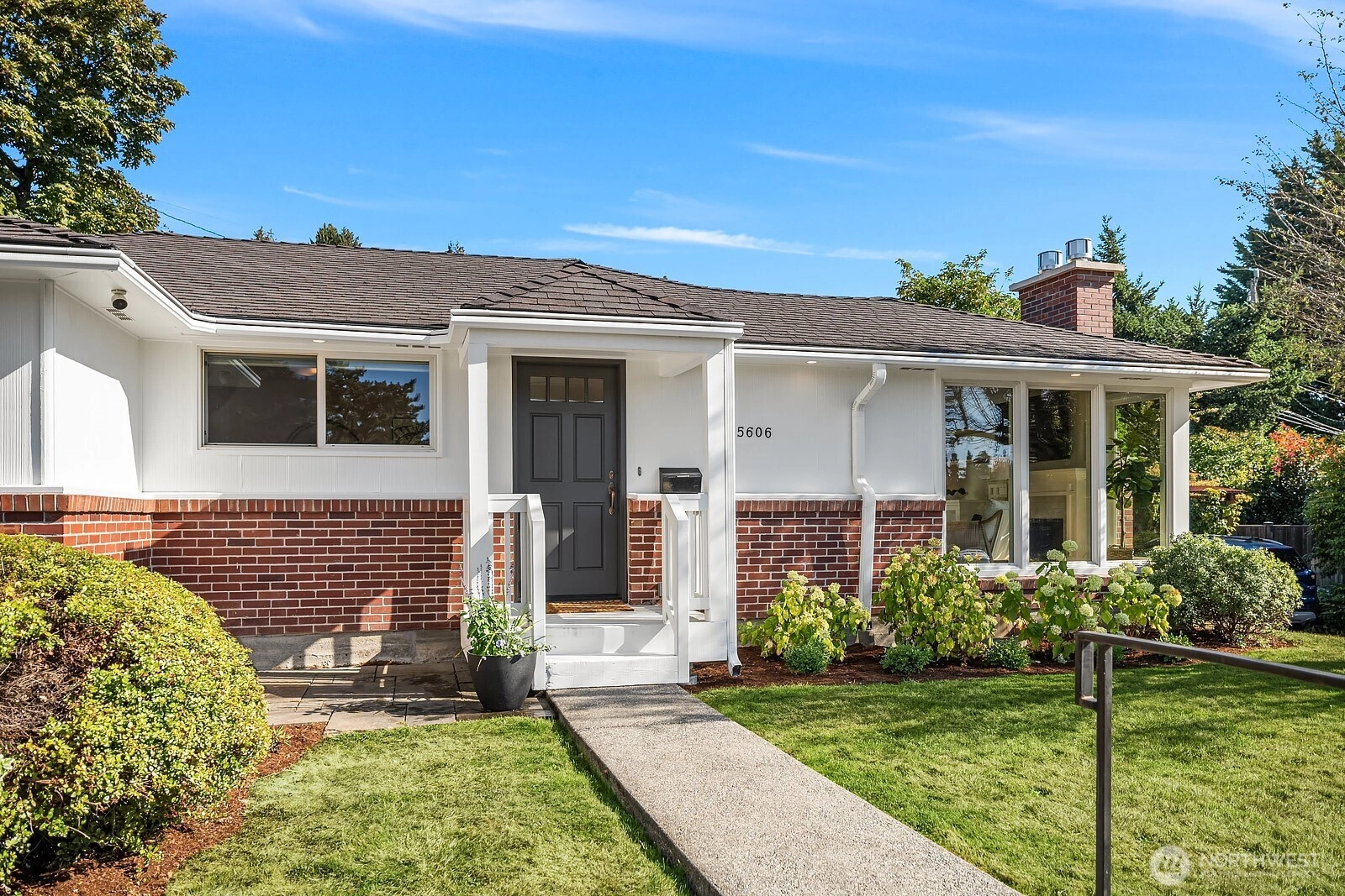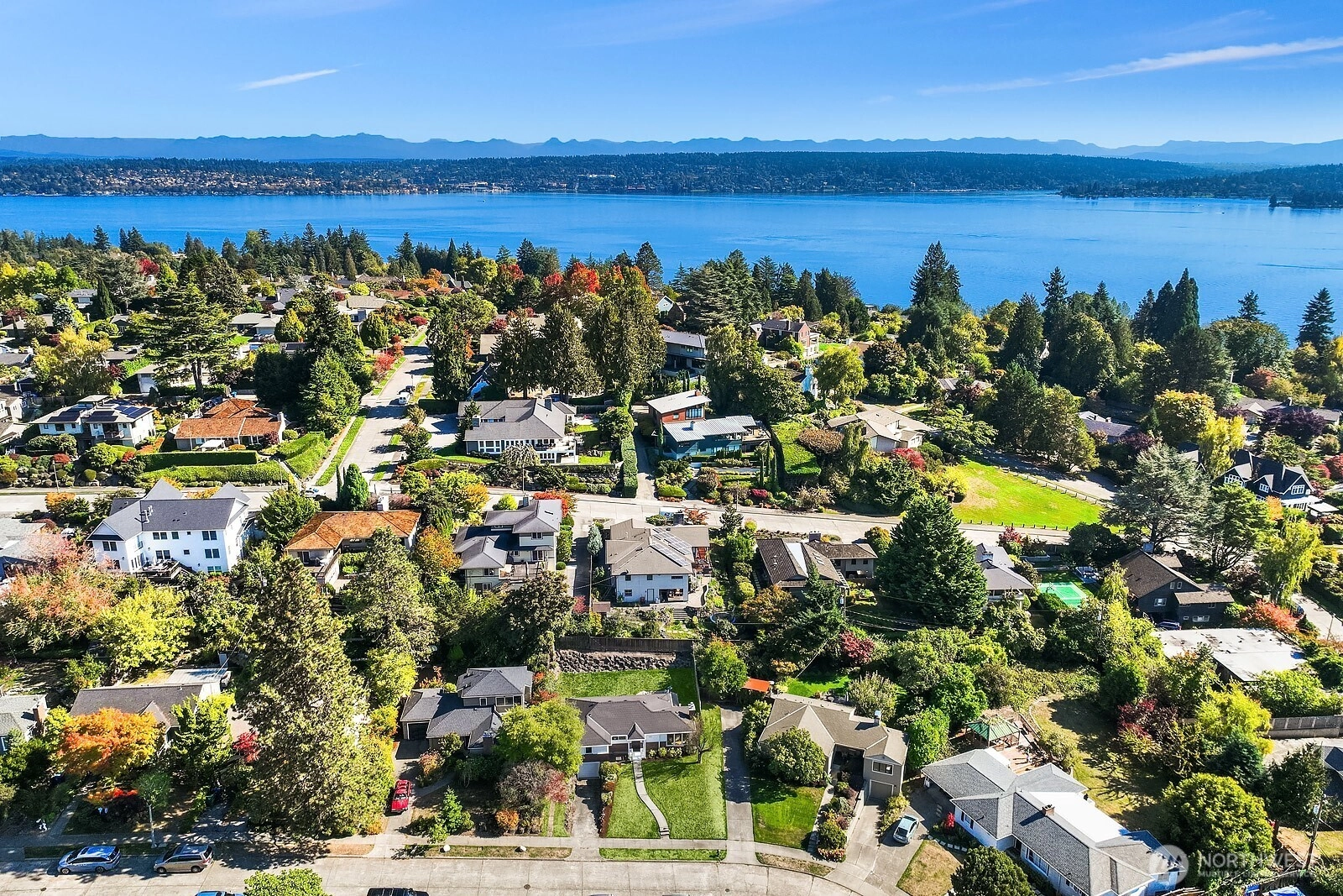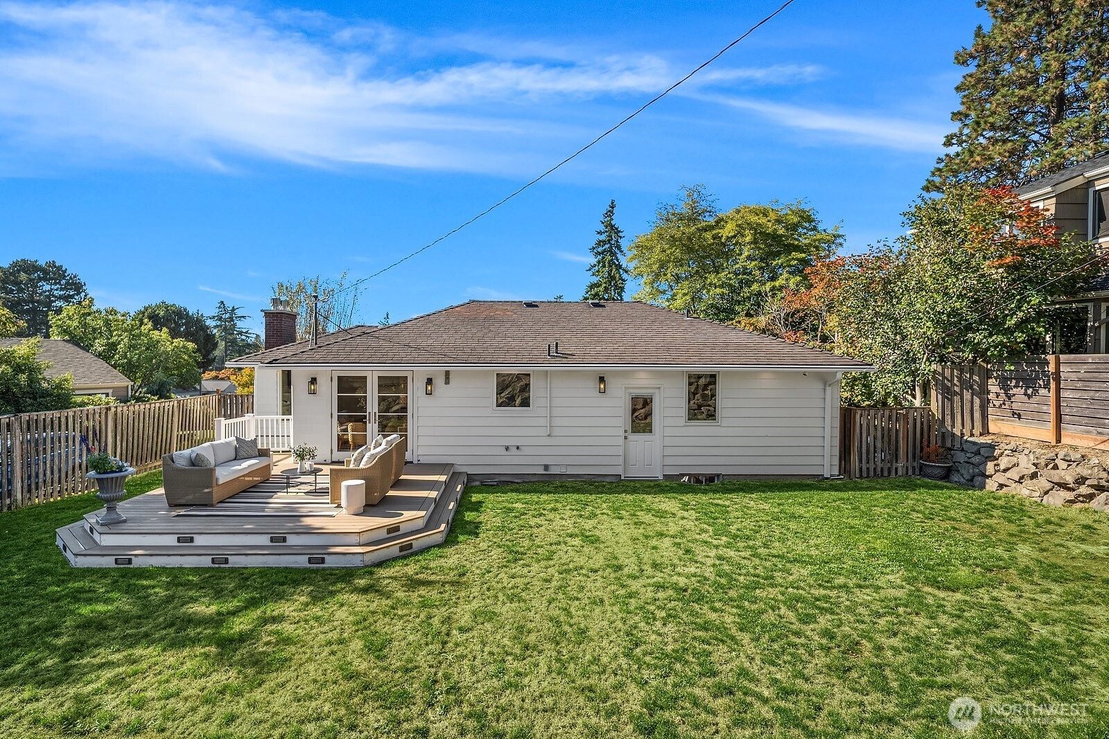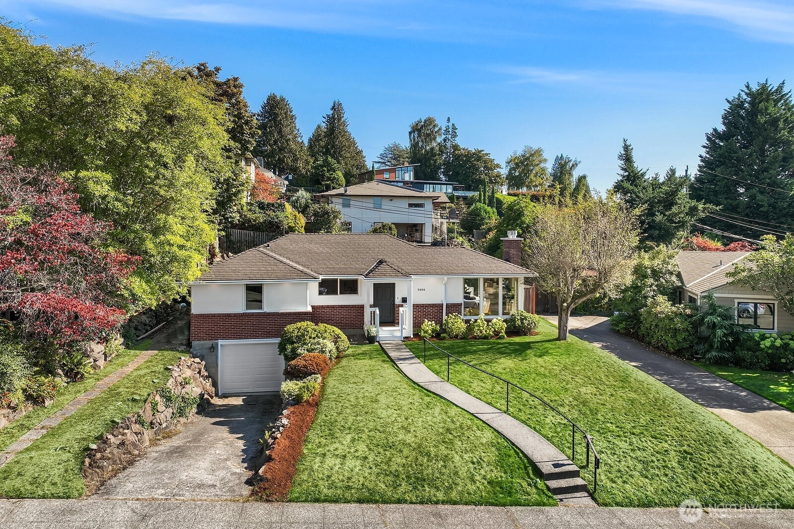 Contemporary updates blend w/ mid-century elegance in this Belvedere Terrace home, perfectly situated on an expansive, sun-drenched lot. The living room, bathed in natural light from its floor-to-ceiling windows, is anchored by a marble fireplace & rich hardwood floors. The dining room seamlessly opens to an inviting deck, ideal for entertaining. The kitchen is equipped w/ SS appliances, brushed brass hardware, & Corian countertops. Three generous bedrooms & an updated bath complete the main. The lower level offers a private retreat, including a remodeled family room w/ wet bar, a nonconforming bedroom or office, a second marble bath, a laundry room & a one-car garage. Soak in NE Seattle living w/ territorial views in this ideal location!