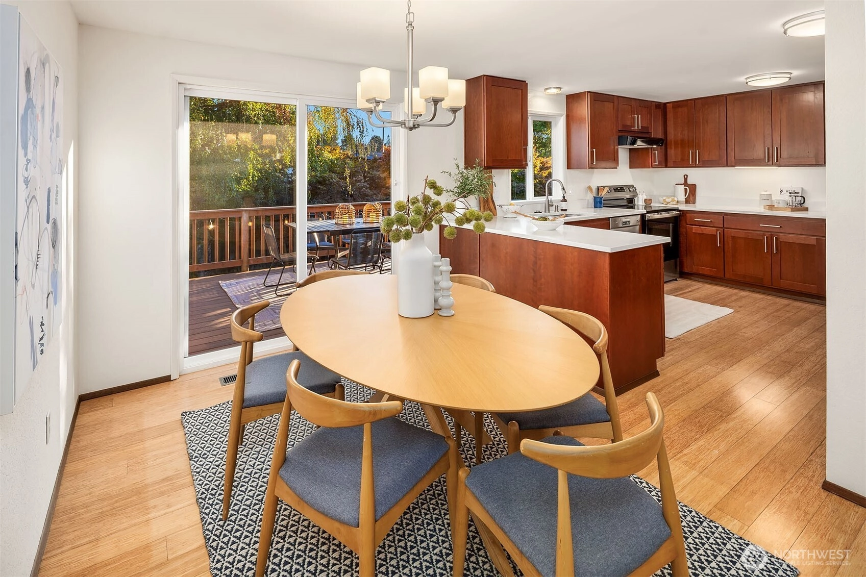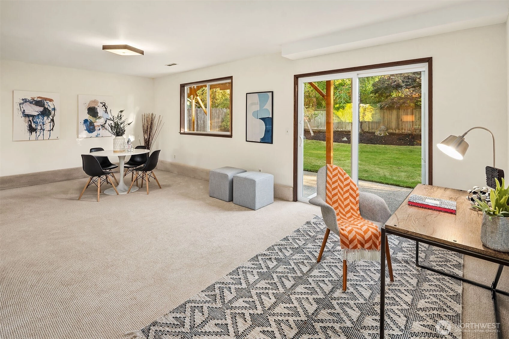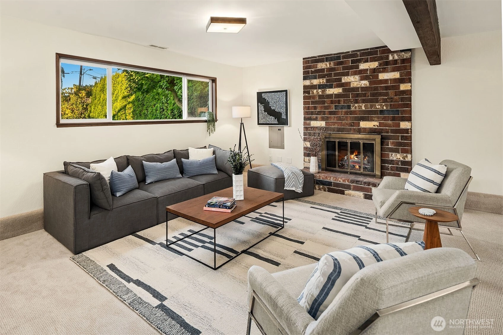 This fabulous, light-filled home blends contemporary style, comfort, and fantastic living spaces both inside & out. Enjoy updated kitchen which flows effortlessly through adjacent dining area to a sunny, south facing deck overlooking mature trees, lawn & gardens. The spacious living room offers the perfect setting to relax or host gatherings w/cozy wood burning fireplace. On the main floor you'll find three bdrms, including primary en-suite, which is sure to please w/ its own deck. The lower level adds even more versatility w/oversized daylight rec-room that boasts high ceilings & backyard access. Enjoy nearby trail access points to Carkeek Park trails & everything Carkeek has to offer. Great house + great location makes this a must see!