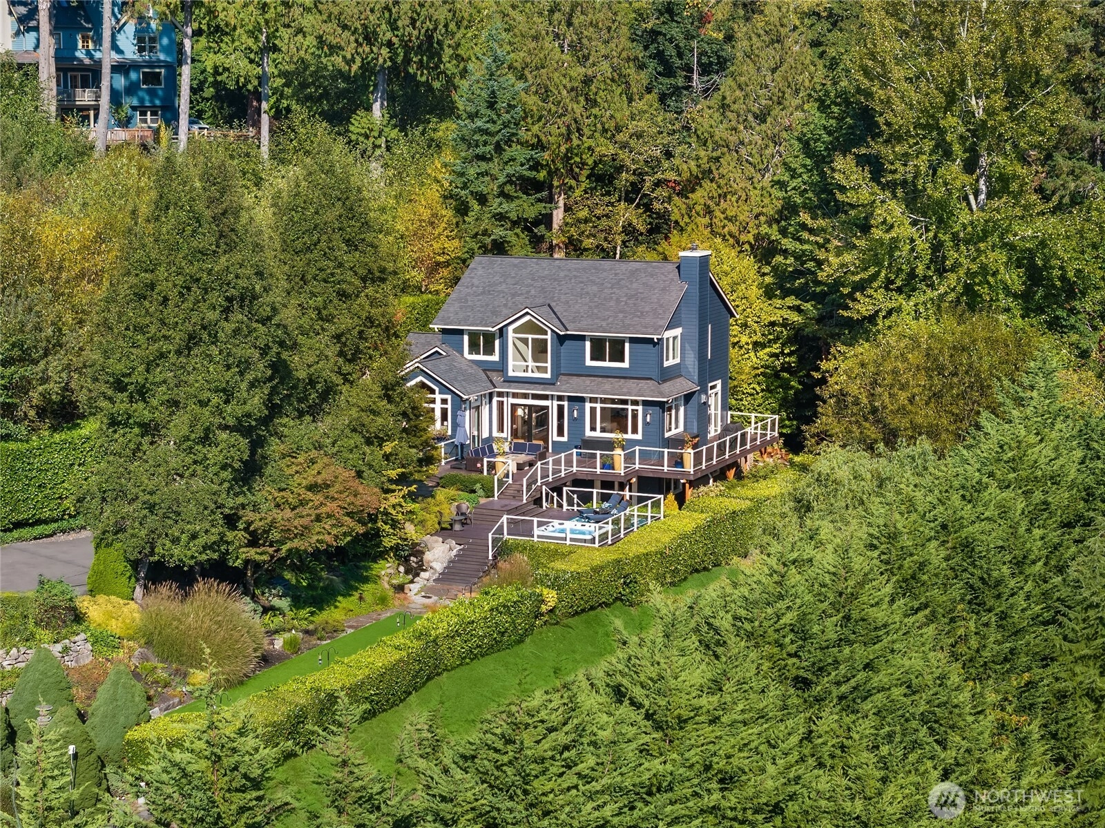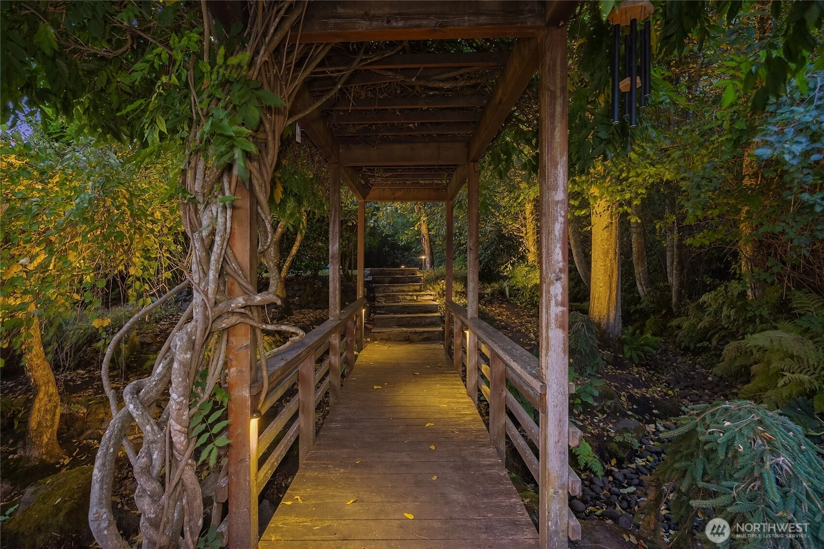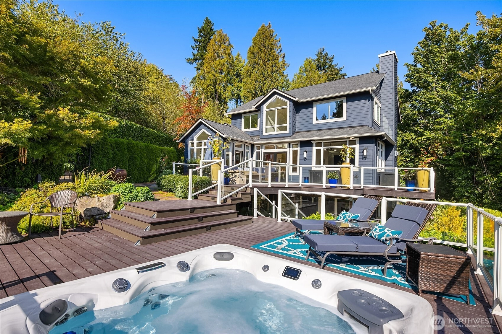 Enjoy stellar privacy & southern exposure on 1+ acres of manicured, park-like grounds featuring 3 fountains, Bocce court & a secluded firepit area with Mt. Rainier views. Custom-built by Andy Mueller and extensively updated, the home features high ceilings, extensive windows & a chef’s kitchen with Wolf range & 48” Sub-Zero fridge. Fantastic floorplan featuring 2 primary suites: 1 on the main level & 1 upstairs with stunning view of Mt. Rainier, plus a lower-level guest area with separate entry. Large rec/family room upstairs! Living room French doors open to multi-level decks & a hot tub. Coveted south-end location, tucked away off a quiet cul-de-sac just mins from Lynwood Center & Gazzam Lake. Over $200K in improvements in the last year!