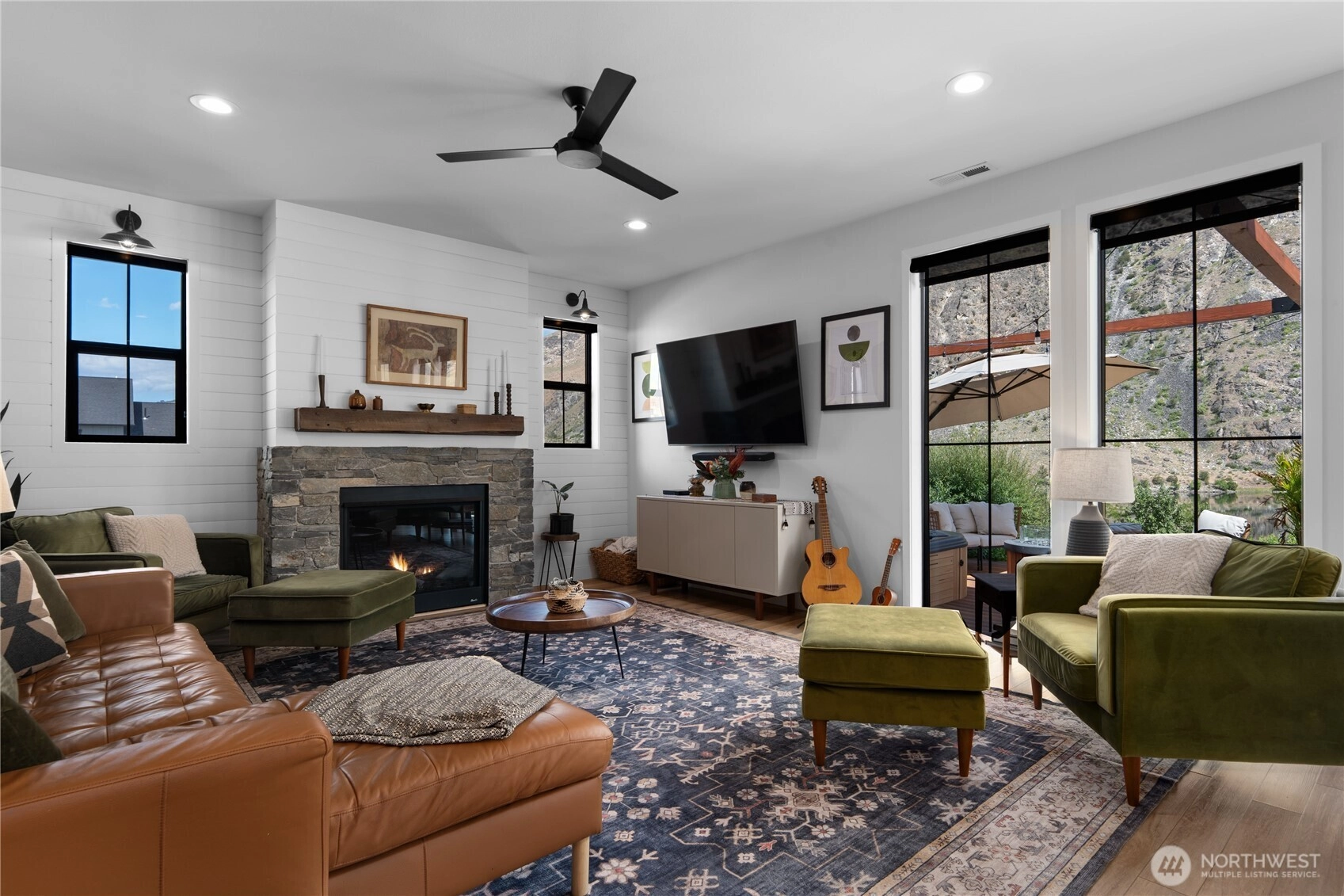 Live the ultimate riverfront lifestyle in this stunning modern farmhouse, perfectly positioned on 100' of Columbia River shoreline in the Twin Pines Landing community, 10 minutes from Chelan! Enjoy seamless indoor-outdoor living with floor-to-ceiling windows & French doors that open to a spacious deck, hot tub & jaw-dropping views of the river & surrounding mountains. The sleek, designer kitchen features a massive 9' quartz island, walk-in butler pantry & stylish finishes throughout. Unwind in the spa-inspired primary suite with a deep soaking tub & custom tile shower behind frameless glass. This property is made for adventure & entertaining with a private mooring buoy, floating dock & shoreline trail for easy water access. Some photos show driveway before asphalt was completed in July 2025.