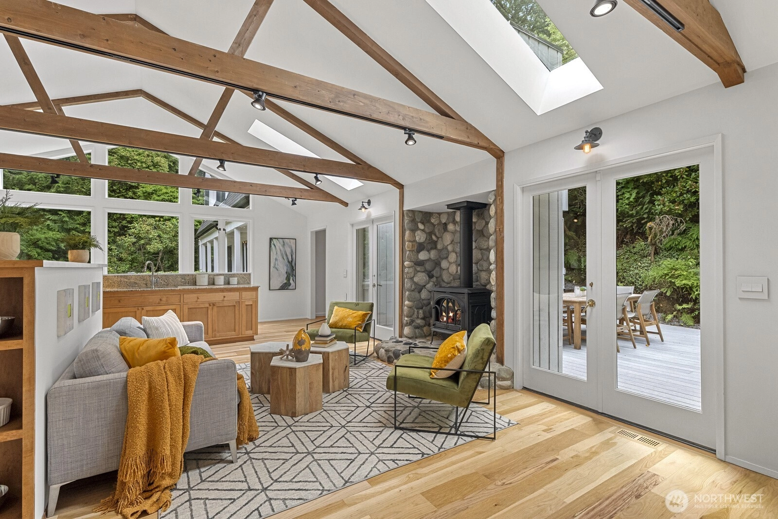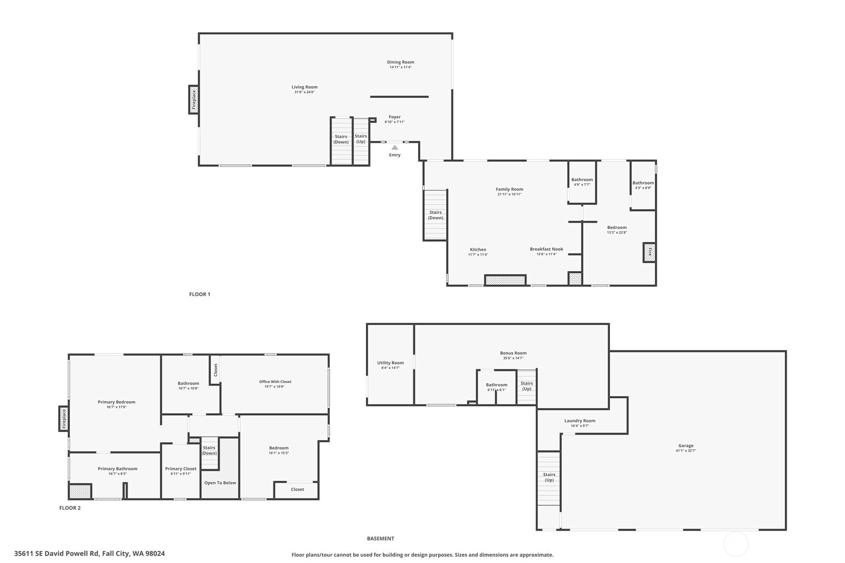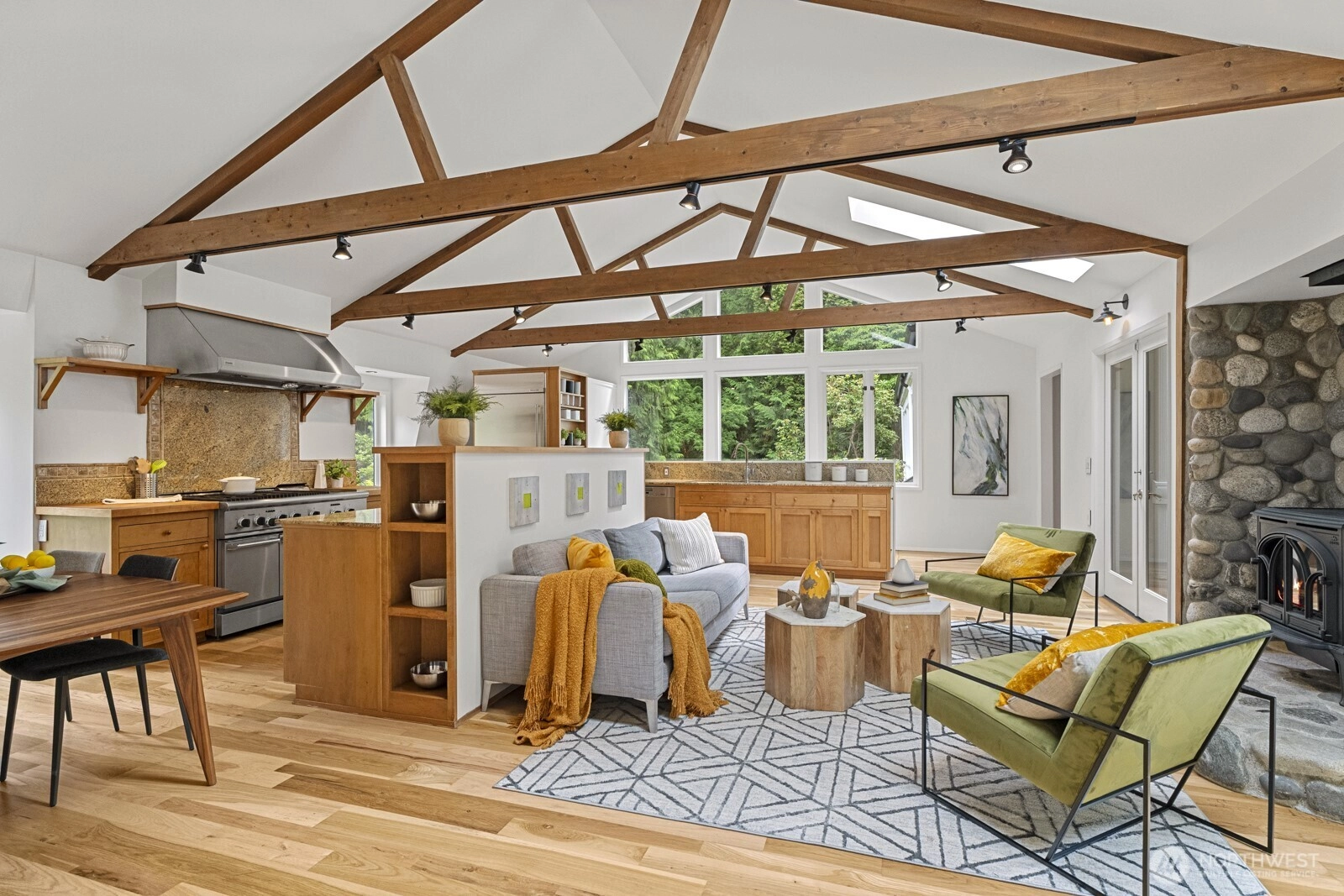 A rare offering on idyllic David Powell Road. Hillside retreat on 3 parcels totaling 11.67 acres. 300 ft of prime Snoqualmie riverfront. Magnificent waterfalls, stream & pond. Extensive trails throughout property. 3 beds + large office w/ windows & closet. Interior features vaulted ceilings, beams, & woodland views. Exquisitely updated interior (2022), including spa-like primary suite. Warm yet spacious home, designed for comfort. Multiple decks for entertaining & relaxation. Don't miss deck next to waterfall & fenced orchard. So much to see & explore. Take your time to fully experience this magical property. Feels a world away, yet just mins to I90. Delightful art studio/flex space. Prized Snoqualmie Valley schools. Pre-inspected. Welcome!