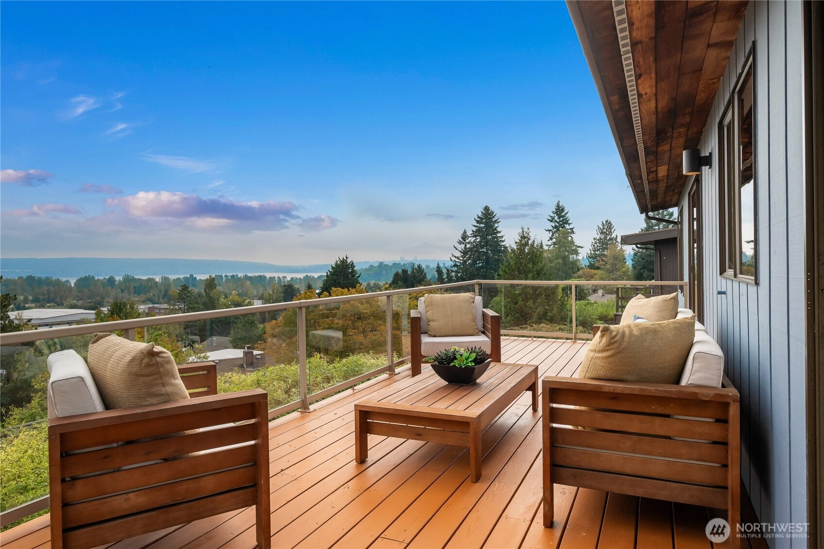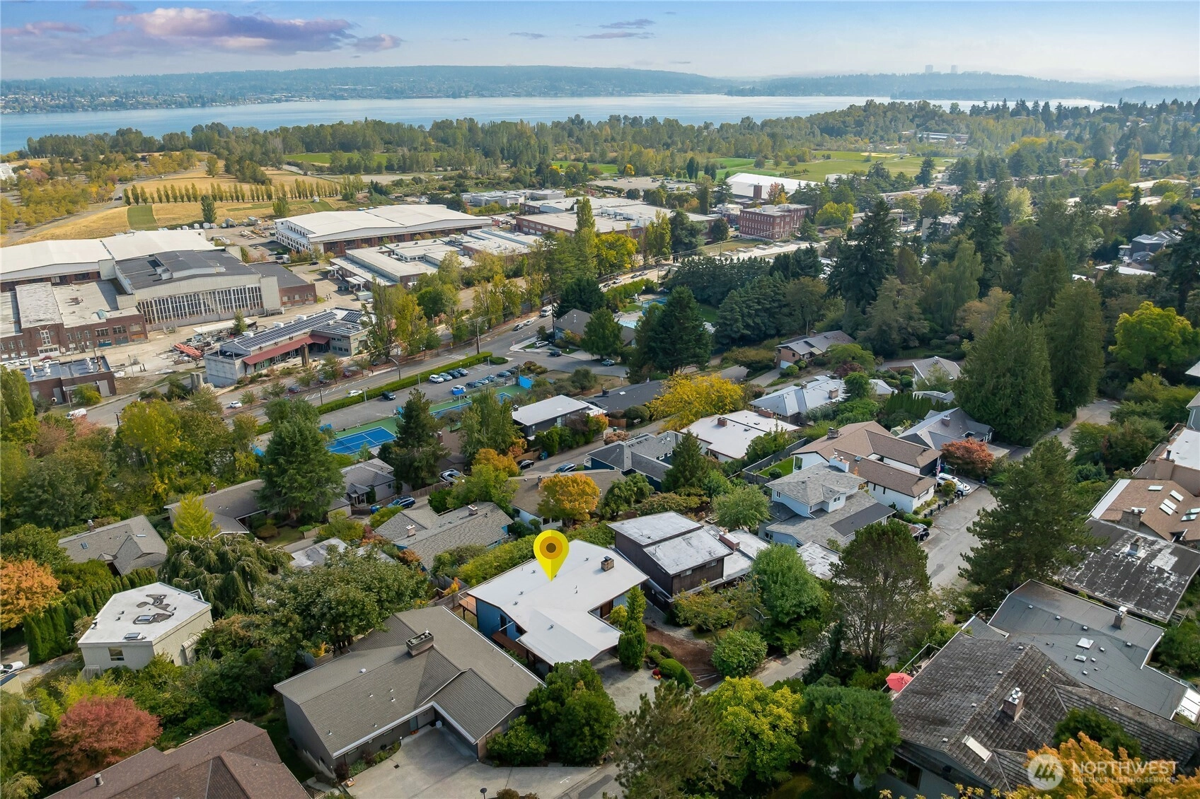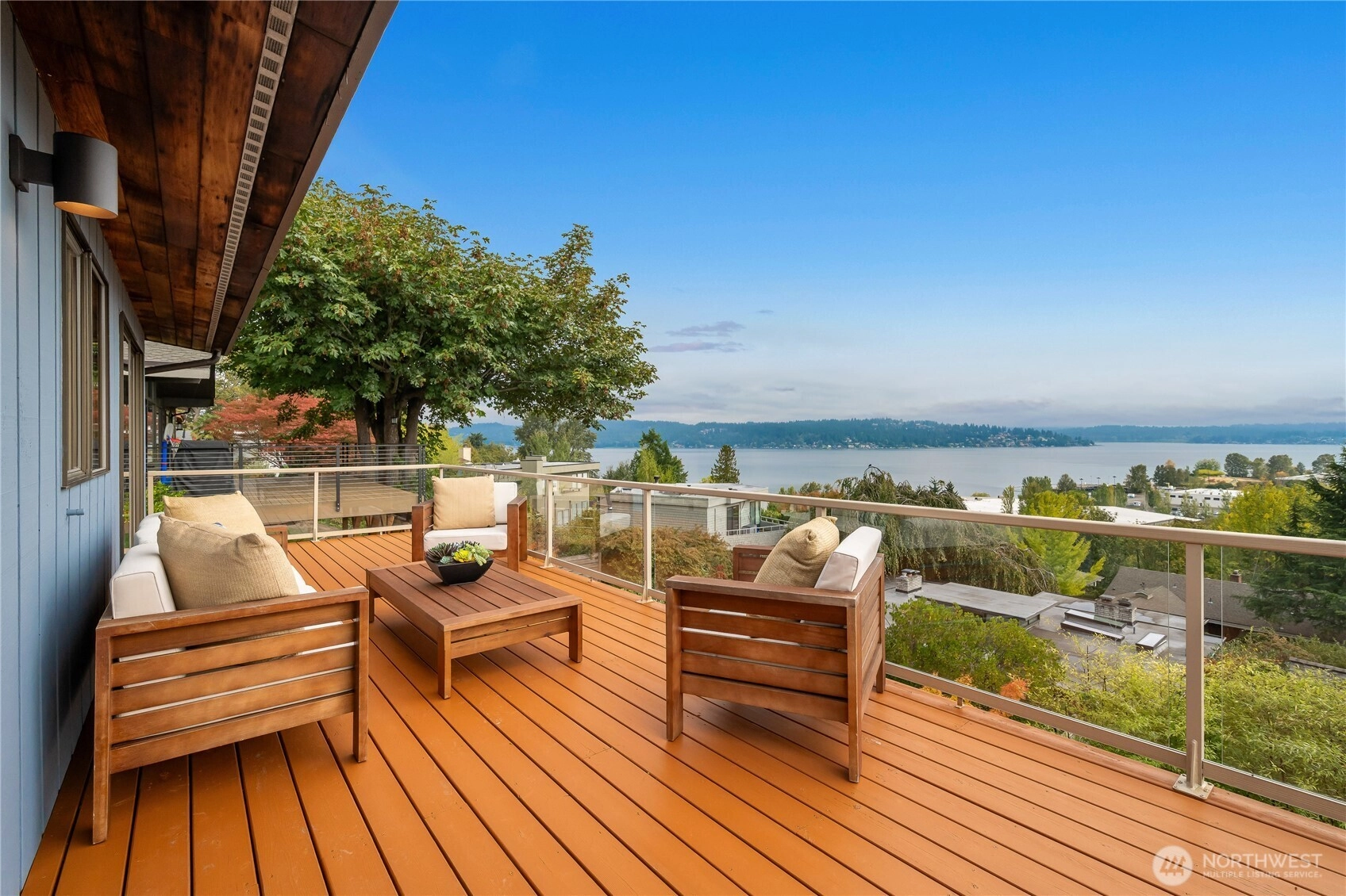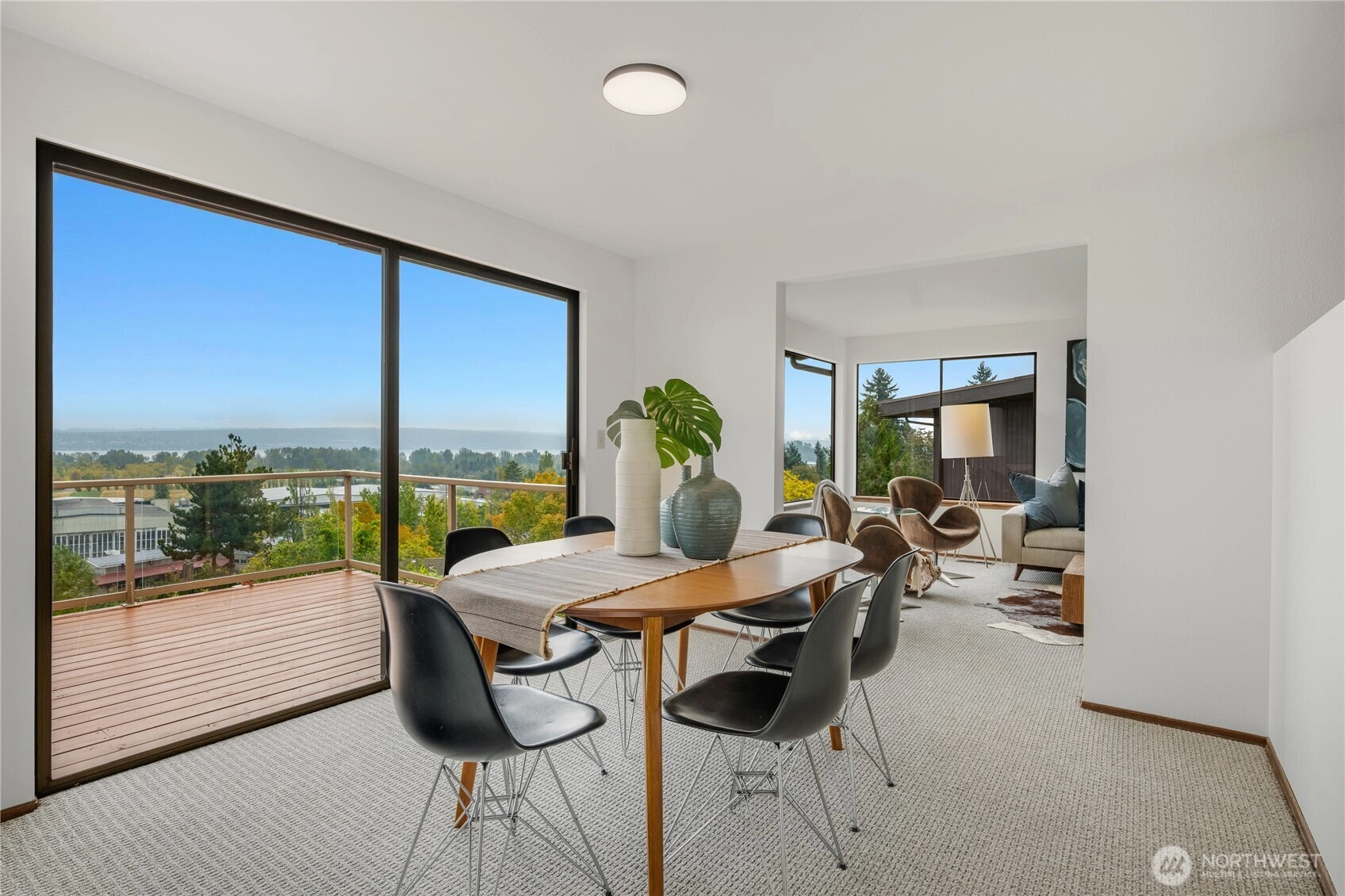 Grab a front row seat to the splendor of the Northwest! Generous windows embrace the main living areas of this 1968 custom home, filling the rooms with light. Wake to striking panoramic sunrise views over the lake and to the mountains, watch the seasons take hold, the glow of autumn paint the trees, and bright clouds roll across the sky. The open flow provides ample space for dinners and kitchen dance parties, for work and workouts, and a flexible footprint in which to shape the home of your dreams. The main floor primary has a sense of privacy and retreat, with four more bedrooms on the lower level as well as a family room. This home has an active transferable membership in the View Ridge Swim & Tennis Club located just down the street.