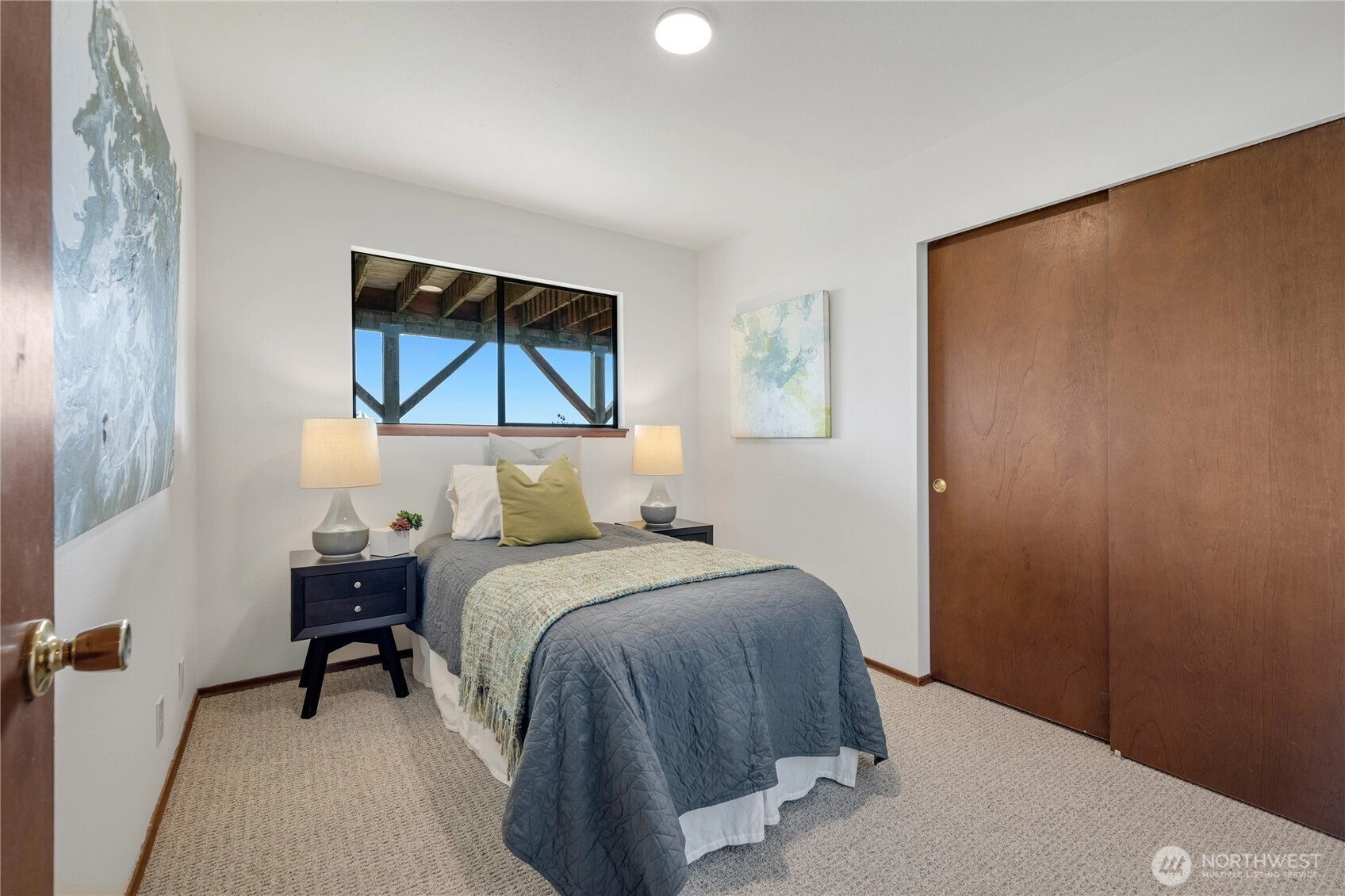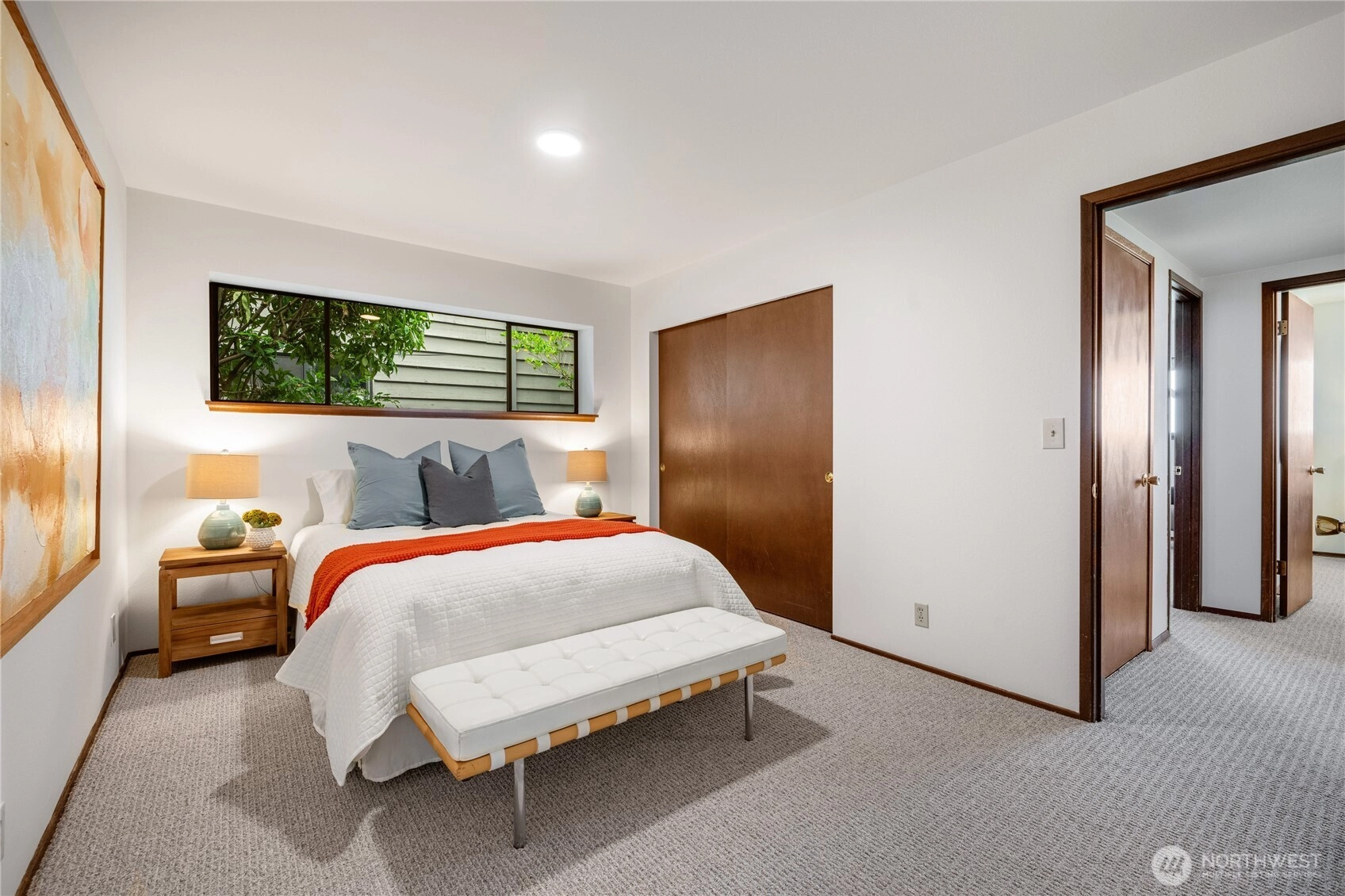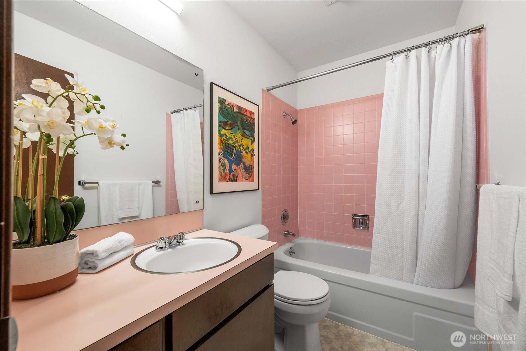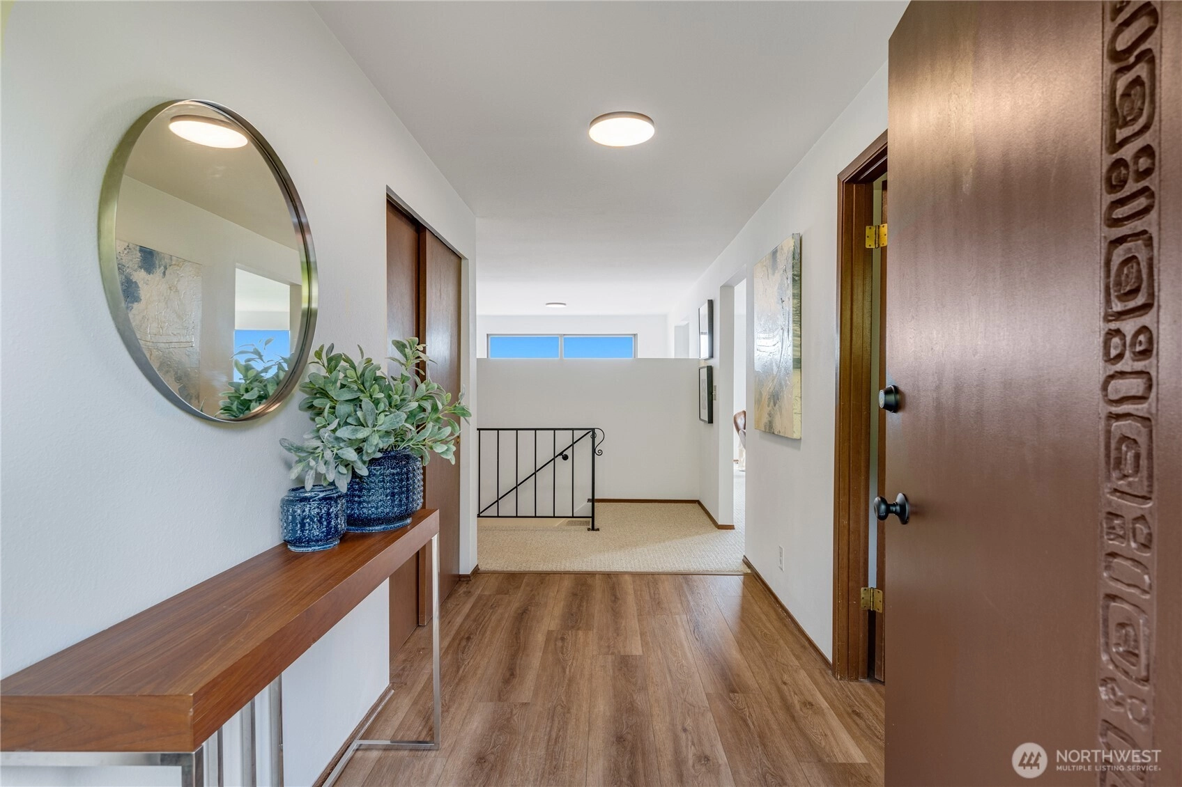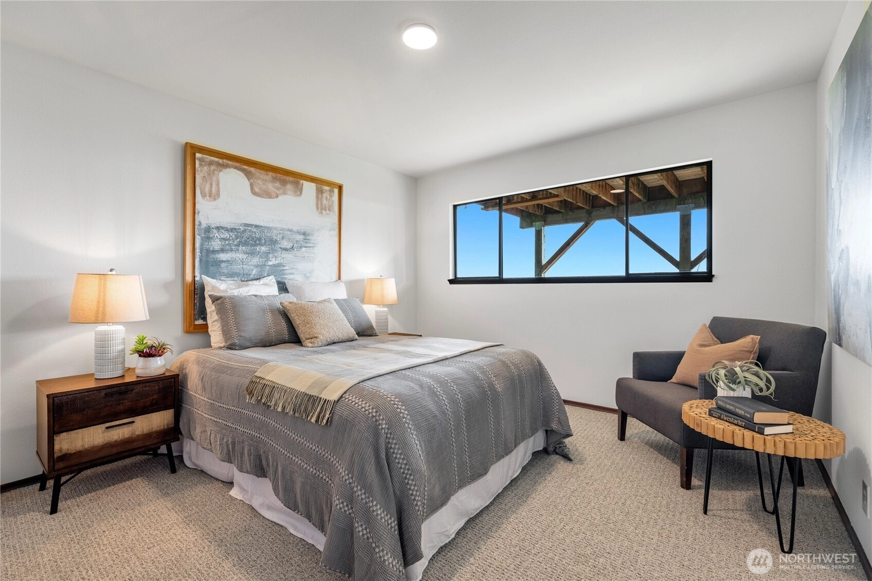 Grab a front row seat to the splendor of the Northwest! Generous windows embrace the main living areas of this 1968 custom home, filling the rooms with light. Wake to striking panoramic sunrise views over the lake and to the mountains, watch the seasons take hold, the glow of autumn paint the trees, and bright clouds roll across the sky. The open flow provides ample space for dinners and kitchen dance parties, for work and workouts, and a flexible footprint in which to shape the home of your dreams. The main floor primary has a sense of privacy and retreat, with four more bedrooms on the lower level as well as a family room. This home has an active transferable membership in the View Ridge Swim & Tennis Club located just down the street.