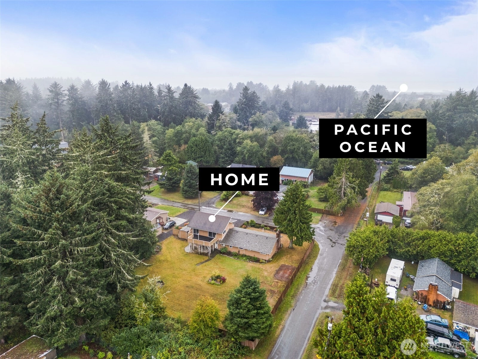 Fresh new carpet and a spacious double lot set the stage for this Westport home with 4 bedrooms, across nearly 2,000 sq ft. Main level offers a living room w/wood stove and built-ins, open dining area, & kitchen with SS appliances. Upstairs, a landing with wet bar and 2 bedrooms both with deck access via sliding doors, & vaulted ceilings, one with ensuite & the other w/a designated bath. Updates include ductless mini-splits, most windows, garage doors, propane tank, and portable generator. Two car garage & shed for storage. Level, 14,000sqft double corner lot provides space for gardening, entertaining, and potential development. Just minutes from the beach, shops, and restaurants - ideal as a primary home, getaway, or short-term rental.
