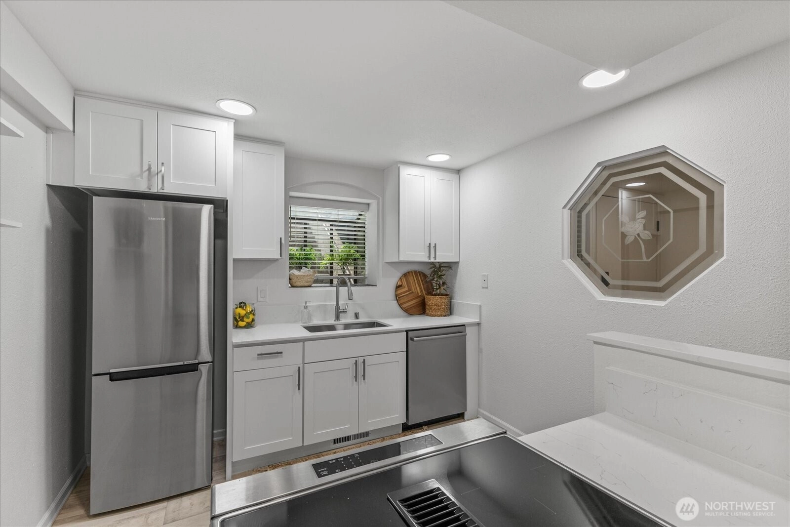 Welcome to Village Park Condominiums in prime location! This charming end unit offers 2 bedrooms & 1.5 baths w/ spacious private deck for outdoor living & entertainment. The home features hardwood floors, updated kitchen & bathrooms, new cabinets & quartz counter tops, new carpet, new paint & stainless appliances. Convenient amenities include washer & dryer, 2 storage areas and 2 dedicated parking spots w/ abundant guest parking. HOA includes Water, Sewer, Garbage, Cable & Common Area Maintenance. No rental cap. Centrally located near Yarrow Point & Houghton, with easy access to I-405 and 520, you're just minutes from downtown Kirkland, Bellevue, and a quick commute to Seattle. This is the ideal blend of location, comfort, and convenience.