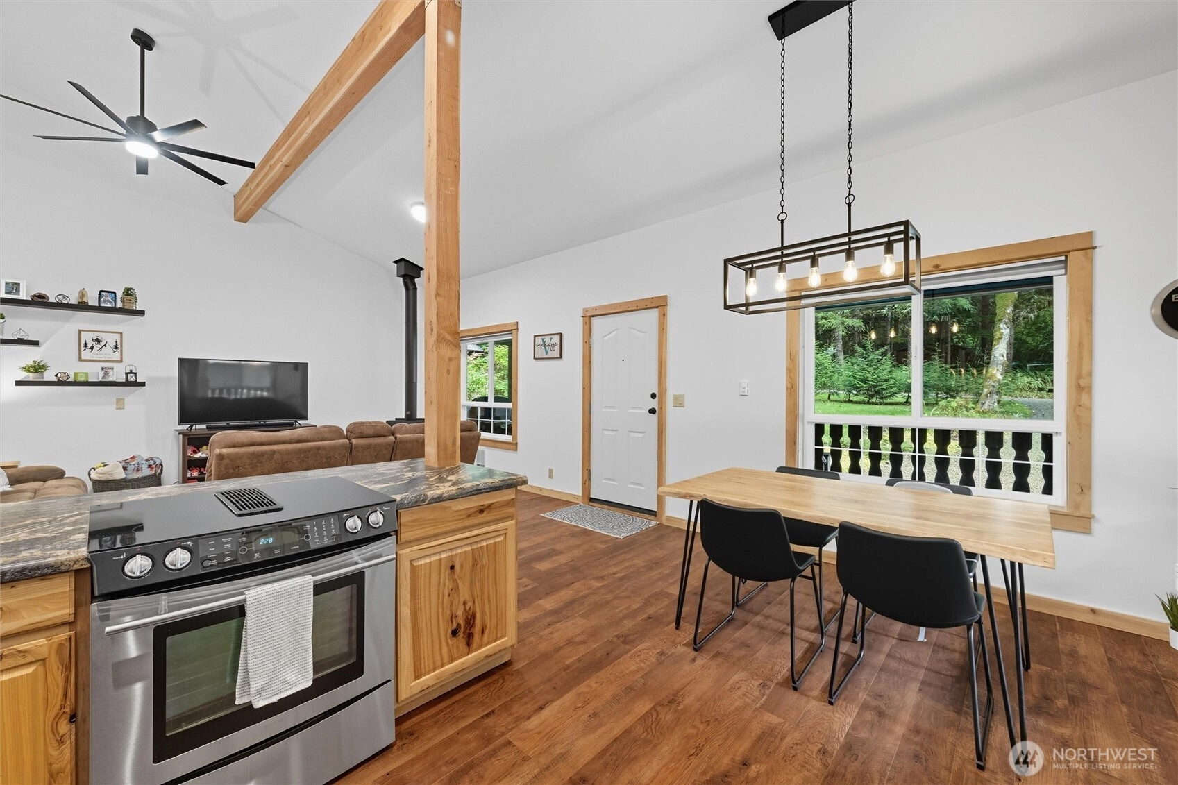 The mountains are calling! This beautifully updated Glacier Springs home is the perfect destination for year-round living, days on the slopes & easy outdoor recreation. Step inside this open-concept contemporary cabin with vaulted ceilings, wood beams & knotty pine finish work throughout. Thoughtfully designed with two large bedrooms & tiled full bathroom on the main floor. Upstairs loft space with 3/4 bath, oversized storage closet, & bonus space perfect for a home office, media room, or additional sleeping space. Spend winters cozied up by the wood stove & summers on the wrap around porch looking out over manicured grounds complete with a fenced yard & fire pit area. Newer roof & a whole house water filtration system, look no further!