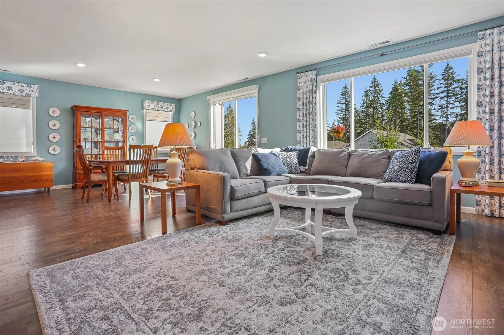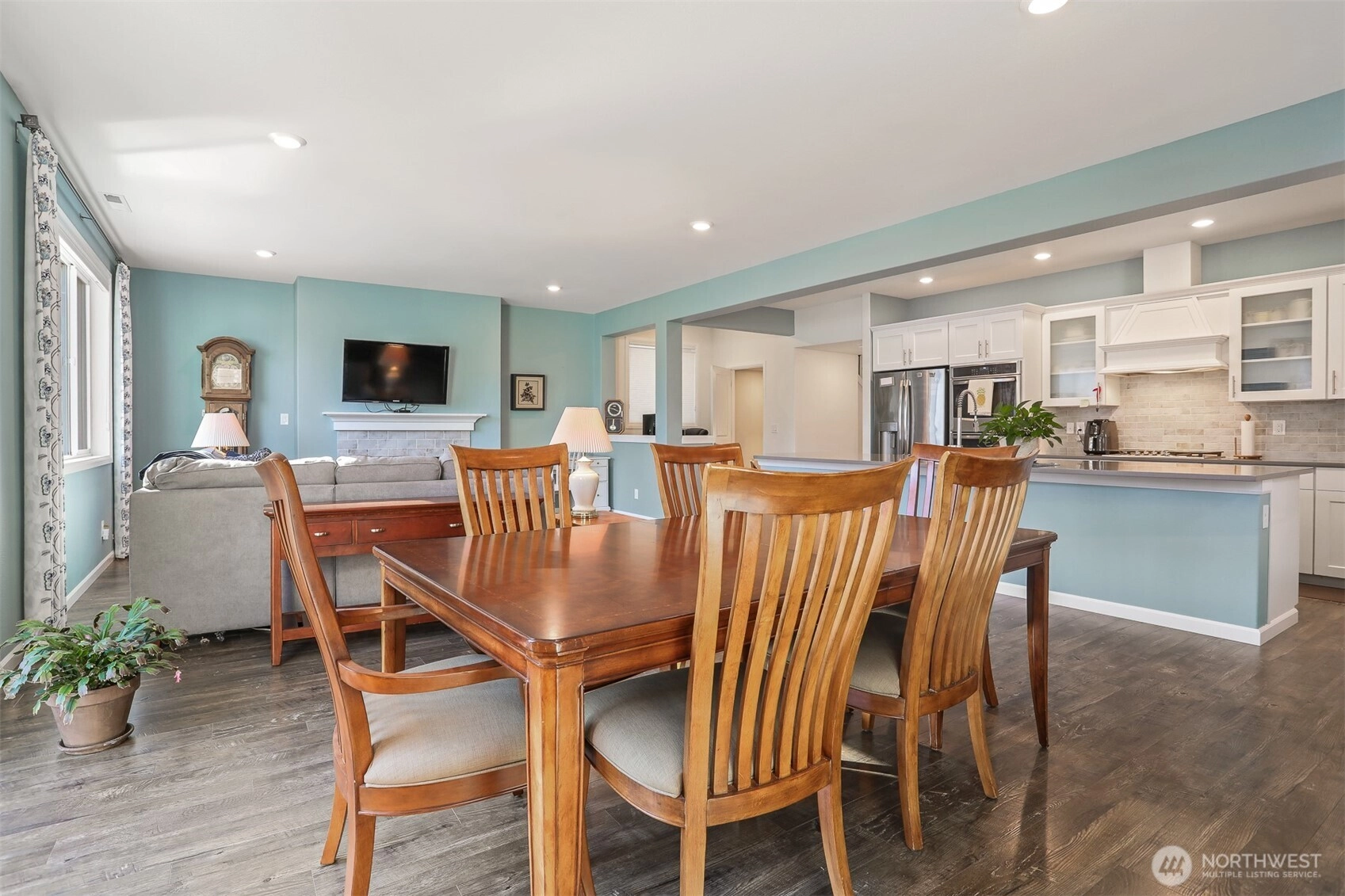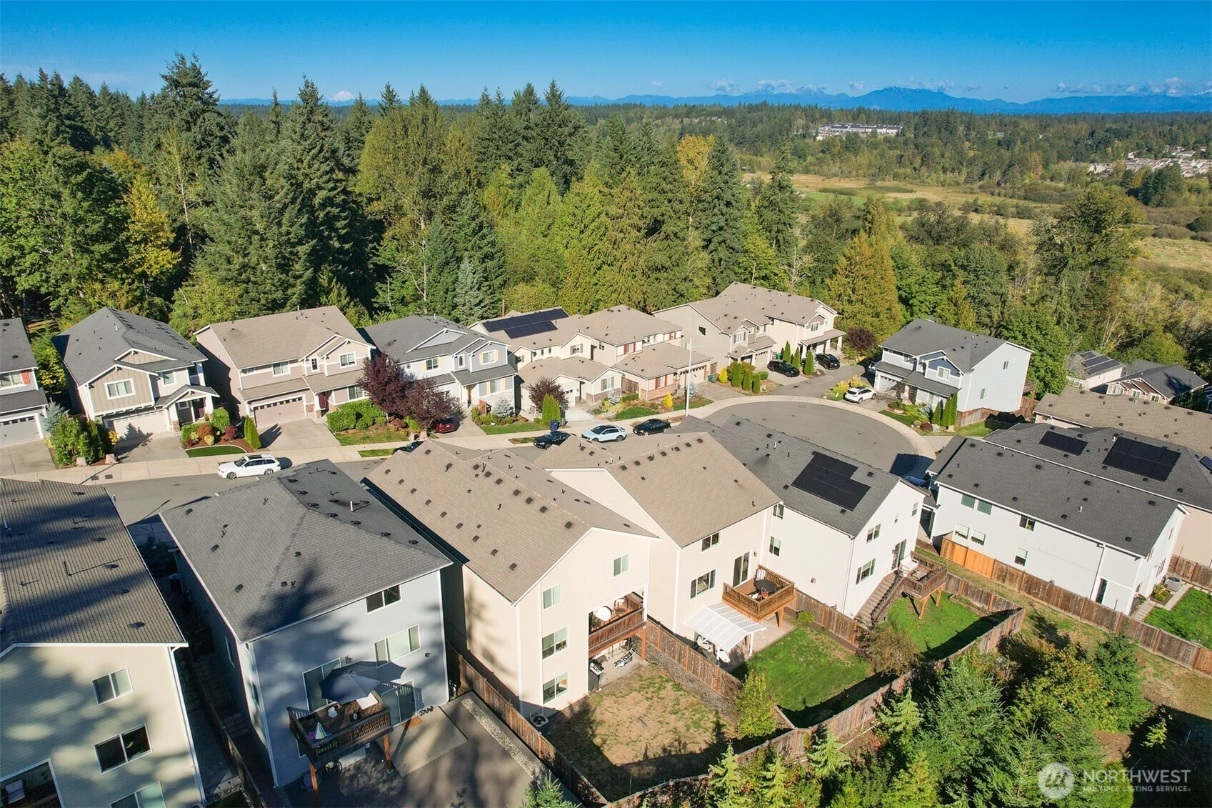 Millbrook Ridge by Lennar homes rare resale home. Better than new upgraded home boarders a community greenbelt/park with sweeping mountain and territorial southerly views. Elegant luxury finishes as you enter the formal entry open staircase hallway. Main floor open floorplan with a gourmet kitchen with entertainment sized island/eating bar, stainless appliances, quartz counters, gas range and shaker wood cabinets opens to formal Living room features gas fireplace and dining room w/slider to view deck. Upper floor Master bedroom suite w/walk in closet & 5 piece bath. Upper level: 3 bdrms, full bath & utility room. Daylight lower level has a family room, full bath & the 5th bdrm and slider to covered heated patio & fenced back yard.