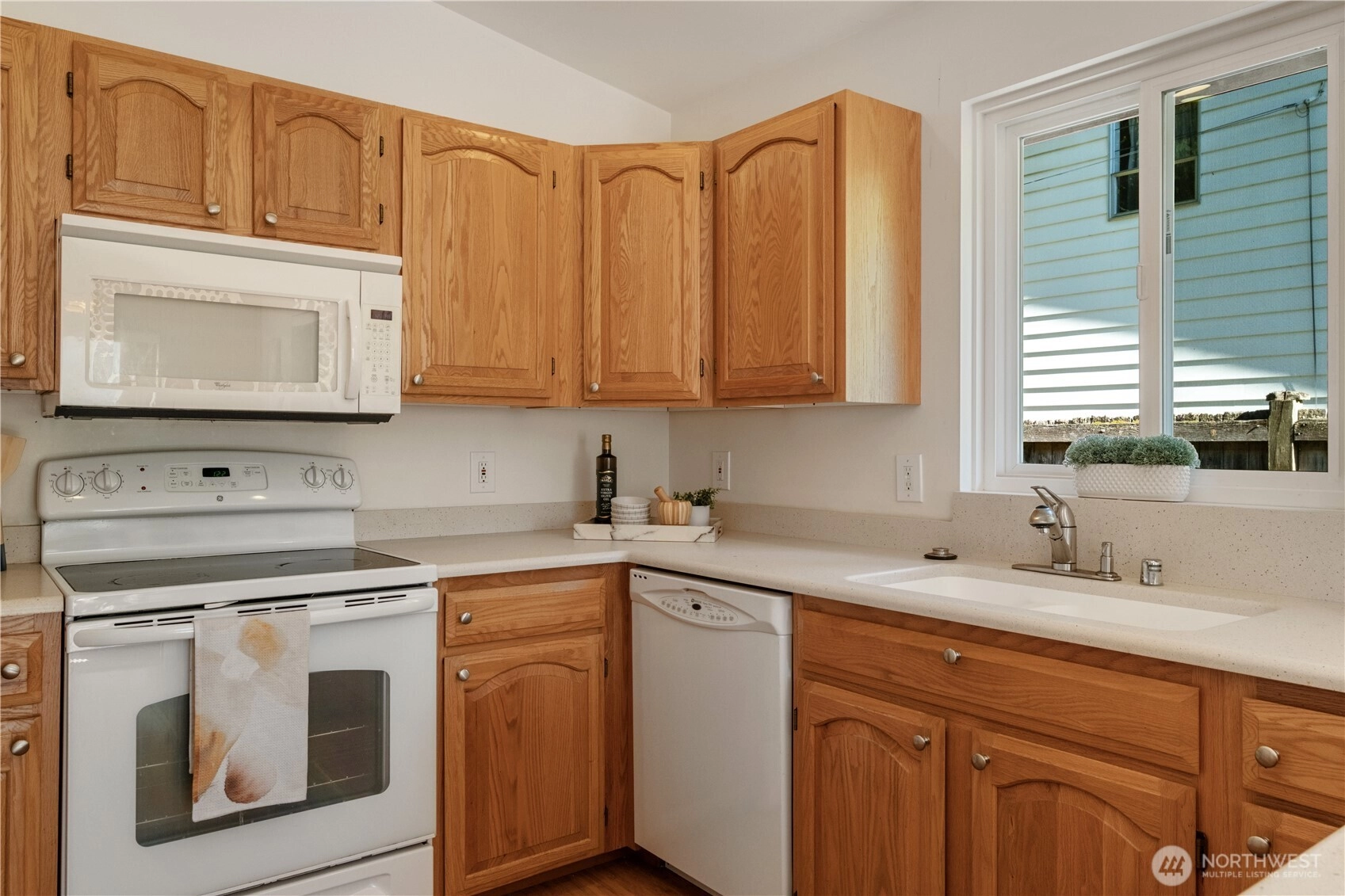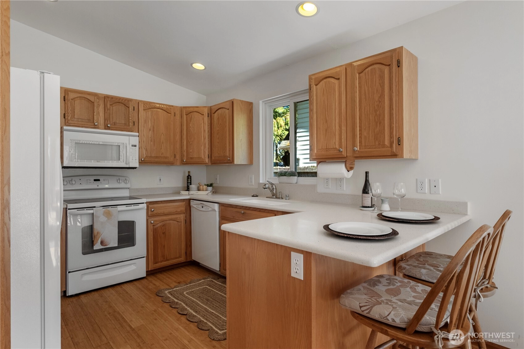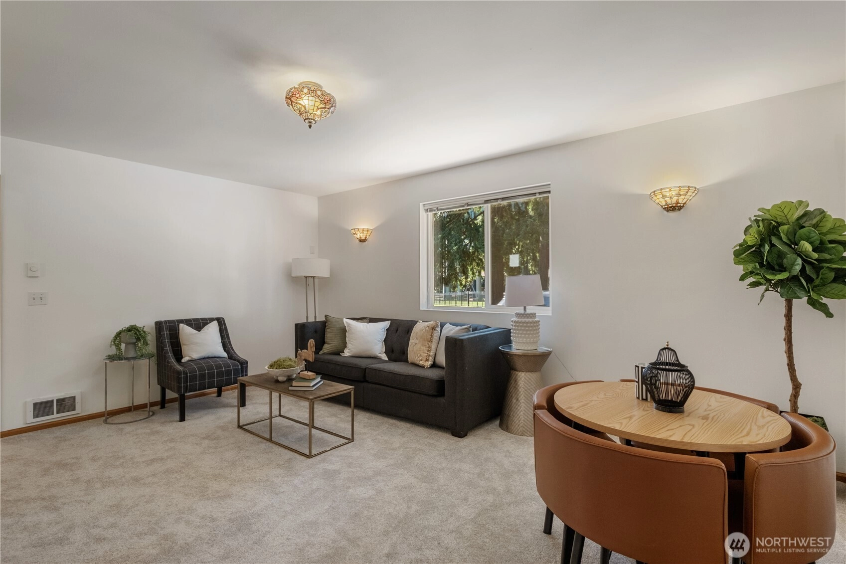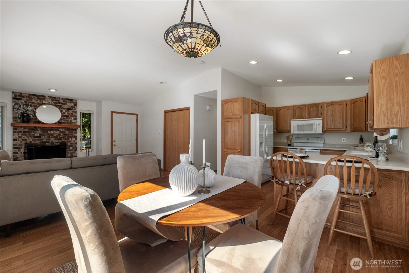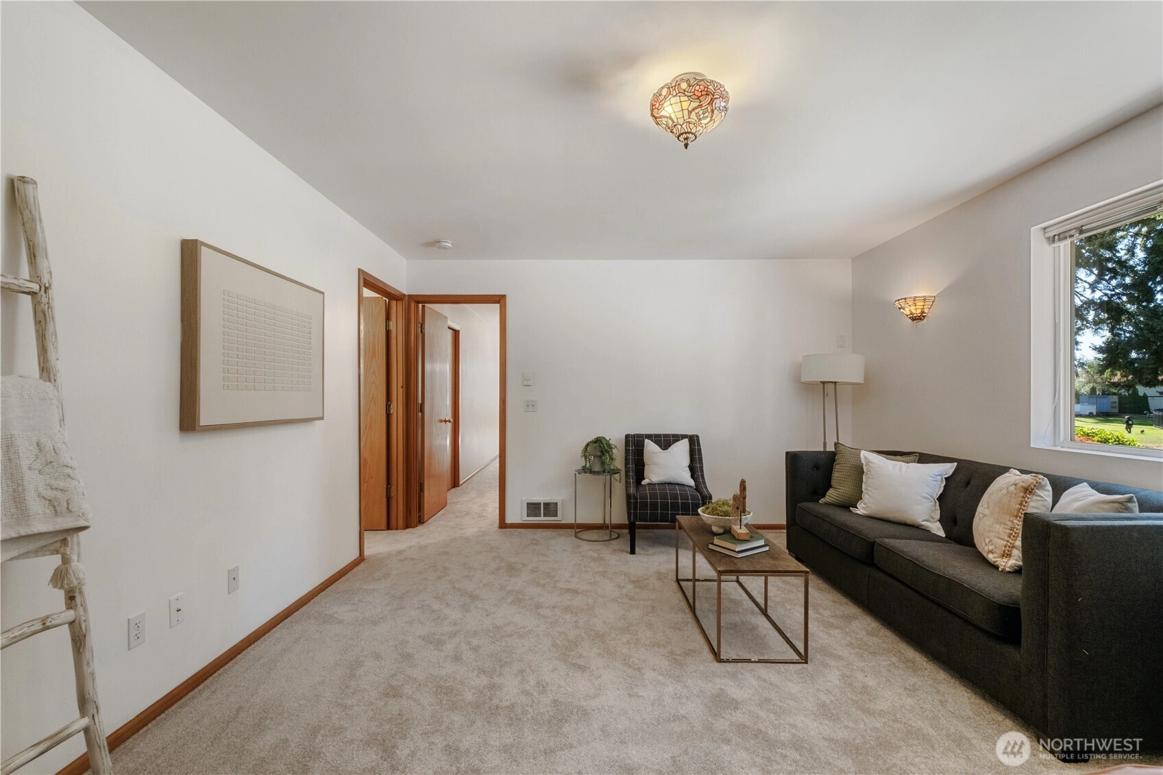 The search is over for that one-of-a-kind rambler in Shoreline! Rare 2-bed, 2 FULL BATH home near the Edmonds city limits! This home has a two-car garage with high ceilings, along with a second driveway w/on-site parking + street parking! The bright living room has a brick wood burning fp, and is perfect for those cozy nights. The large family room at the opposite end of the house is another unique feature. The primary bedroom hosts its own full bath, while the main full bath is available for guests and bedroom 2. The efficient kitchen with adjacent dining area has slider access to a sunny deck and a partially fenced backyard w/manicured landscaping. Close to new light rail transit station, sought-after private schools, freeways, and shops.