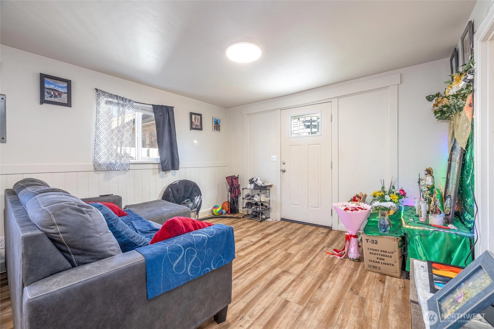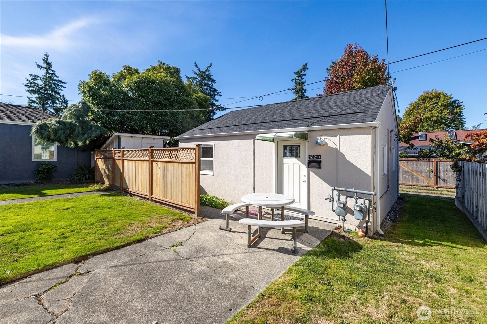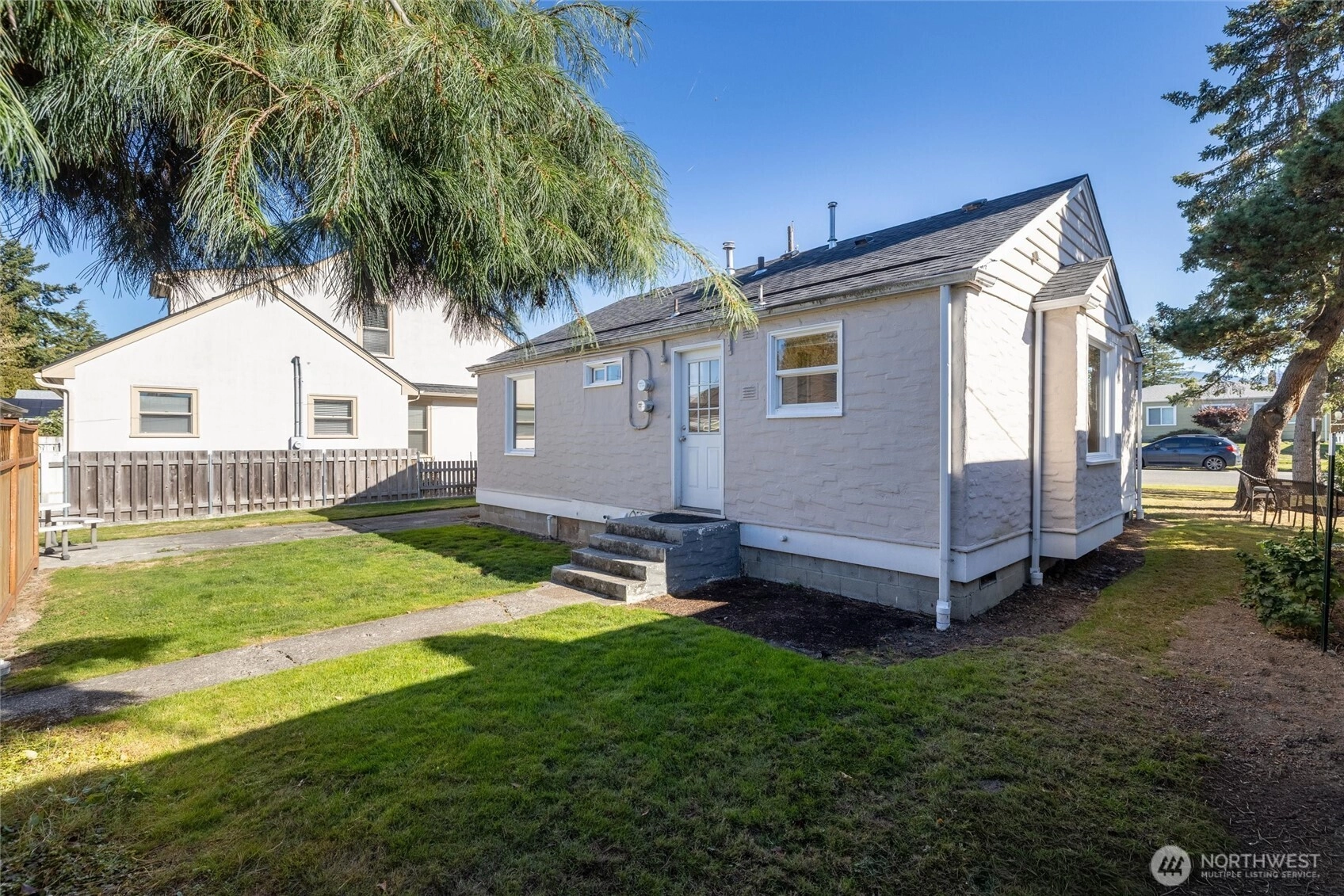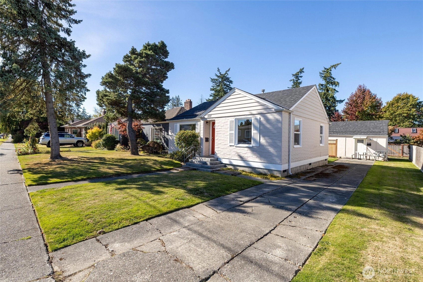 Two homes on one lot! Imagine owning a home to live in with automatic income from the back ADU from day 1. Or maybe you prefer to rent both as a fantastic investment? Sky is the limit here. Main home with 833 sq ft 2 beds 1 bath with spacious living room including picture window. Kitchen with dinette area plus utility room and door to backyard. Updated plumbing, electrical, panel, new door, new roof. Rear ADU 528sq ft 2 bedrooms 1 bath. Updated Kitchen and living room with wood floors throughout and new roof. ADU with 2 car parking off alley. Minutes to I5 and hospital.