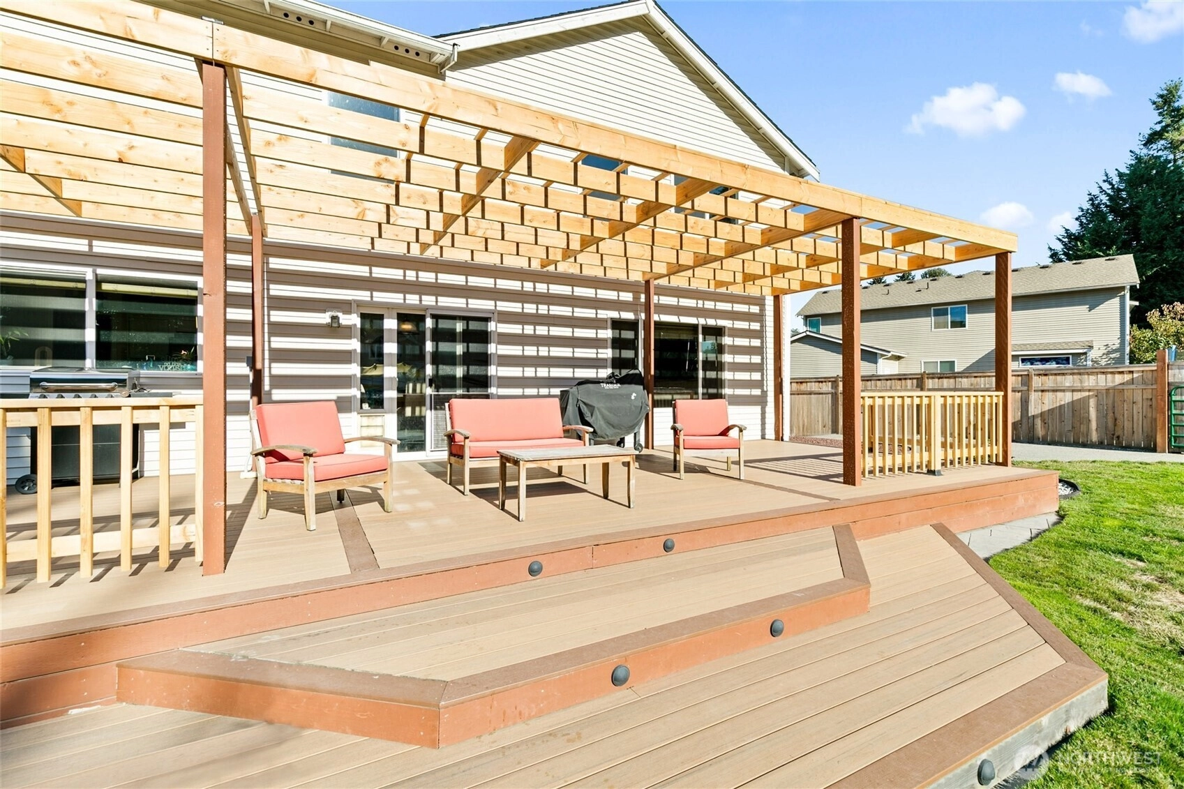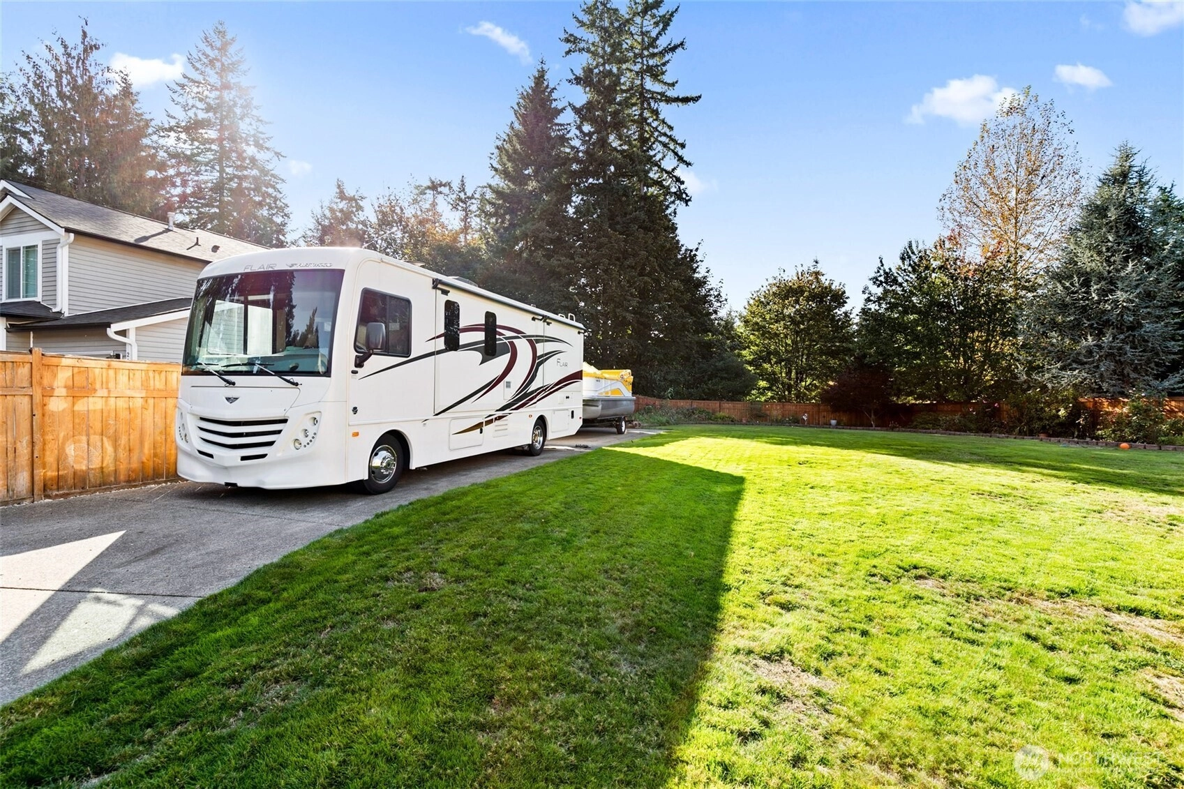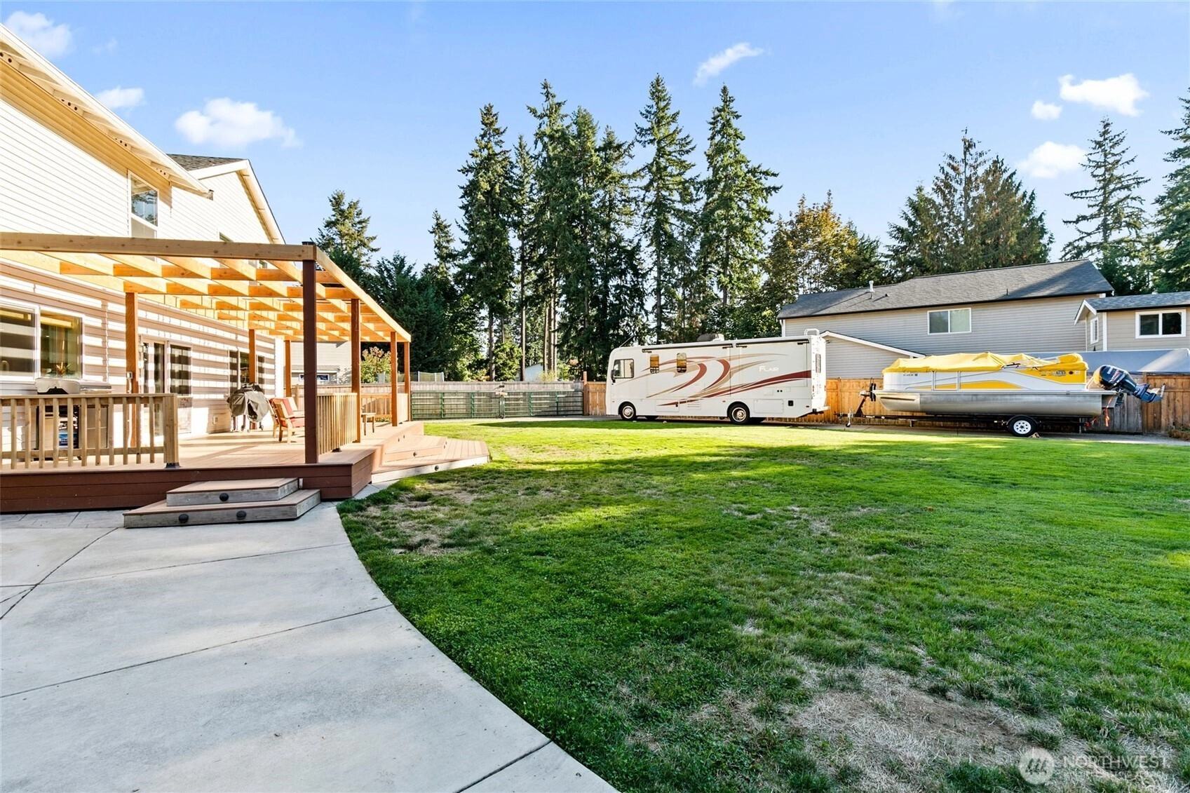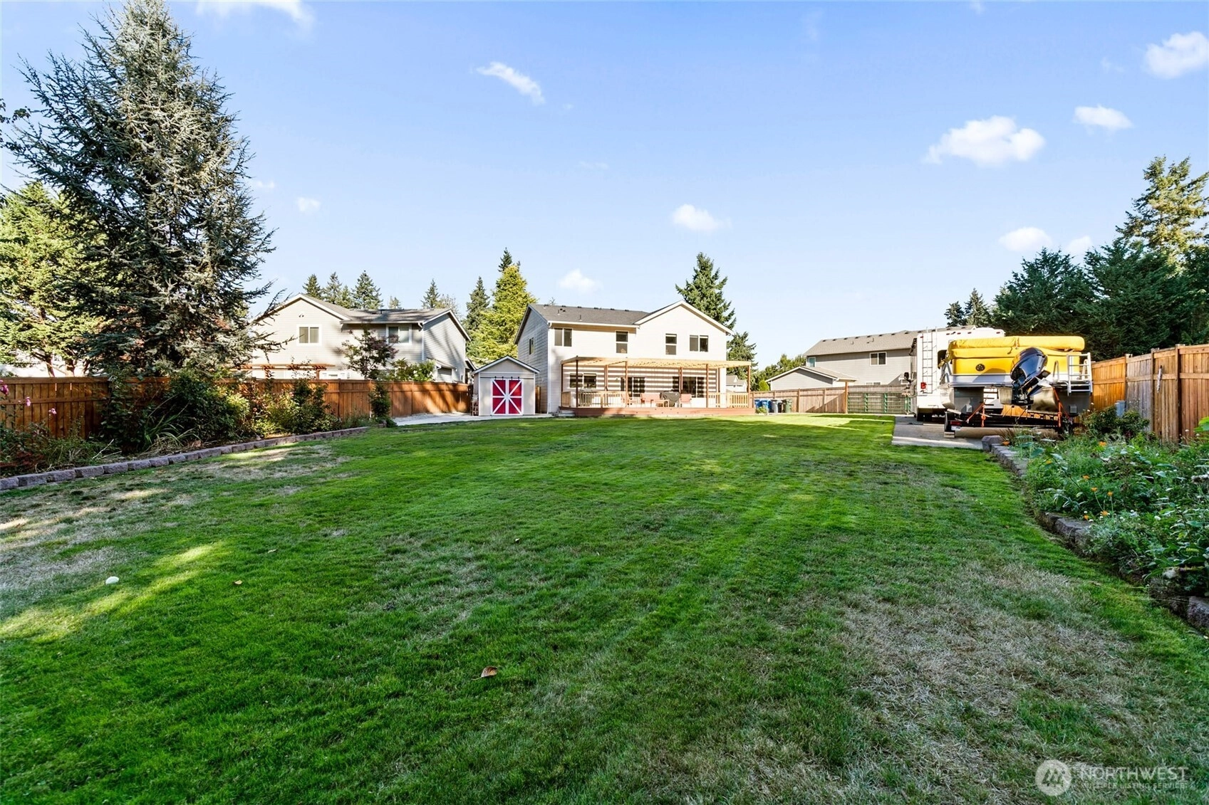 Welcome home to this beautifully maintained 3,000 plus sq ft home on spacious .35 acre Property with RV parking and 50 amp shore power. Fully fenced back yard with a coved trex deck for year around entertaining. Inside you will find Four ample bedrooms plus an office on the main floor. The open concept living area showcases a cozy fireplace with floating shelves and flows seamlessly into the Kitchen with island, walk in pantry. Primary suite with Sitting/Library space and 5 piece bath. Huge Bonus room upstairs and three more bedrooms. 3 car garage and A/C and in ground sprinkler!