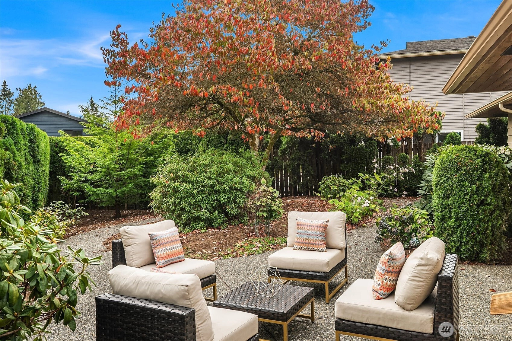 There’s an easy rhythm to life here – single-level living wrapped in light, calm, and connection. Large windows frame lush, private gardens, while gas fireplaces anchor spaces made for gathering. Refinished hardwoods, fresh paint, and new appliances bring timeless comfort. Living here means strolling to neighborhood parks, biking the Burke-Gilman Trail, or hopping on the Northgate light rail for fast access to the airport and downtown. The Community Center, school track, and neighborhood gatherings give this place a rooted, friendly feel. Tucked into a peaceful corner of Meadowbrook, with quiet streets, mature trees, and a community where people know each other. If you want a home you love and a neighborhood that loves you back, this is it.