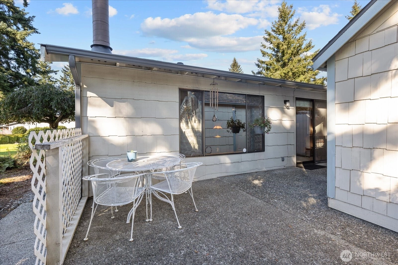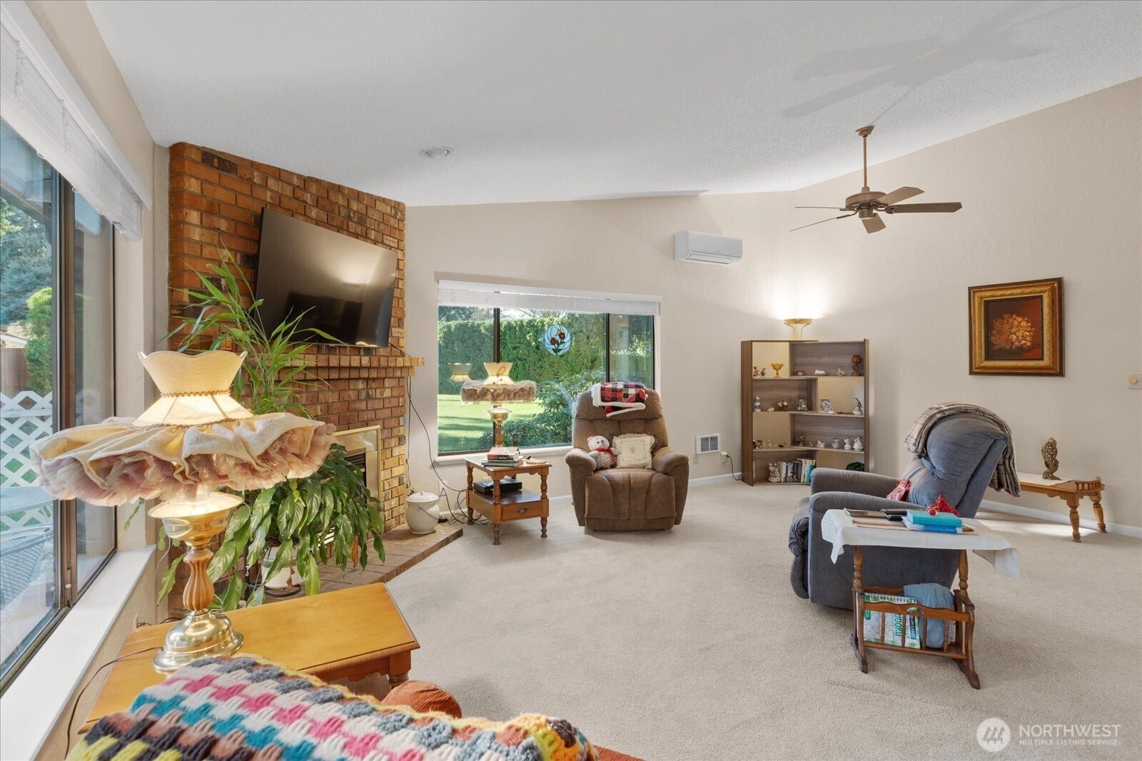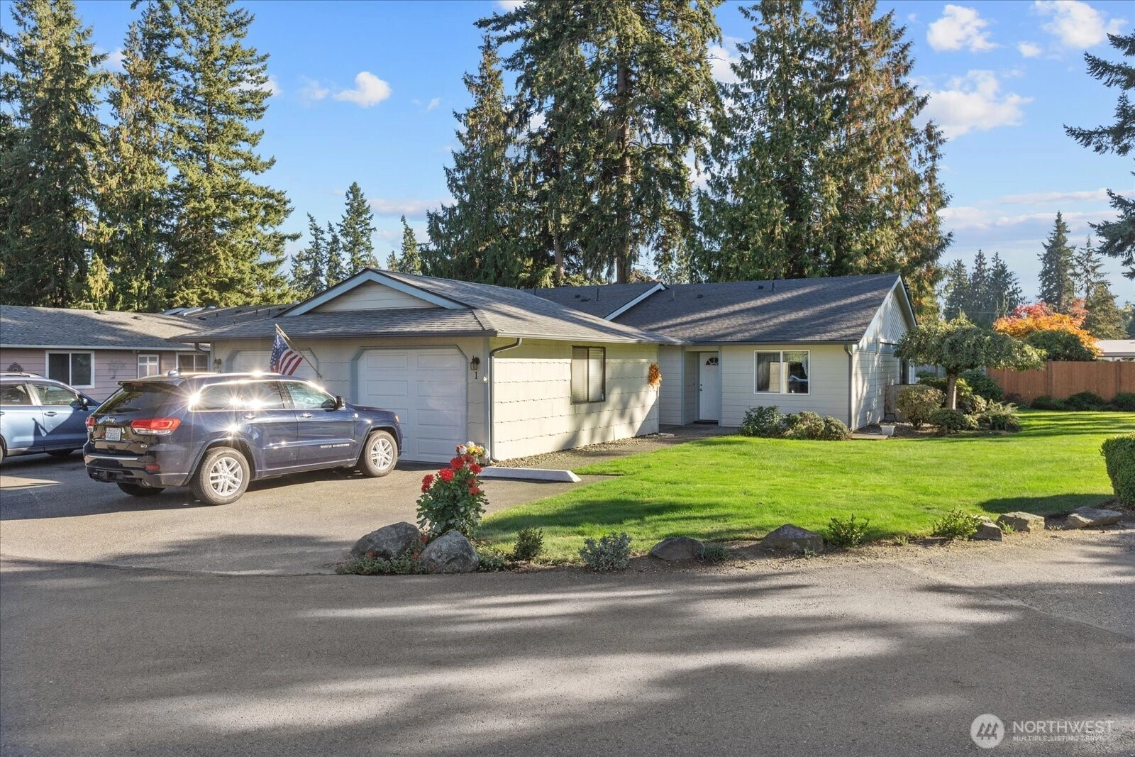 Welcome to the very desirable Wicklow Condominiums with a clubhouse and outdoor pool! This charming 2-bedroom end-unit rambler offers easy one-level living with no stairs. The spacious living room features vaulted ceilings, a gas/propane heating fireplace, and plenty of natural light. The open dining area flows to a private back patio with a storage shed—perfect for relaxing or entertaining. The large primary suite includes a walk-in closet and private ¾ bath. Recent mini-split adds year-round comfort. Includes a 1-car garage, 2 parking spots, and convenient access to shopping and freeways.