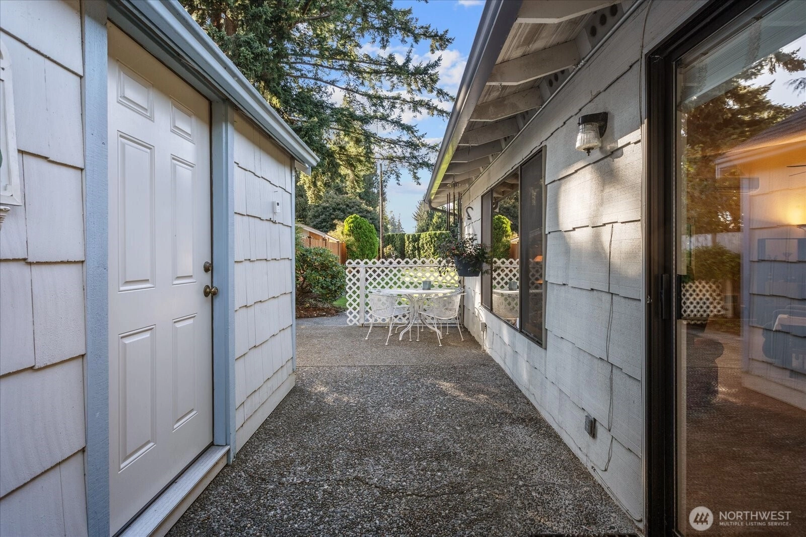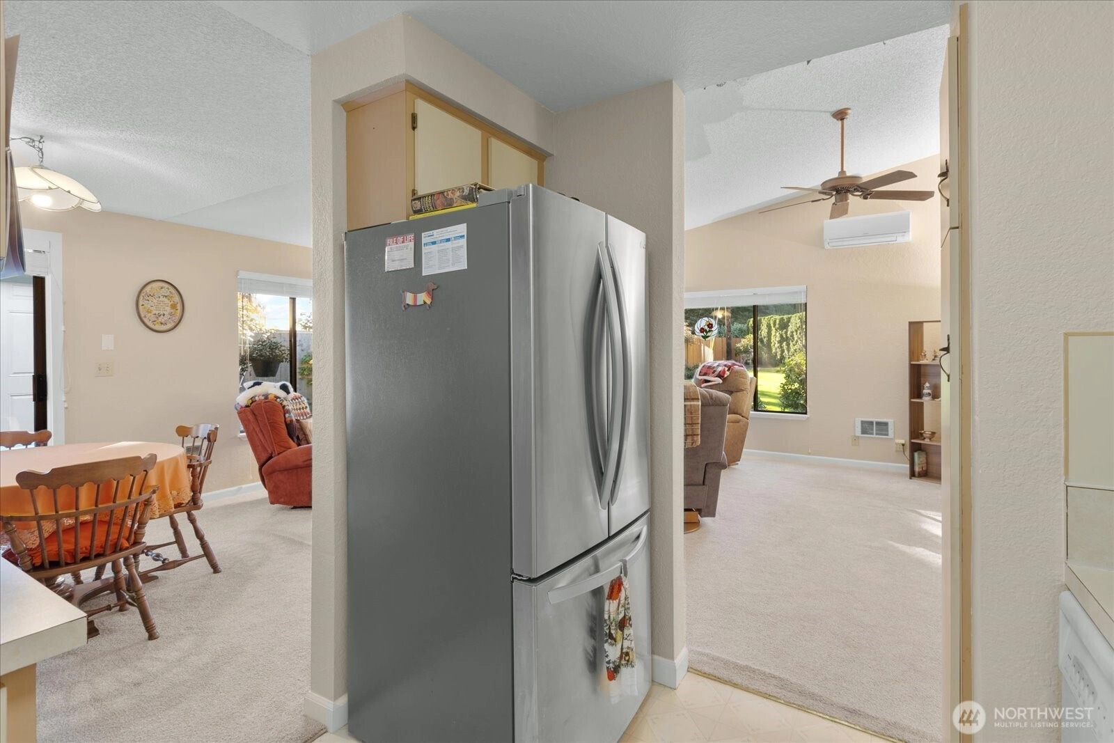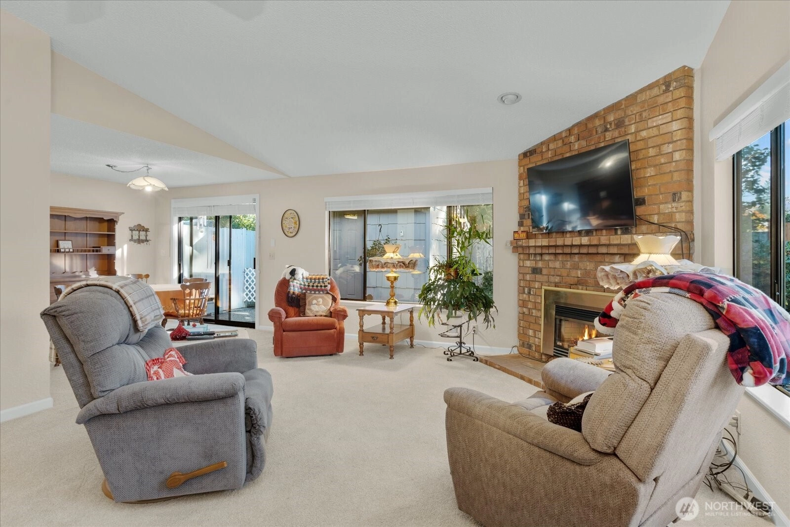 Welcome to the very desirable Wicklow Condominiums with a clubhouse and outdoor pool! This charming 2-bedroom end-unit rambler offers easy one-level living with no stairs. The spacious living room features vaulted ceilings, a gas/propane heating fireplace, and plenty of natural light. The open dining area flows to a private back patio with a storage shed—perfect for relaxing or entertaining. The large primary suite includes a walk-in closet and private ¾ bath. Recent mini-split adds year-round comfort. Includes a 1-car garage, 2 parking spots, and convenient access to shopping and freeways.