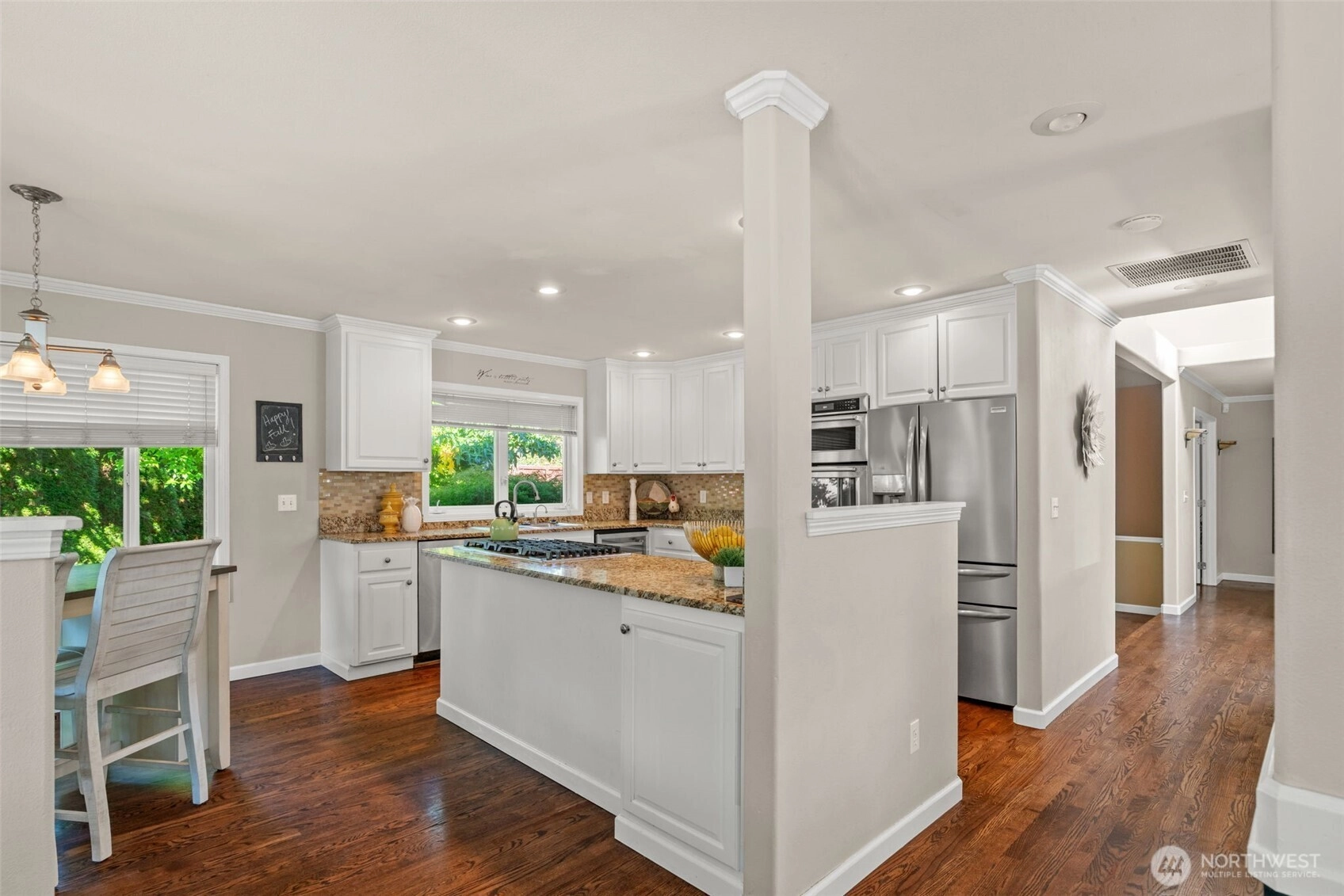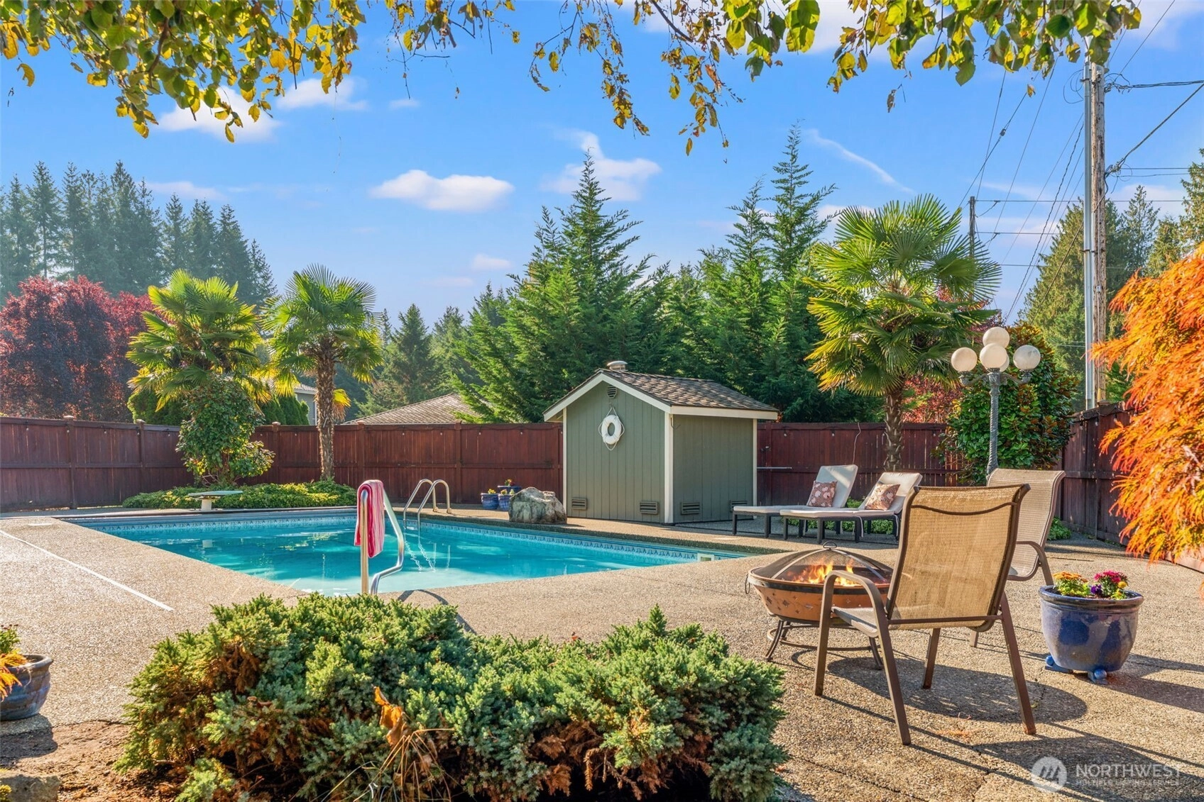 THIS is the home you have been waiting for! Turn-key, sought-after rambler on a lush corner lot in the highly coveted enclave of Highland Grove in Duvall! Upon entering, you will be swept off your feet w/all of the upgrades! Vaulted ceilings, dramatic espresso hardwoods soft paint colors and abundant windows for streaming natural light throughout! Kitchen has been upgraded with new s/s appliances, double ovens and wine fridge. Nice breakfast nook overlooking the backyard. Relaxing primary suite with French doors to the backyard oasis. Huge back bedroom could be turned into 4th bedroom. In-ground pool is great for summer fun! Gardener’s paradise complete w/roses & blueberries. Quiet street w/community park is a bonus.