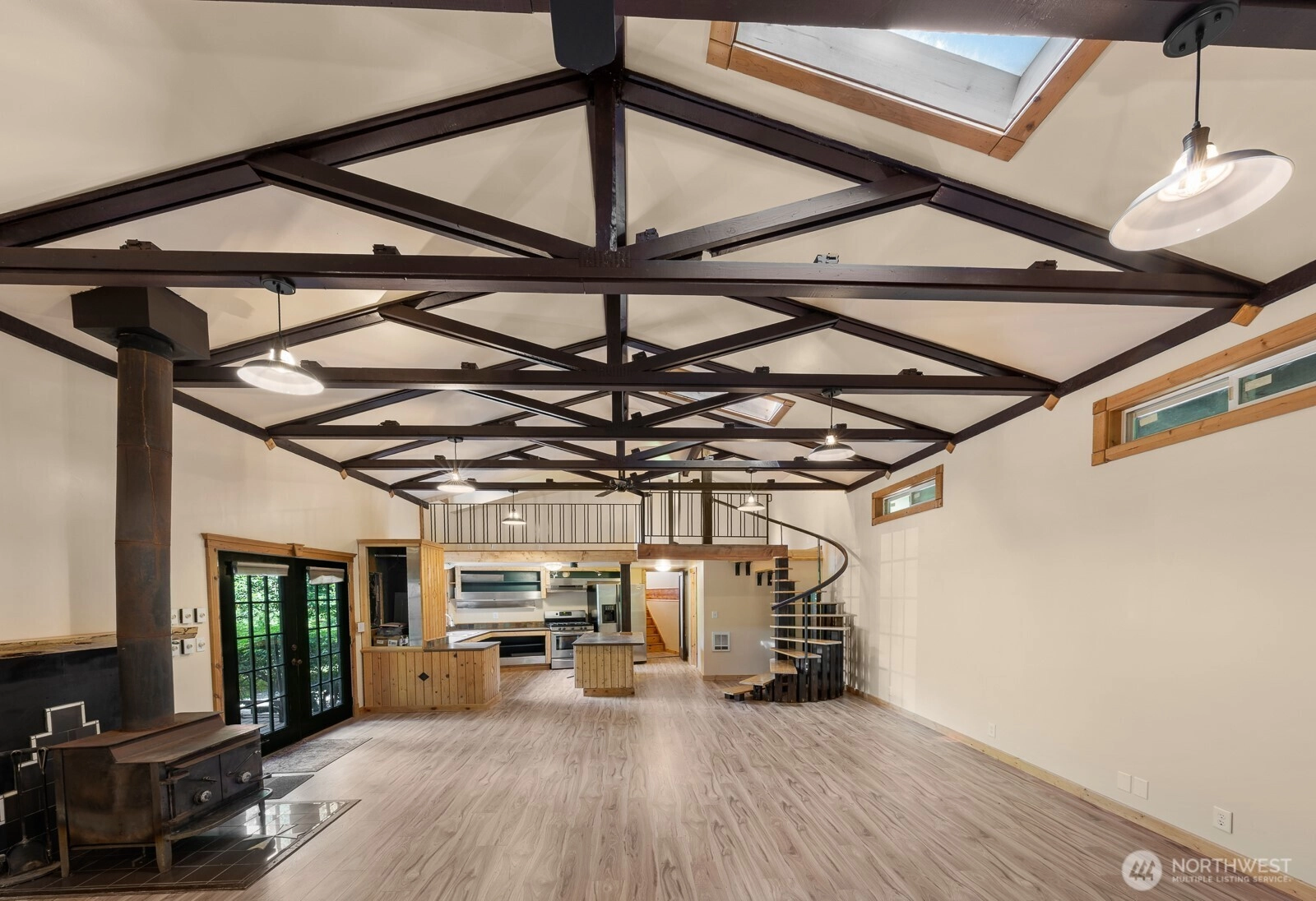 This one-of-a-kind property abuts the Mt. Si Trail and is truly enchanting! Each of the two dwellings are distinct in style. The first is a Northwest contemporary design with vaulted architectural rafters, built for easy living. The second is larger with high timber ceilings and lovely mountain views. From the large upper terrace listen to the gentle sounds of your waterfall, watch hummingbirds dance through the magical gardens while eagles soar above. The daylight basement has a greenhouse annex running the full length. It has grapevines and is great for longer season gardening. There's a finished geodesic dome for meditation, creativity, or whatever is your bliss. Fruit trees, varietal gardens, meadow, and pond add to the perfection.