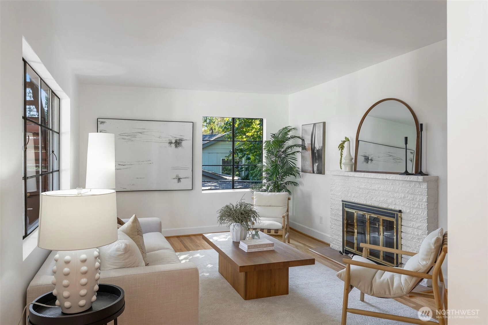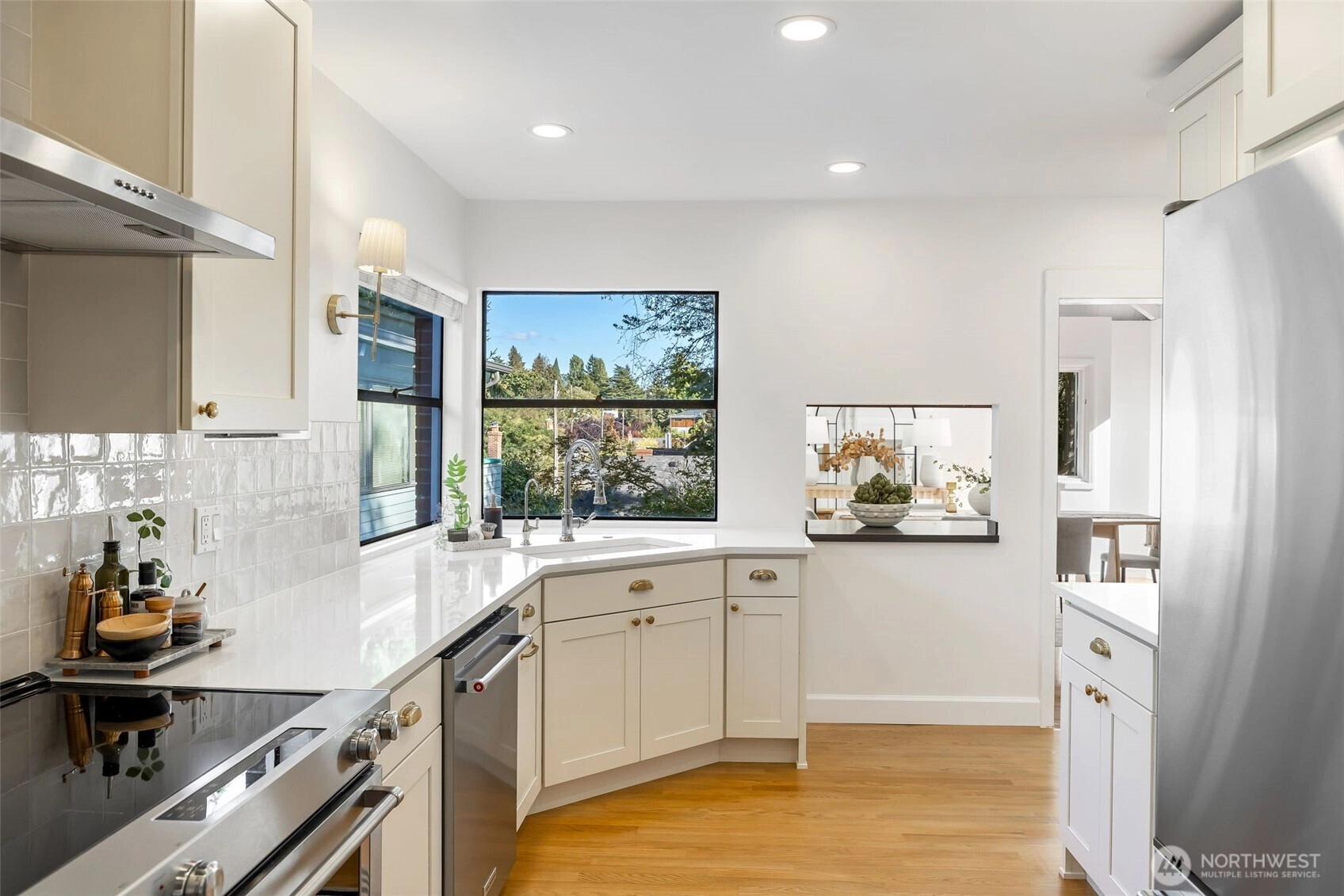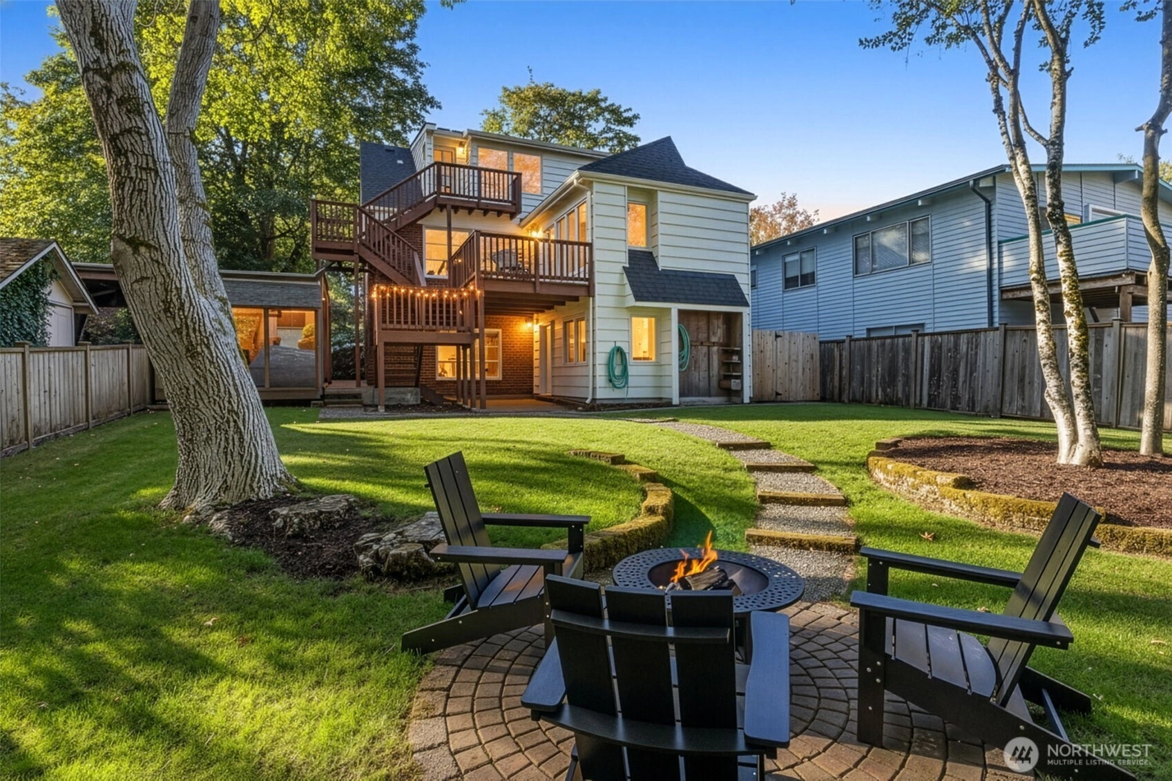 Welcome to this beautifully updated 4-bed, 3-bath home in prime Bryant. The main level features a fully remodeled kitchen and bathroom, combining modern finishes with timeless style. The dining room’s vaulted ceilings create an elegant setting for entertaining and hosting memorable dinner parties. Natural light fills the home, enhancing its warm and inviting atmosphere. The private primary suite offers a peaceful retreat, while the spacious lower level provides versatile space to relax, play, or entertain. Outside, the expansive backyard feels magical—lush, private, and reminiscent of a storybook garden. Perfectly located steps from Met Market, U Village, UW, and Seattle Children’s, within the highly rated Bryant school district.