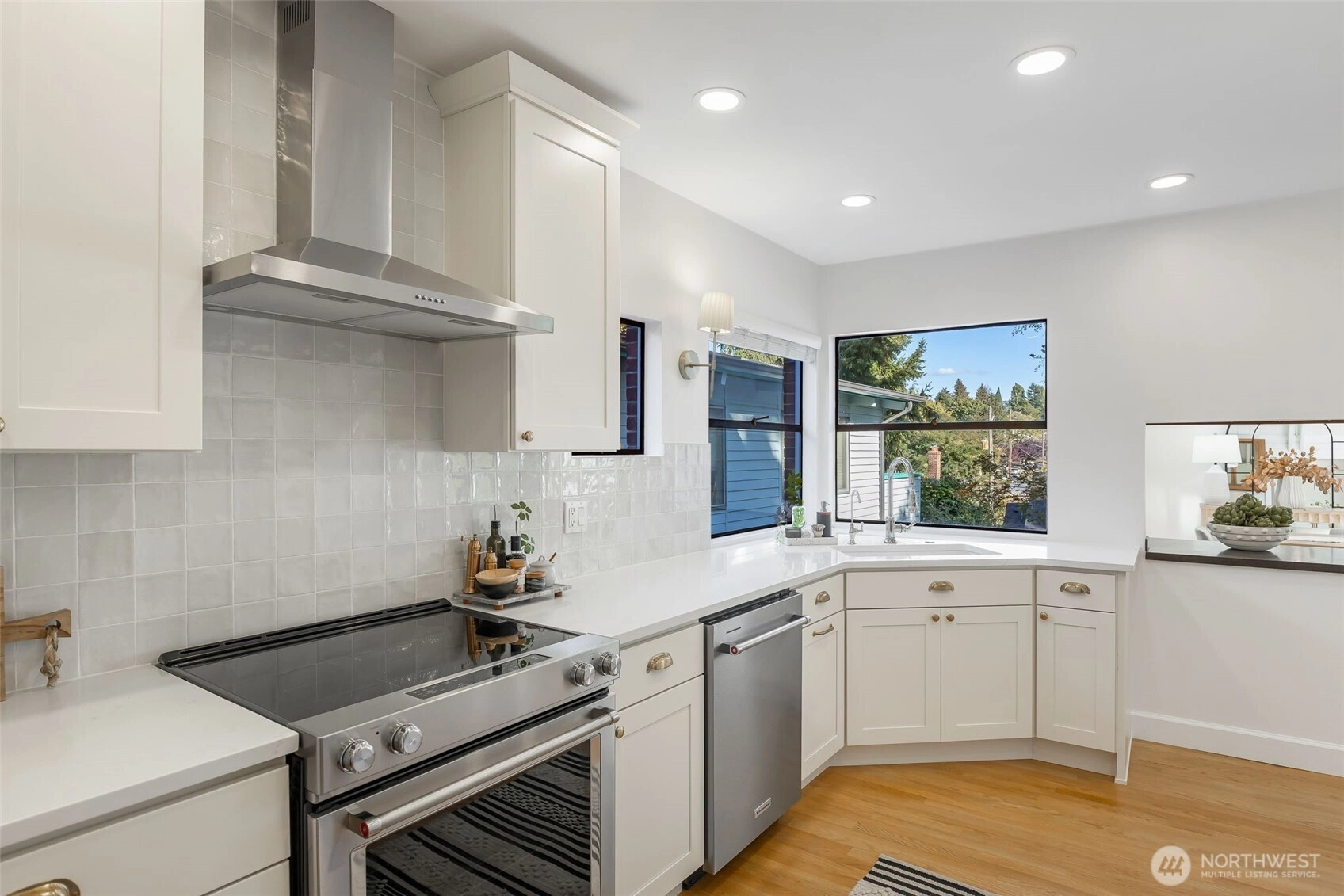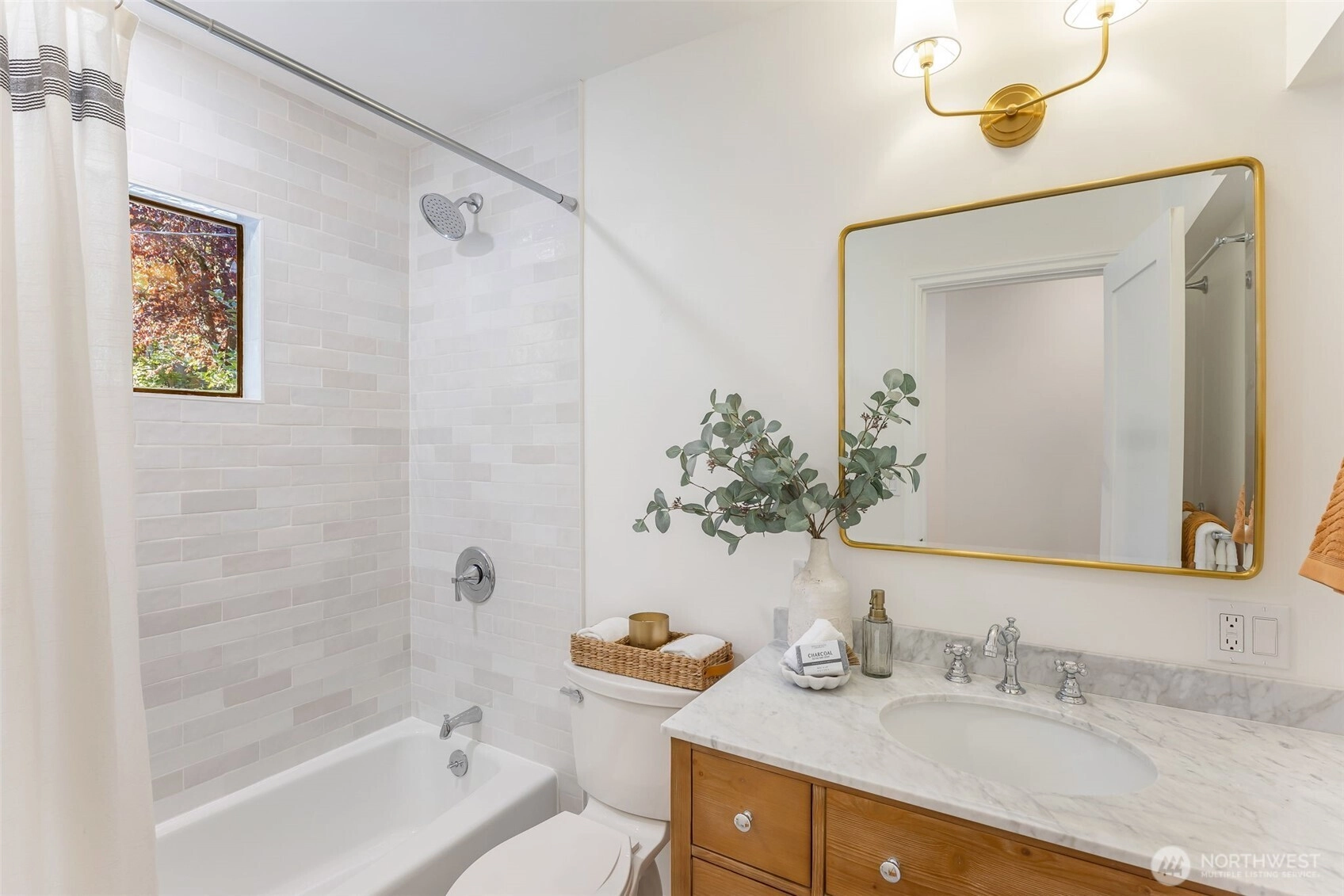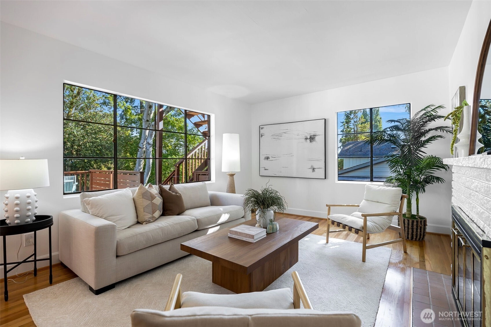 Welcome to this beautifully updated 4-bed, 3-bath home in prime Bryant. The main level features a fully remodeled kitchen and bathroom, combining modern finishes with timeless style. The dining room’s vaulted ceilings create an elegant setting for entertaining and hosting memorable dinner parties. Natural light fills the home, enhancing its warm and inviting atmosphere. The private primary suite offers a peaceful retreat, while the spacious lower level provides versatile space to relax, play, or entertain. Outside, the expansive backyard feels magical—lush, private, and reminiscent of a storybook garden. Perfectly located steps from Met Market, U Village, UW, and Seattle Children’s, within the highly rated Bryant school district.