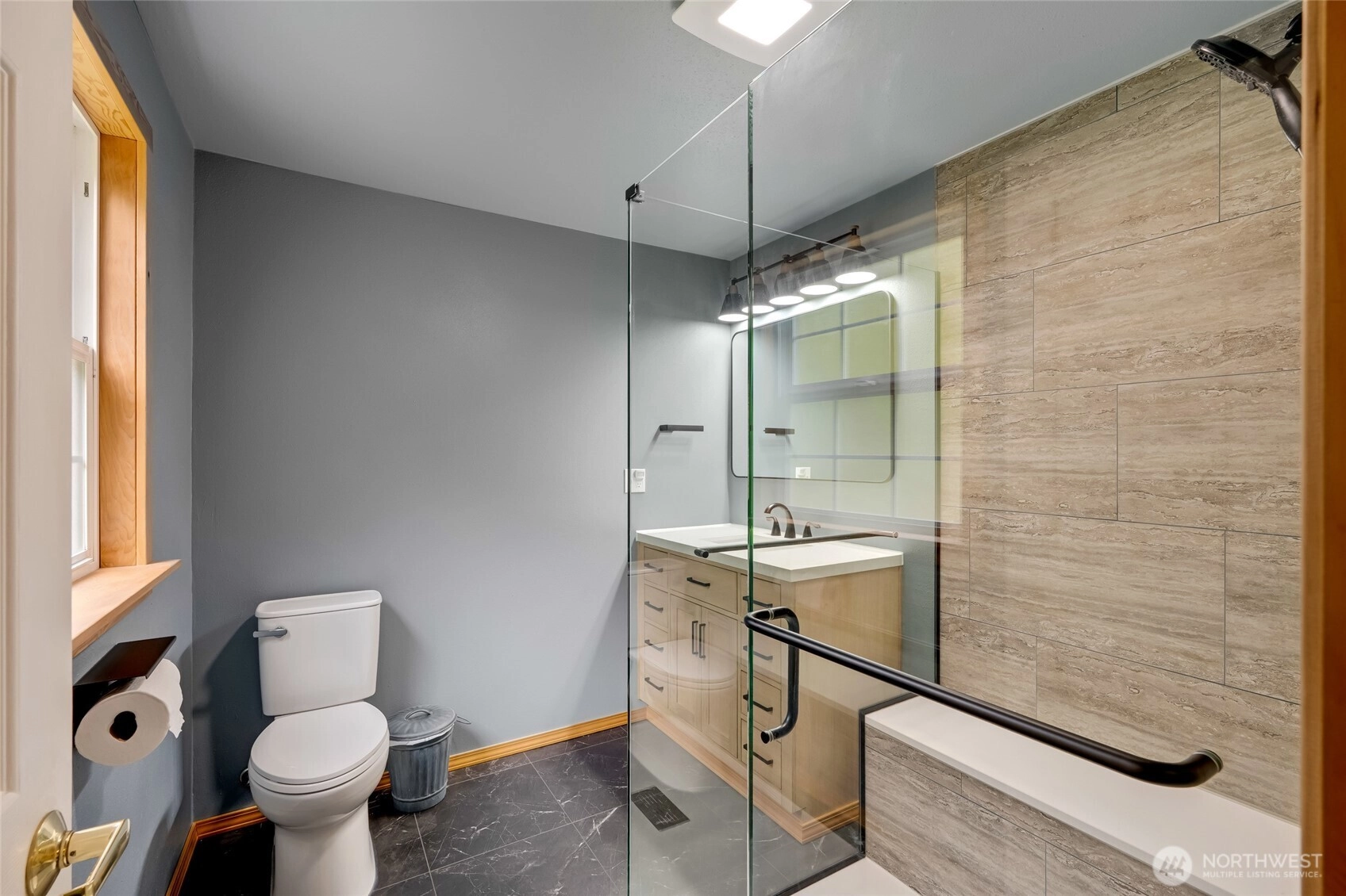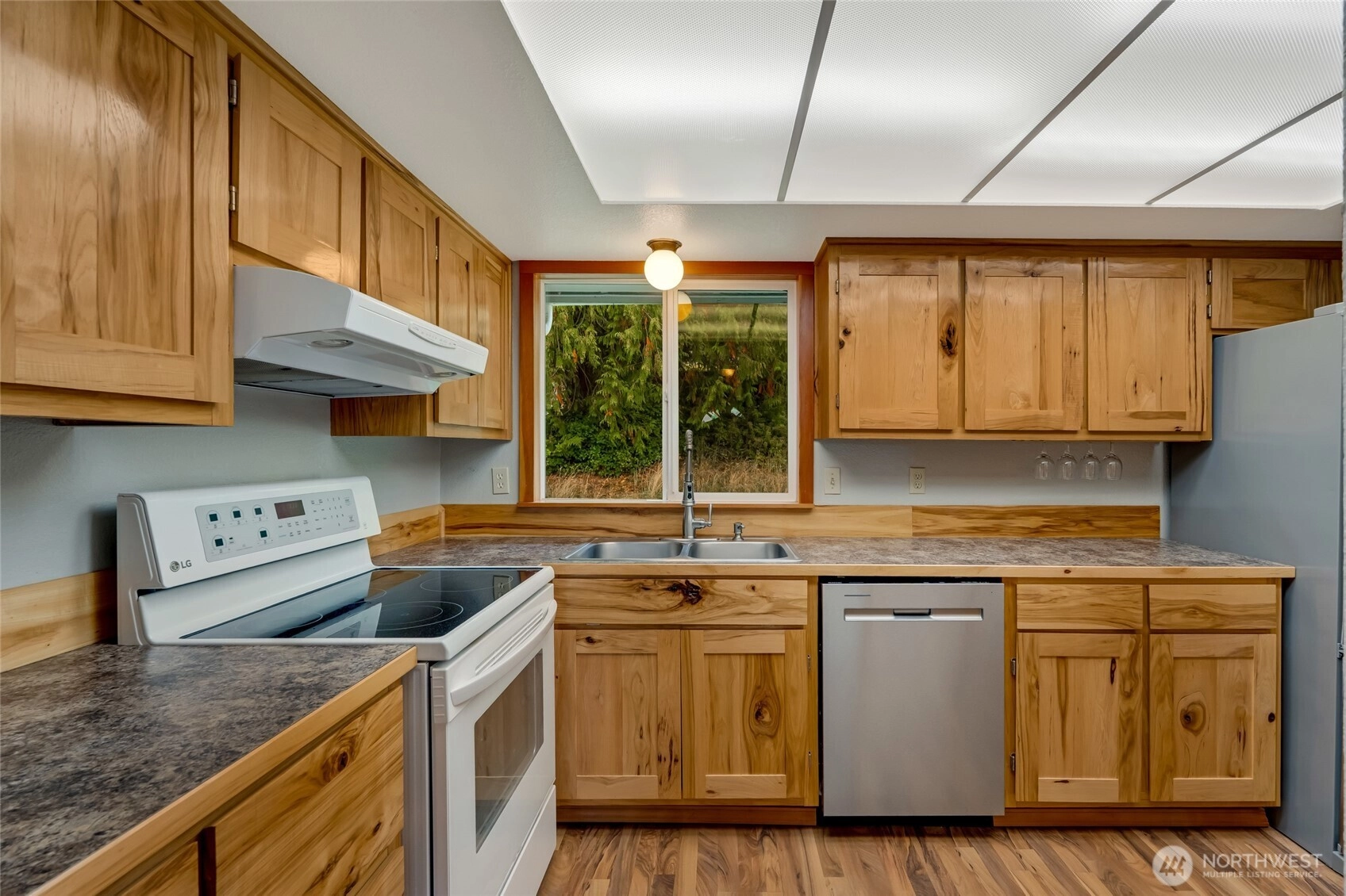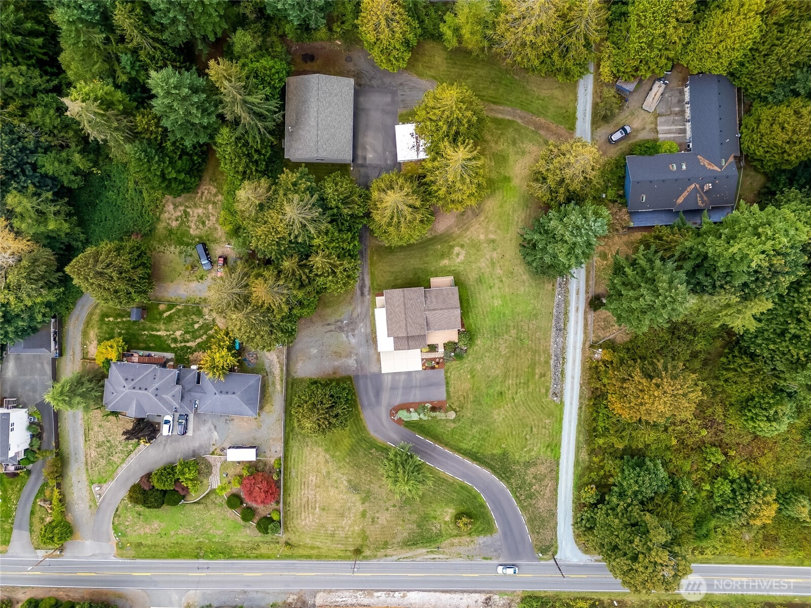 The view will draw you in, but the upgrades, shop, and acreage will make you stay! From the paved driveway to the sparkling lake view, this home feels like a getaway every day. Inside, hardwood floors, hickory cabinetry, a custom wine rack, and French doors create a warm, inviting space. Recent updates include a remodeled primary bath, 2025 roof with transferable warranty, PEX plumbing, and serviced septic for peace of mind. The shop offers water, ethernet, 100-amp service, 50-amp welder outlet, and air compressor hookup. This move-in-ready Lake Goodwin retreat is ready to live, work, and play!