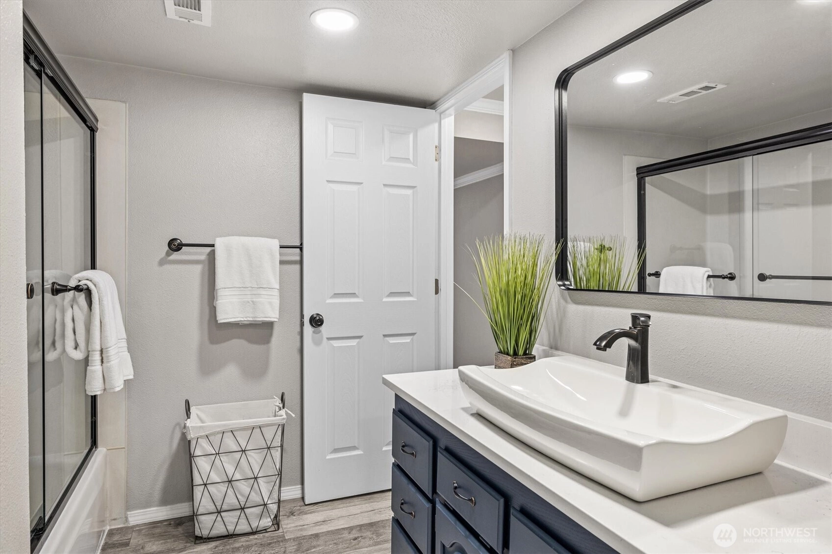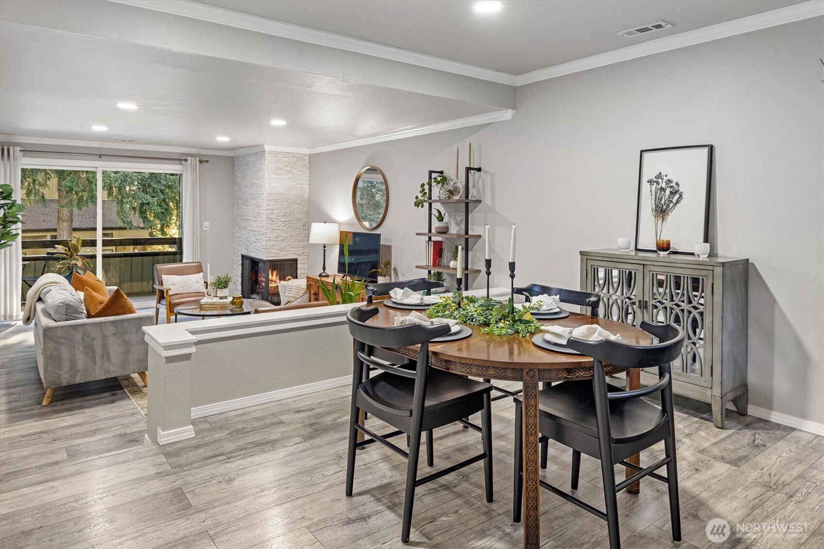Amazing Location! Fully remodeled Yarrowood condo blends modern style with convenience! This open floorplan, 2 bed/1 bath home features a sleek kitchen with quartz counters, newer stainless appliances, and abundant cabinetry. The spacious living room offers a stylish tiled fireplace and slider to a private deck with storage. Oversized primary suite, updated full bath, formal dining, spacious pantry, and in-unit laundry. Everything is updated- flooring, carpet, paint, LED lighting & more. Large west facing patio for entertaining. Community amenities: pool, clubhouse, tennis & basketball courts. Steps to Cross Kirkland Corridor Trail, easy access to 520, 405, & Park & Ride.Includes 2 assigned parking spaces. No rental cap- great investment!