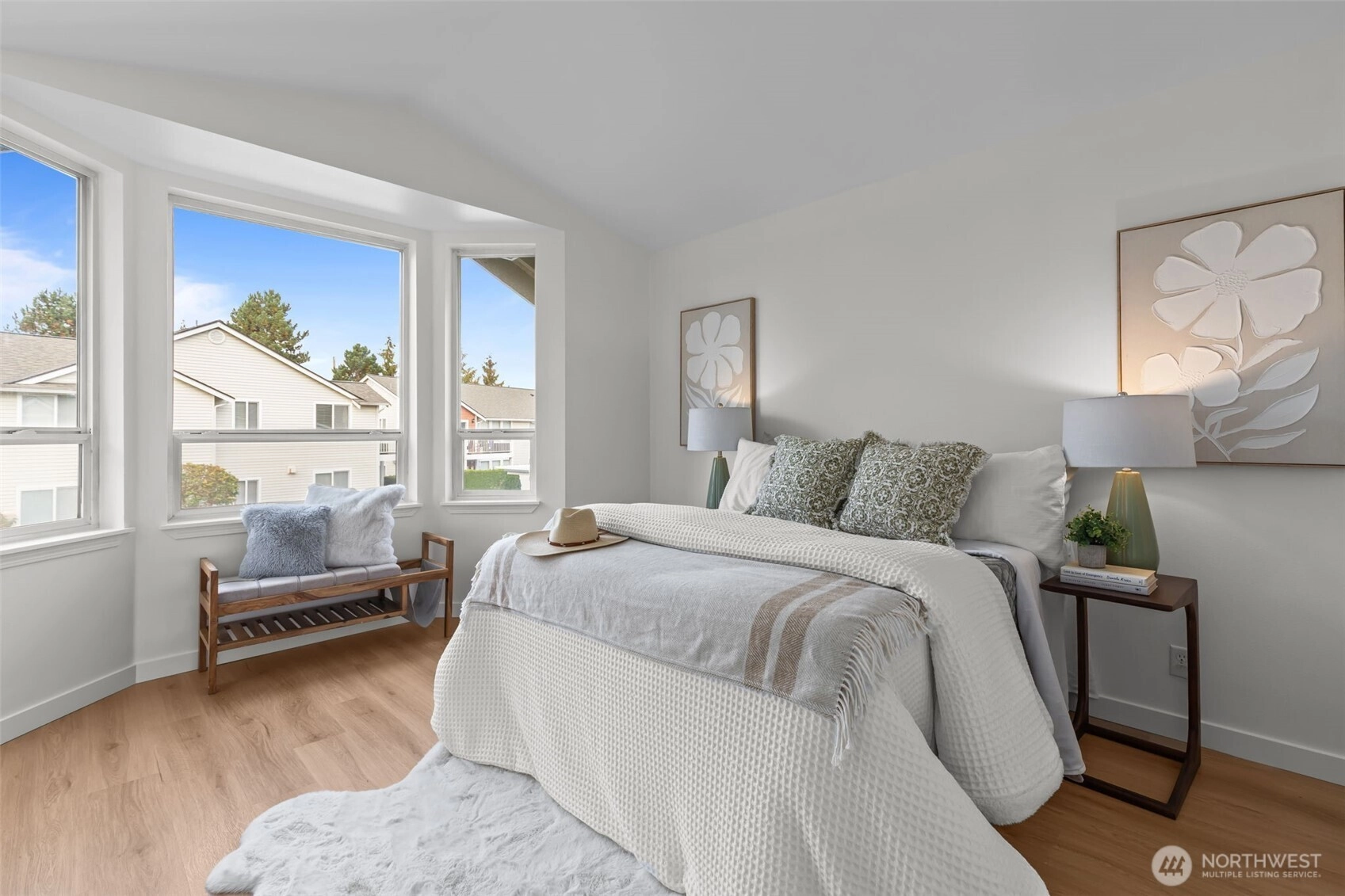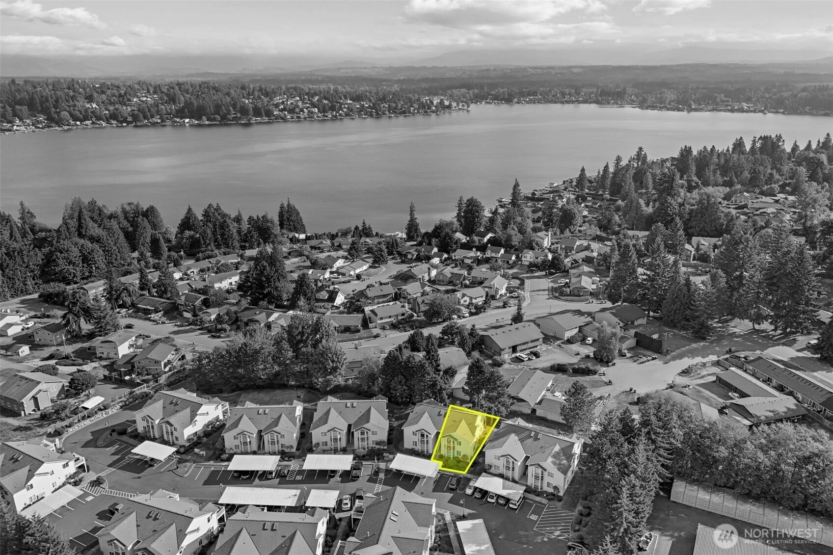 Discover Steven’s View — where lake breezes meet mountain vistas! This top-floor corner unit is the gem of the community, fully refreshed with luxury finishes: fresh paint, premium LVP flooring, quartz countertops, updated baths, and a brand-new oven and stove. Natural light fills the open layout with vaulted ceilings and a cozy gas fireplace. Enjoy mountain views from your private balcony and unwind in the spacious primary suite with vaulted ceilings, walk-in closet, and lush green surroundings. Located just minutes from parks, beaches, trails, shops, restaurants, schools, and transit — everything you need is right here at Steven’s View.