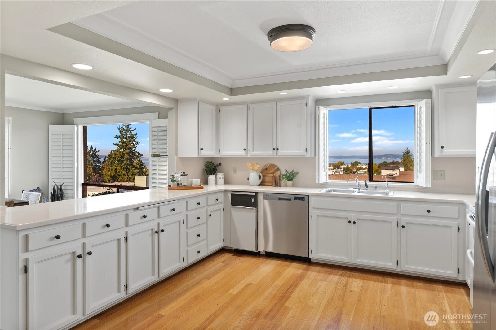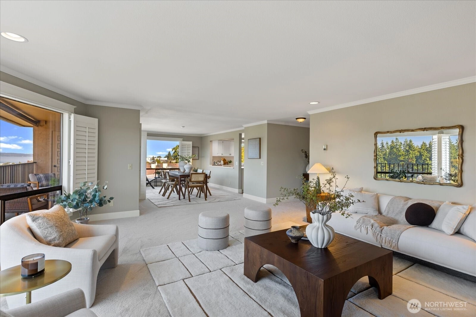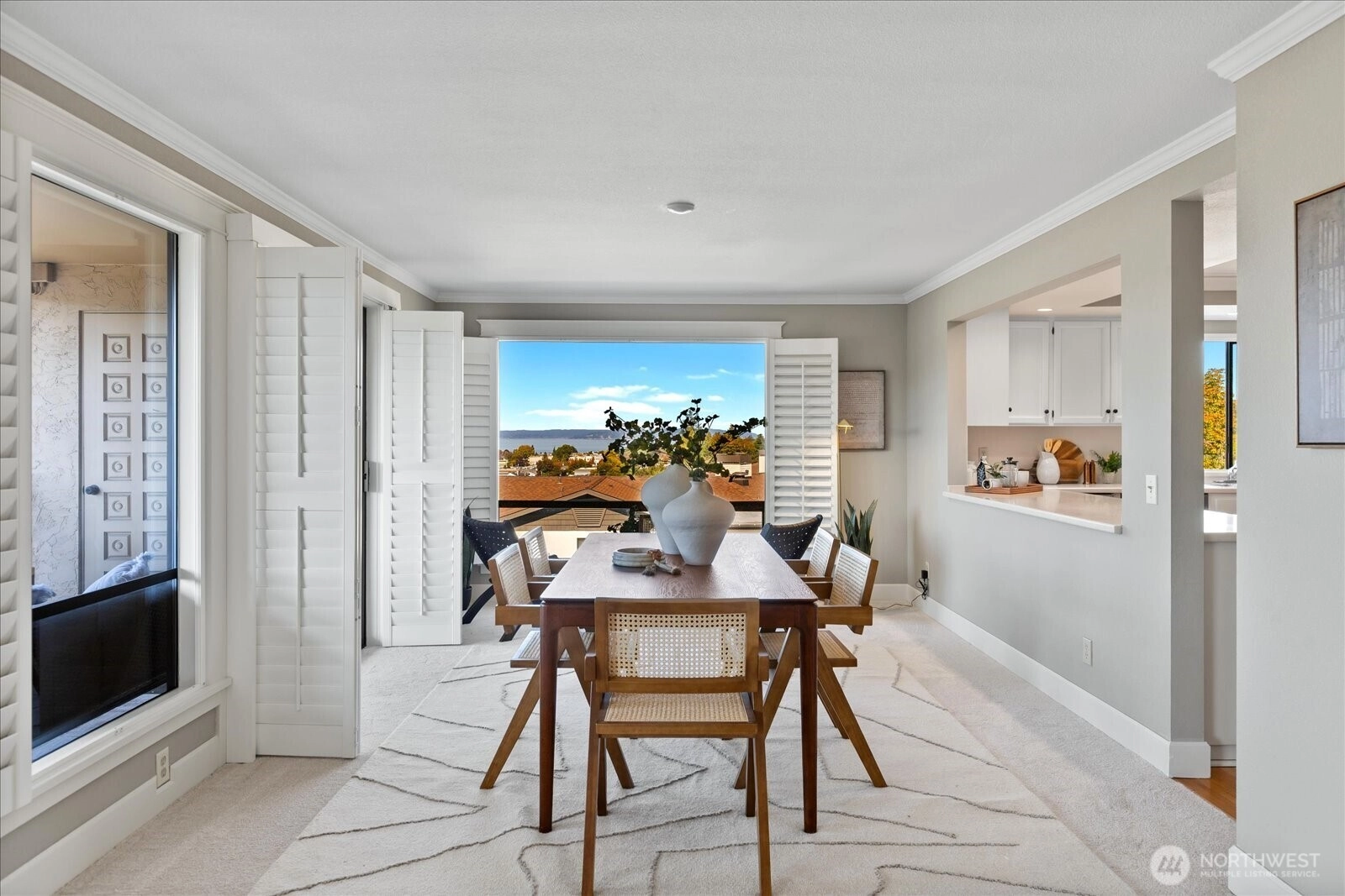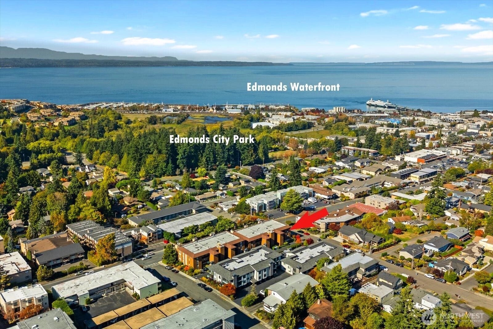 Enjoy the ultimate in Edmonds living from this sprawling top floor condo w/ stunning northly & westerly water & mtn views including Mt Baker! No power lines to distract! Hop the Sounder train or bus for a peaceful ride to Seattle or stroll easily to multiple eateries & boutiques. A beachfront community like no other! Here's the next chapter you've been contemplating; Saturday markets, art walk, festive events & activities all year round. Or, simply settle in & savor the changing waterscape day in & day out...you will never tire watching storms roll in & shipping lane activity from your large, covered deck or inside in front of the fire. 0 stairs access, primary suite w/ attached bath & massive walk-in closet. 2 covered pkg & 2 storage rooms