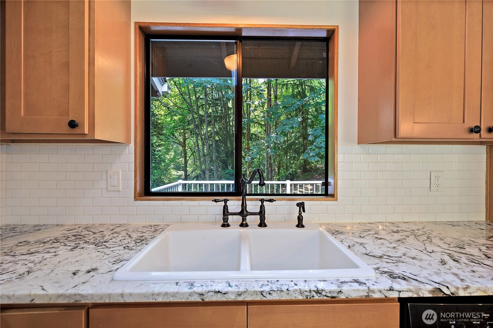 Motivated seller! Nestled in a peaceful, tree-lined neighborhood just minutes from vibrant downtown Issaquah, this beautifully updated 3-bedroom home offers privacy, nature, and modern style. Set on a secluded 3/4-acre lot with a creek below, enjoy outdoor living on the expansive deck. The upgraded kitchen boasts granite counters, stainless steel appliances, an island, and refreshed cabinetry. Throughout, solid oak wood flooring, fresh paint, stylish fixtures, and a renovated primary bath create a warm, move-in-ready space. This home is the perfect blend of tranquil charm and everyday convenience.