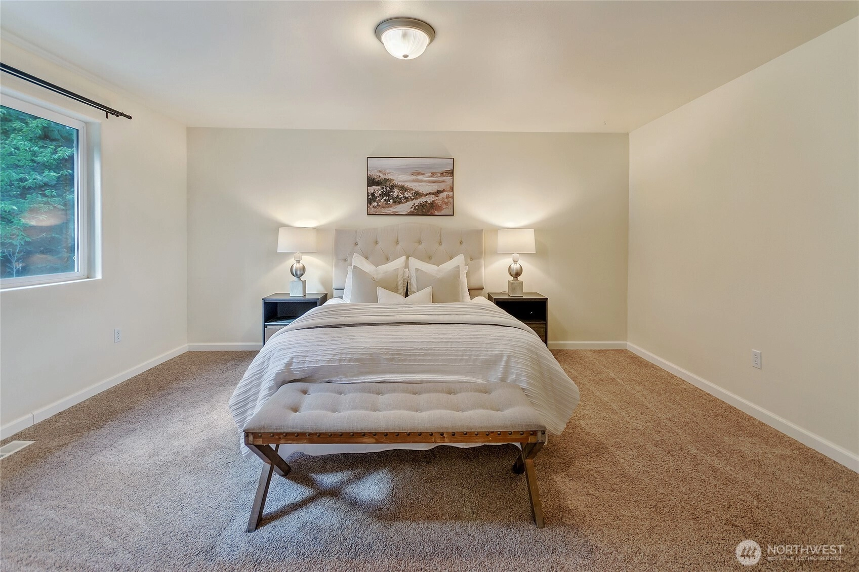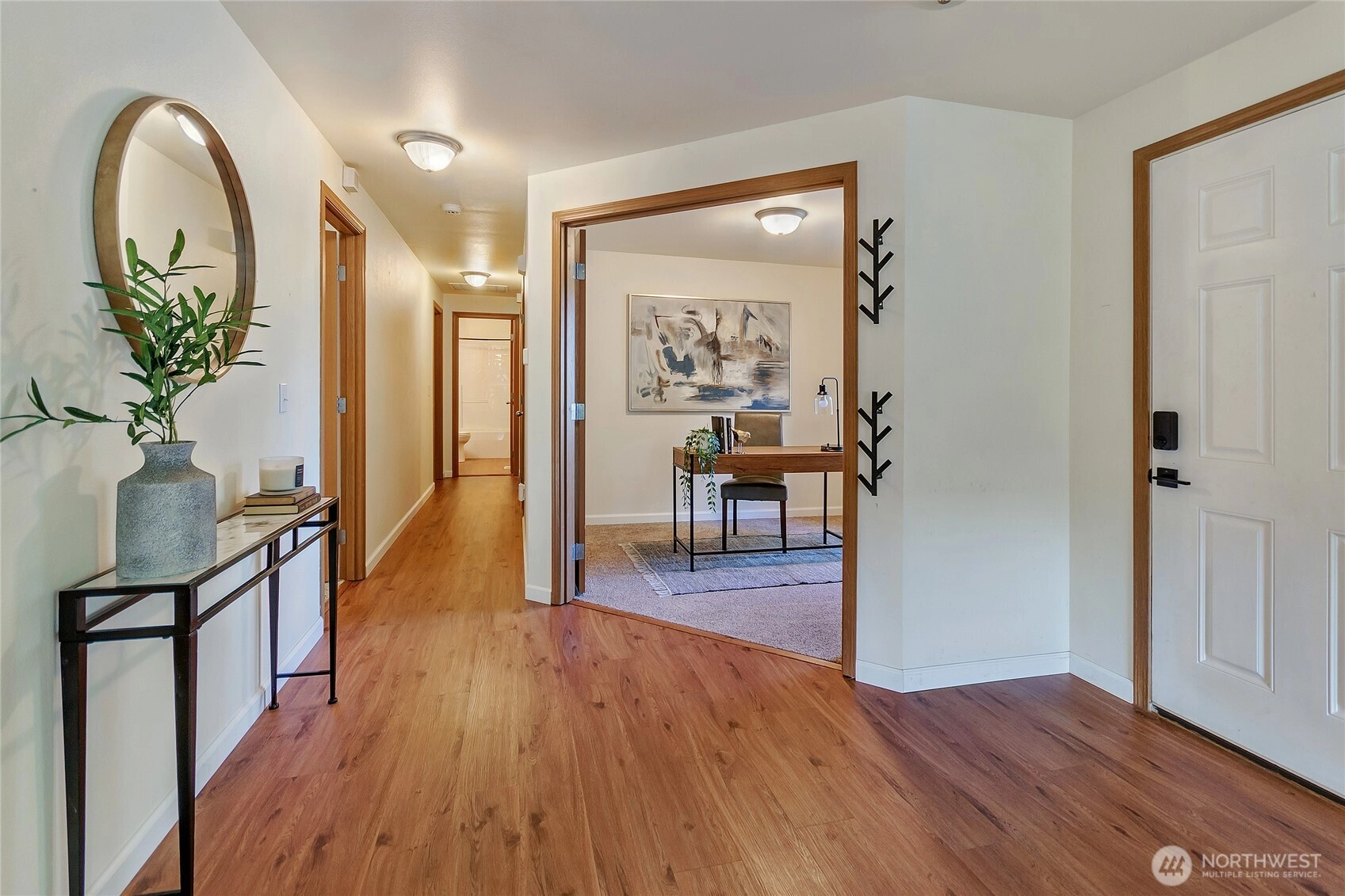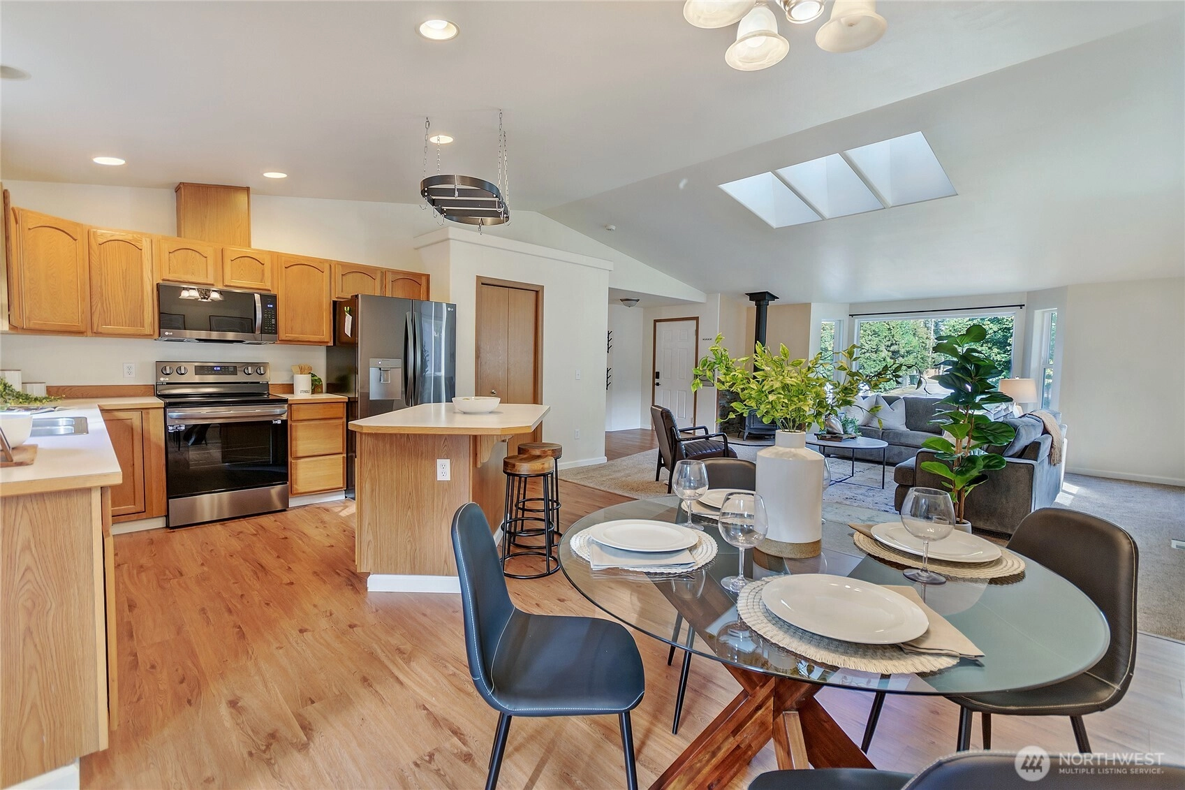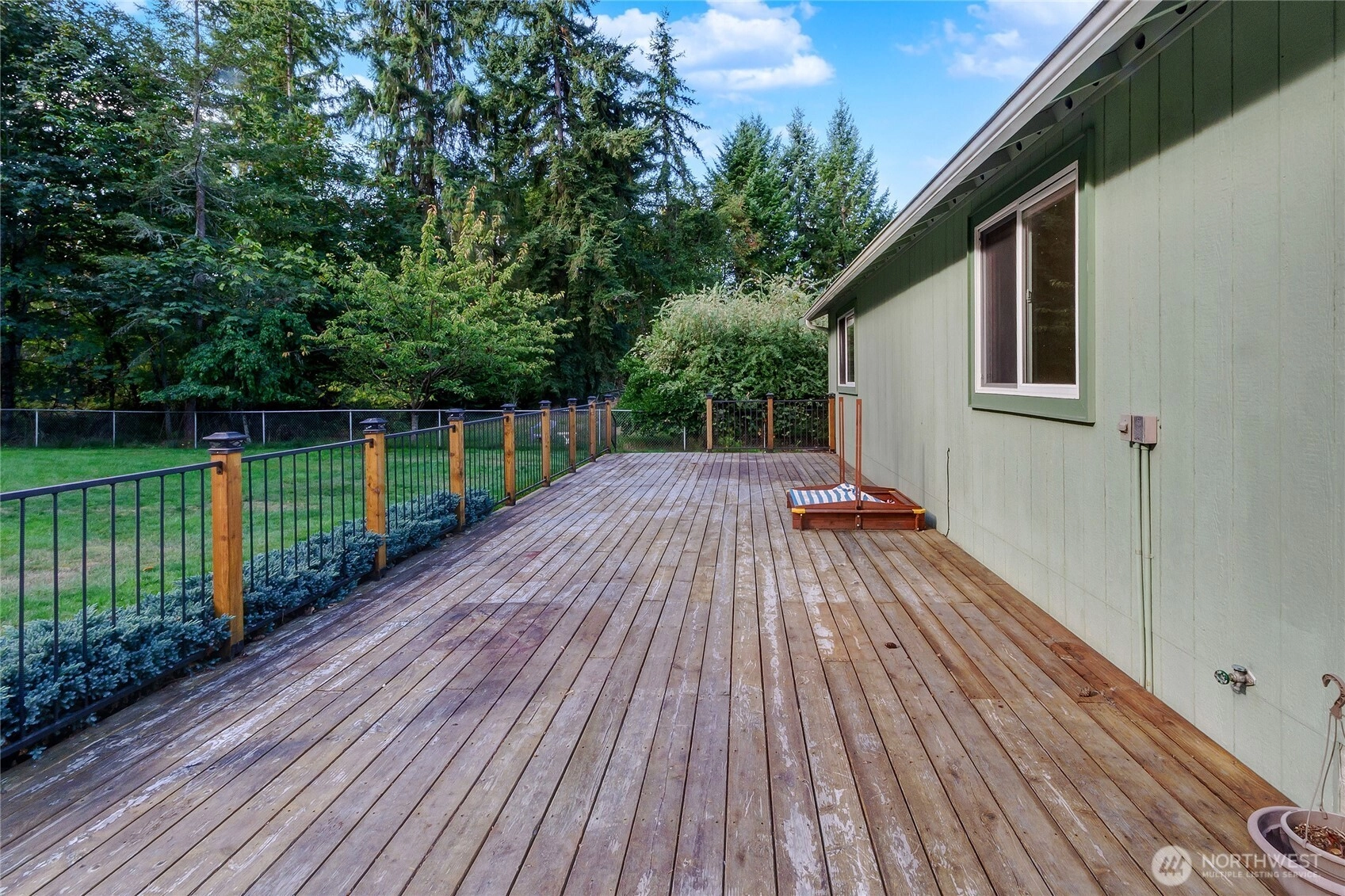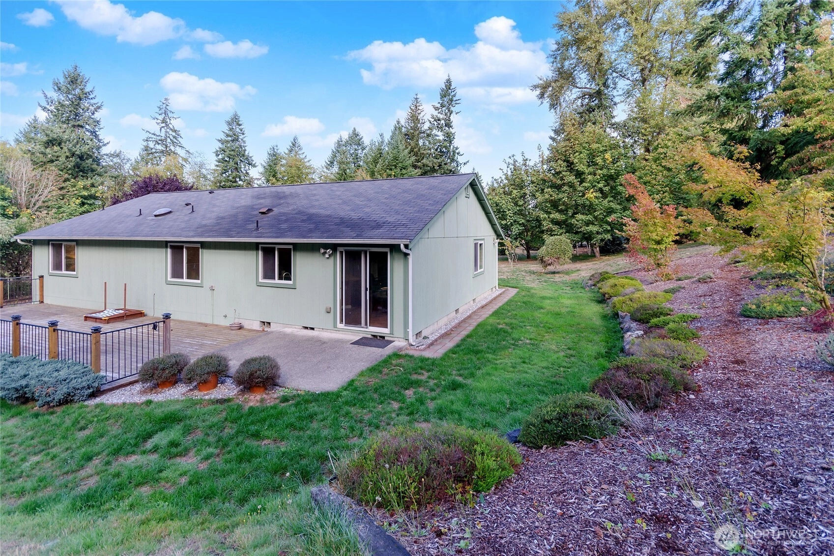 This delightful Eatonville rambler is one you won't want to miss. Nestled on 1.20 acre fully-fenced lot, enjoy your private park-like setting w/well manicured landscaping & plenty of parking; including dedicated parking for your RV. Step inside to the airy & open floor plan boasting all new LVP & Anti -allergen carpets throughout, a beautiful chef's kitchen w/new Black Stainless LG appliances, a cozy wood burning fireplace & a bonus/office space off the entry. Out back your oversized deck looks out to the gorgeous back yard. The home is also wired for a generator, keeping you cozy no matter the weather. Easy commute to JBLM, Puyallup & Tacoma. Well maintained private road w/maintenance assessment.