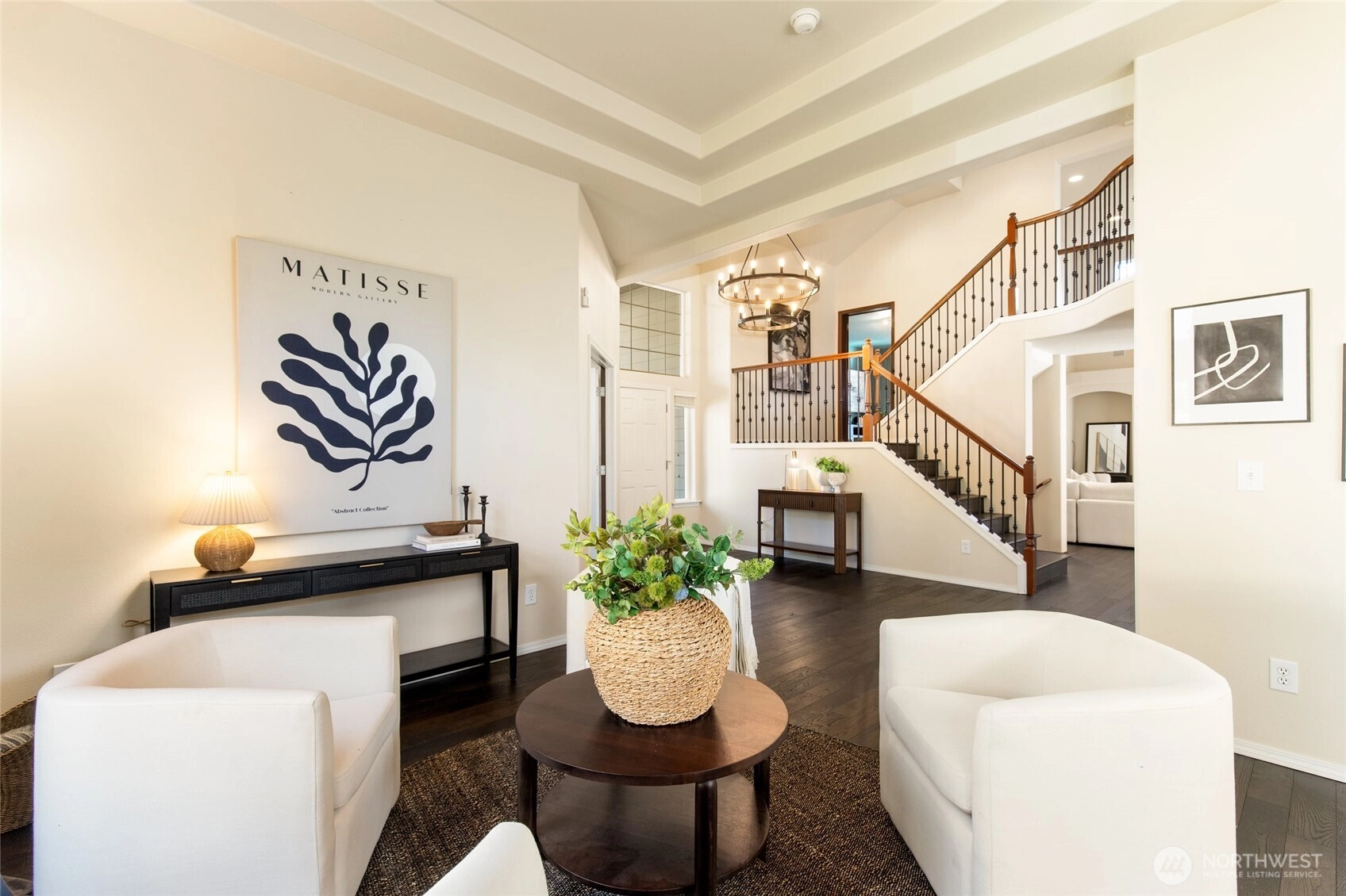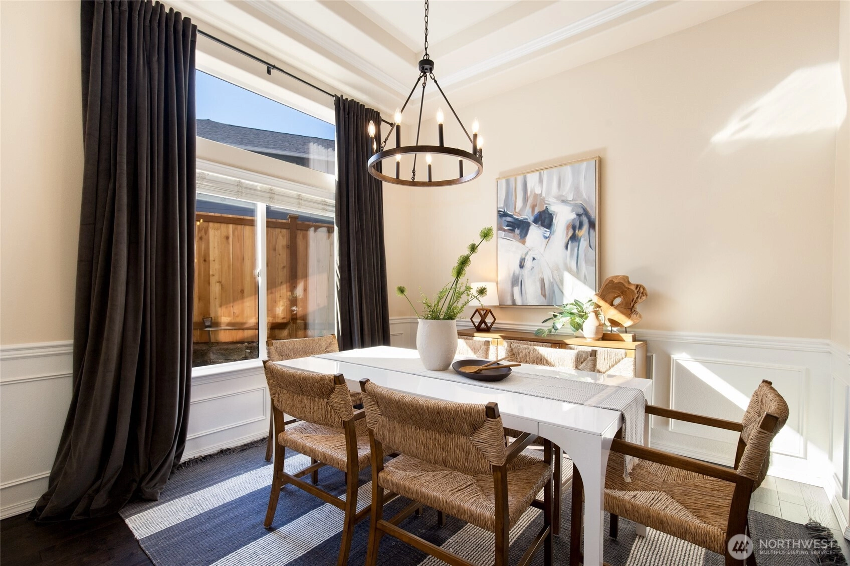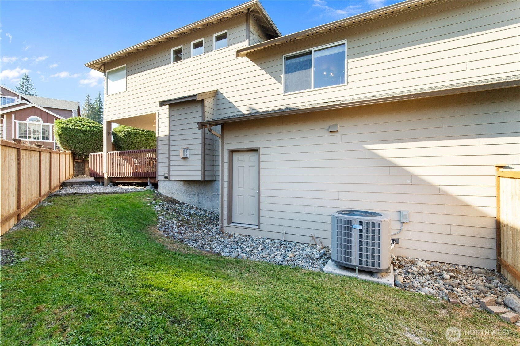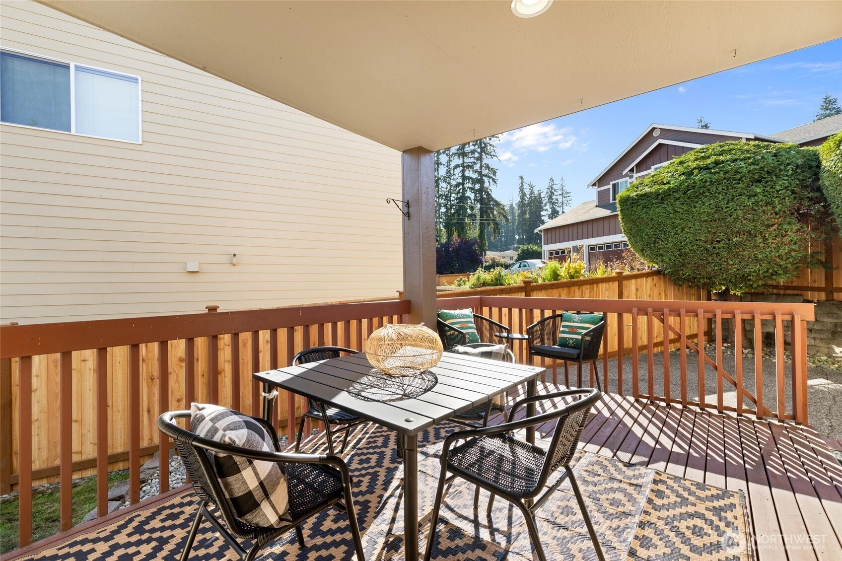 Step inside & be welcomed by a grand entry w/vaulted ceilings & lux dark walnut floors, setting the tone for this stunning 2,700 sq ft 2-story home. The spacious kitchen is designed for entertaining, featuring a large island, & updated S/S appliances. Enjoy your morning coffee or unwind in the evening on the covered back deck. The main floor offers formal living & dining rooms w/elegant coffered ceilings, a family room w/built-in speakers, high-efficiency AC heat pump & office. A custom floor plan includes 2 bedrooms, a full bath, & bonus room on the mid-level, w/a private primary suite upstairs. A huge 3 car garage finishes out this home. Situated on a quiet cul-de-sac, Moments to Mill Creek Town Center & freeways. This home is a must see!