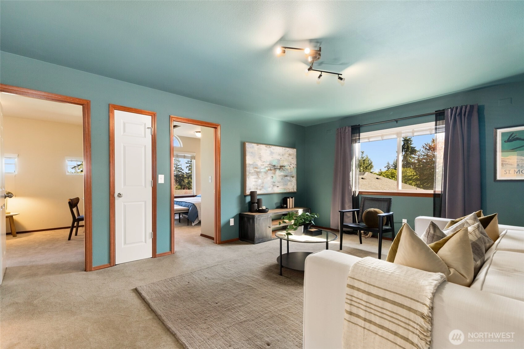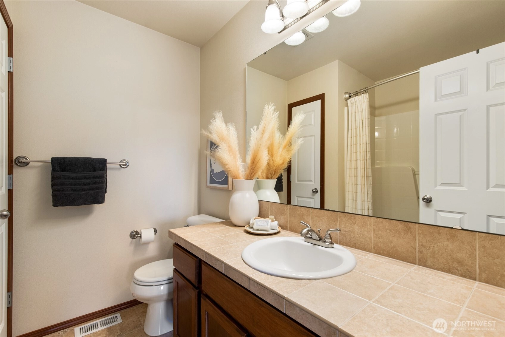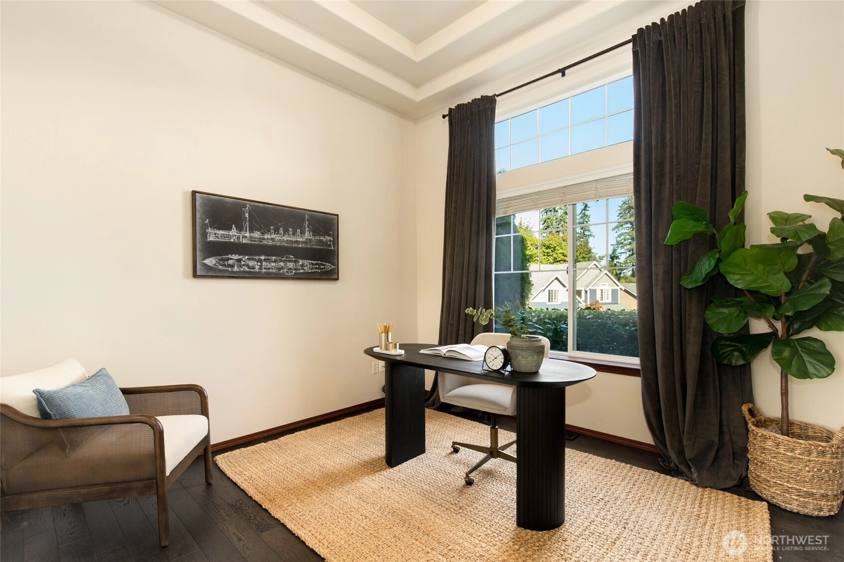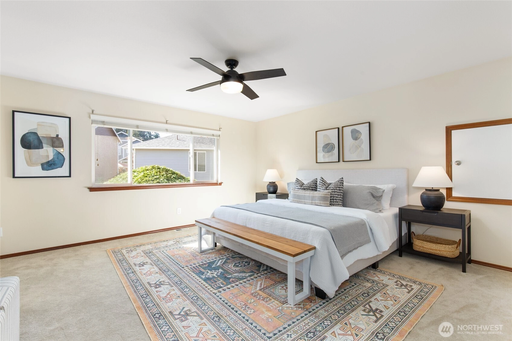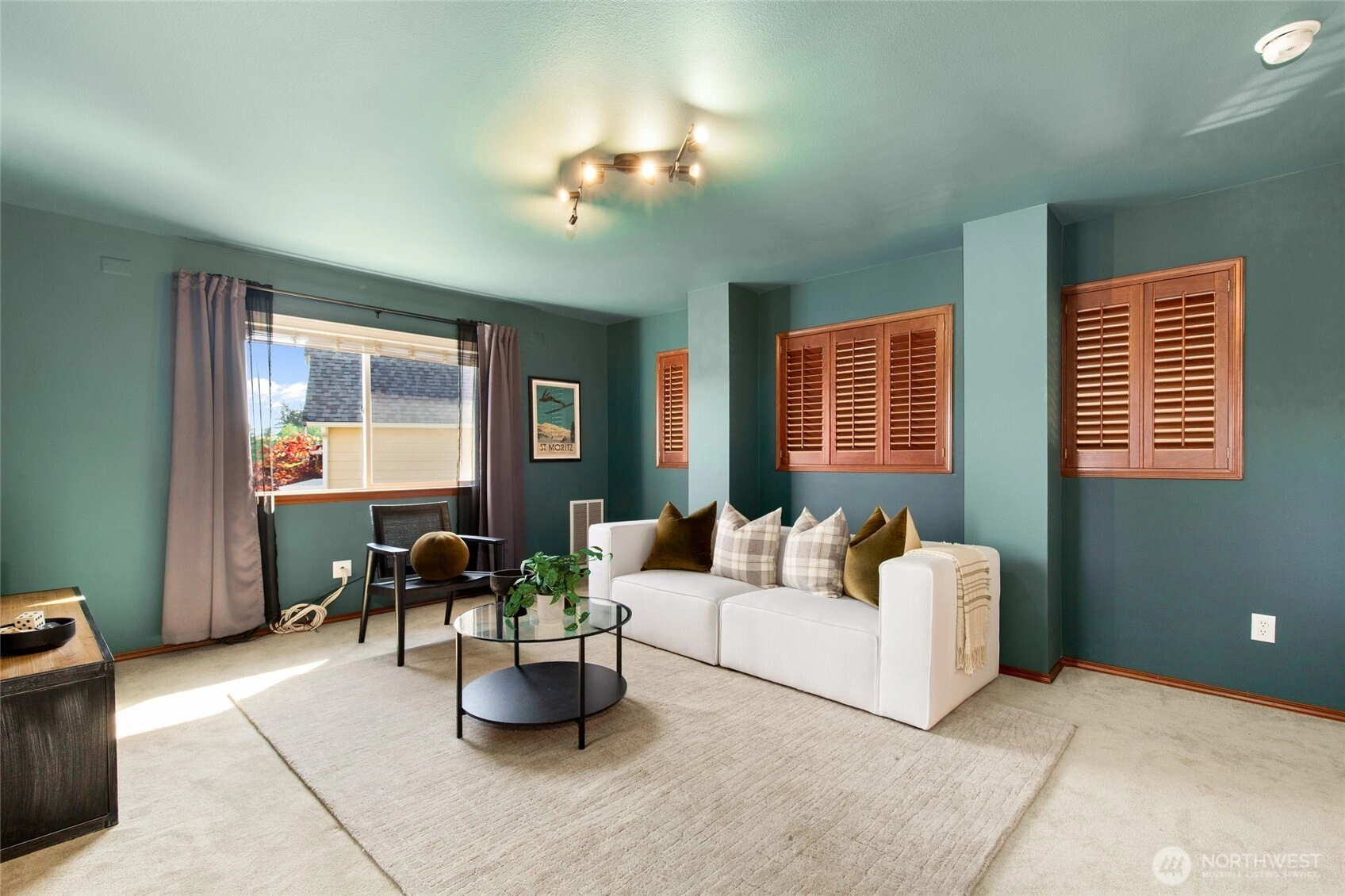 Step inside & be welcomed by a grand entry w/vaulted ceilings & lux dark walnut floors, setting the tone for this stunning 2,700 sq ft 2-story home. The spacious kitchen is designed for entertaining, featuring a large island, & updated S/S appliances. Enjoy your morning coffee or unwind in the evening on the covered back deck. The main floor offers formal living & dining rooms w/elegant coffered ceilings, a family room w/built-in speakers, high-efficiency AC heat pump & office. A custom floor plan includes 2 bedrooms, a full bath, & bonus room on the mid-level, w/a private primary suite upstairs. A huge 3 car garage finishes out this home. Situated on a quiet cul-de-sac, Moments to Mill Creek Town Center & freeways. This home is a must see!