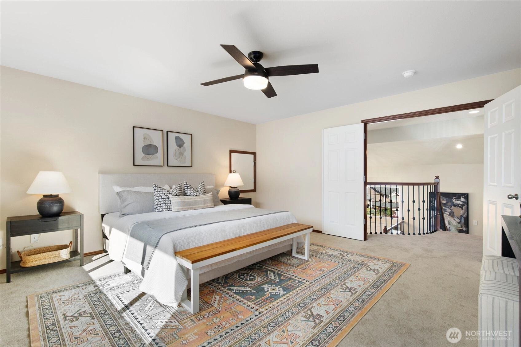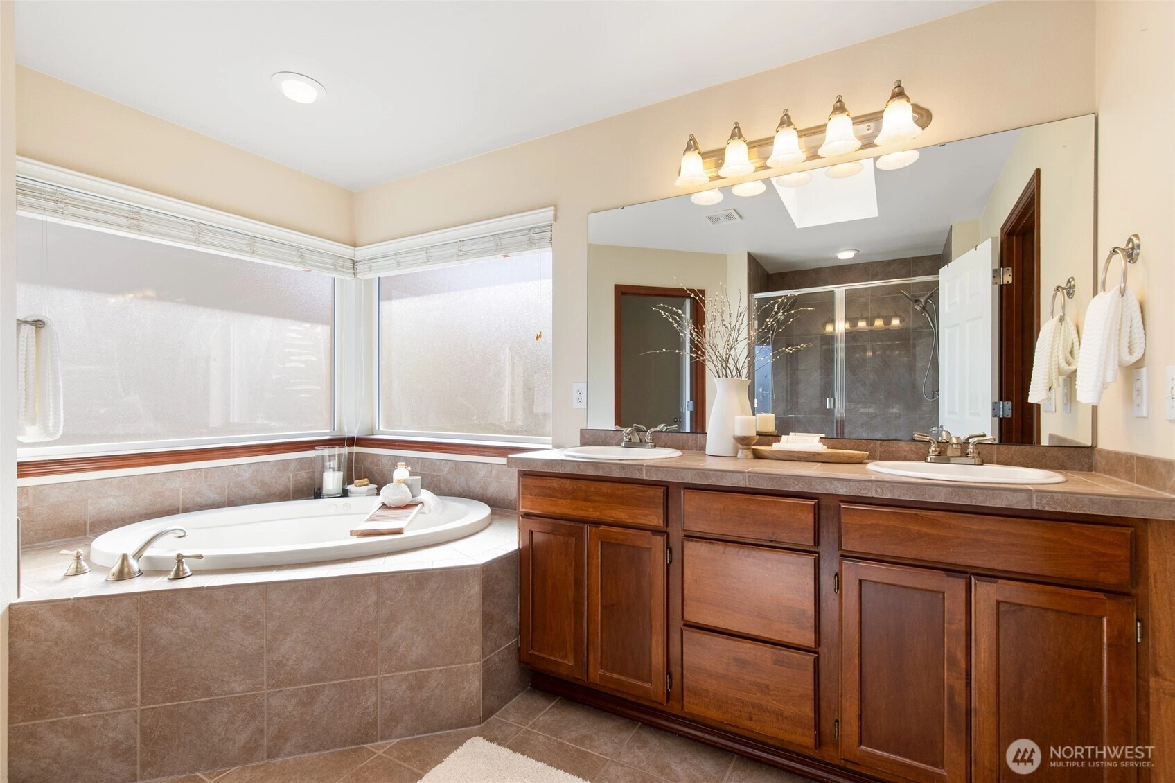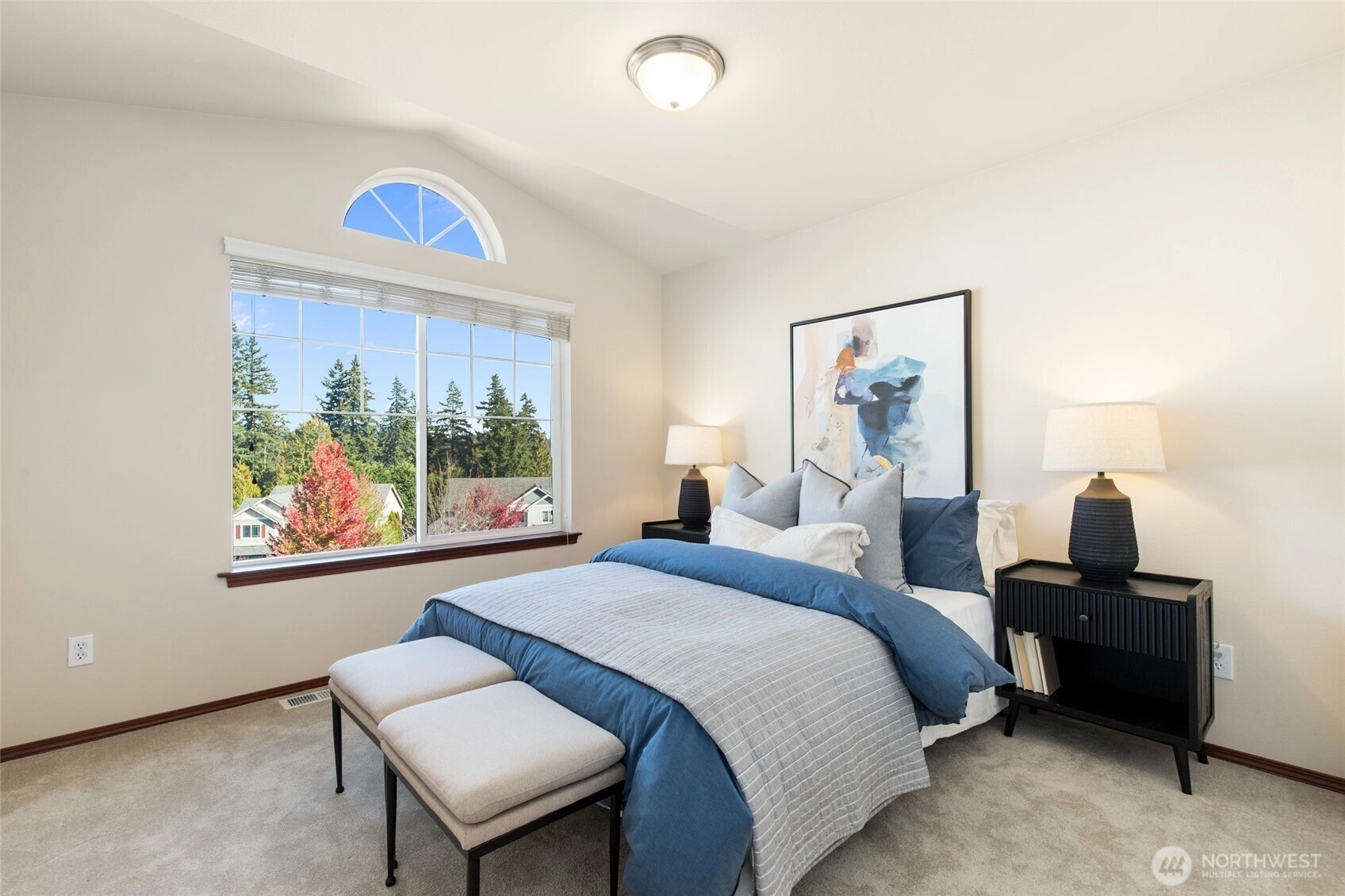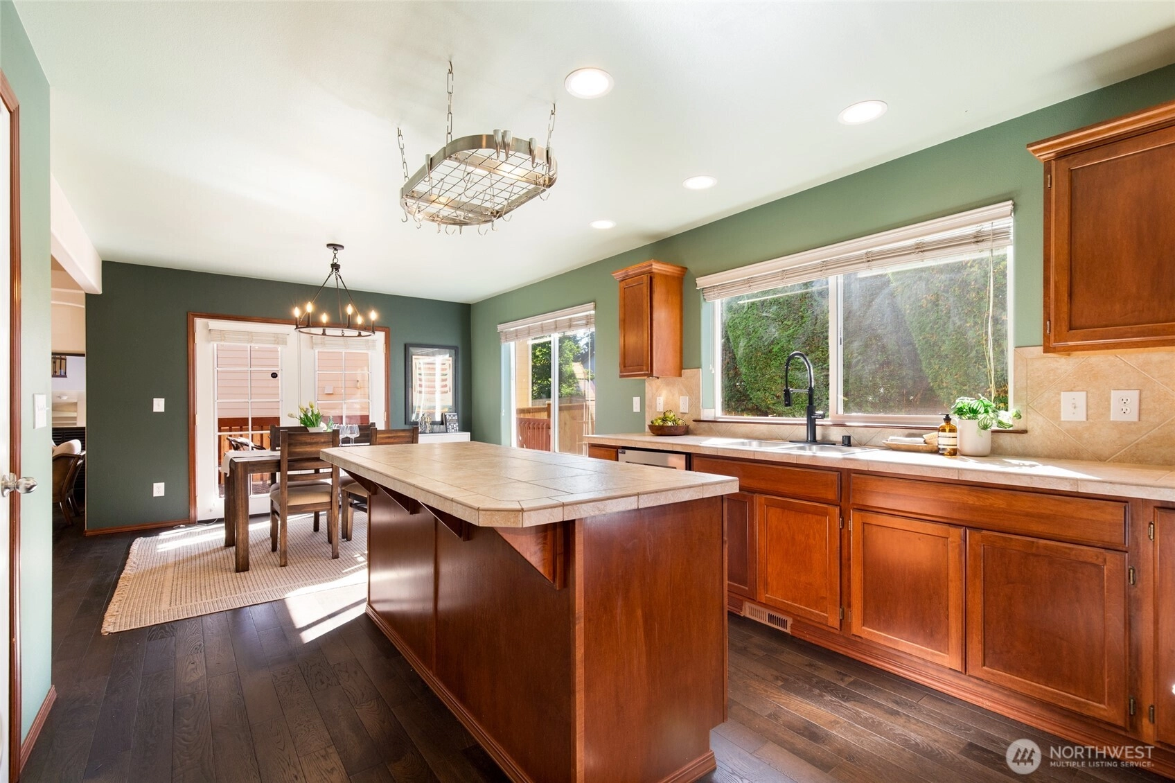 Step inside & be welcomed by a grand entry w/vaulted ceilings & lux dark walnut floors, setting the tone for this stunning 2,700 sq ft 2-story home. The spacious kitchen is designed for entertaining, featuring a large island, & updated S/S appliances. Enjoy your morning coffee or unwind in the evening on the covered back deck. The main floor offers formal living & dining rooms w/elegant coffered ceilings, a family room w/built-in speakers, high-efficiency AC heat pump & office. A custom floor plan includes 2 bedrooms, a full bath, & bonus room on the mid-level, w/a private primary suite upstairs. A huge 3 car garage finishes out this home. Situated on a quiet cul-de-sac, Moments to Mill Creek Town Center & freeways. This home is a must see!
