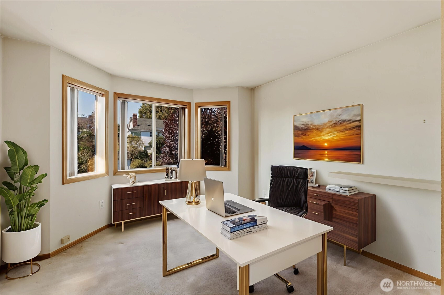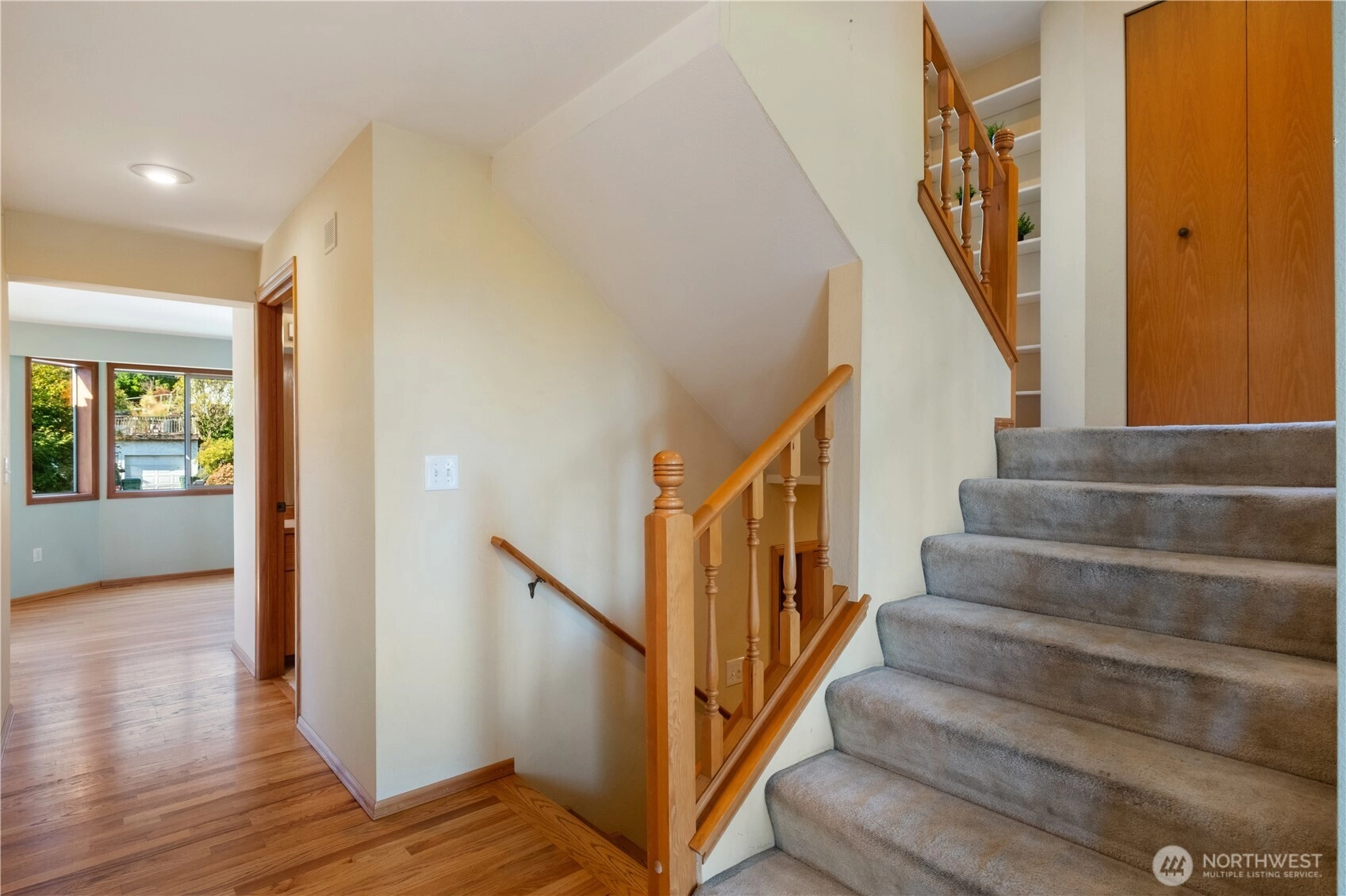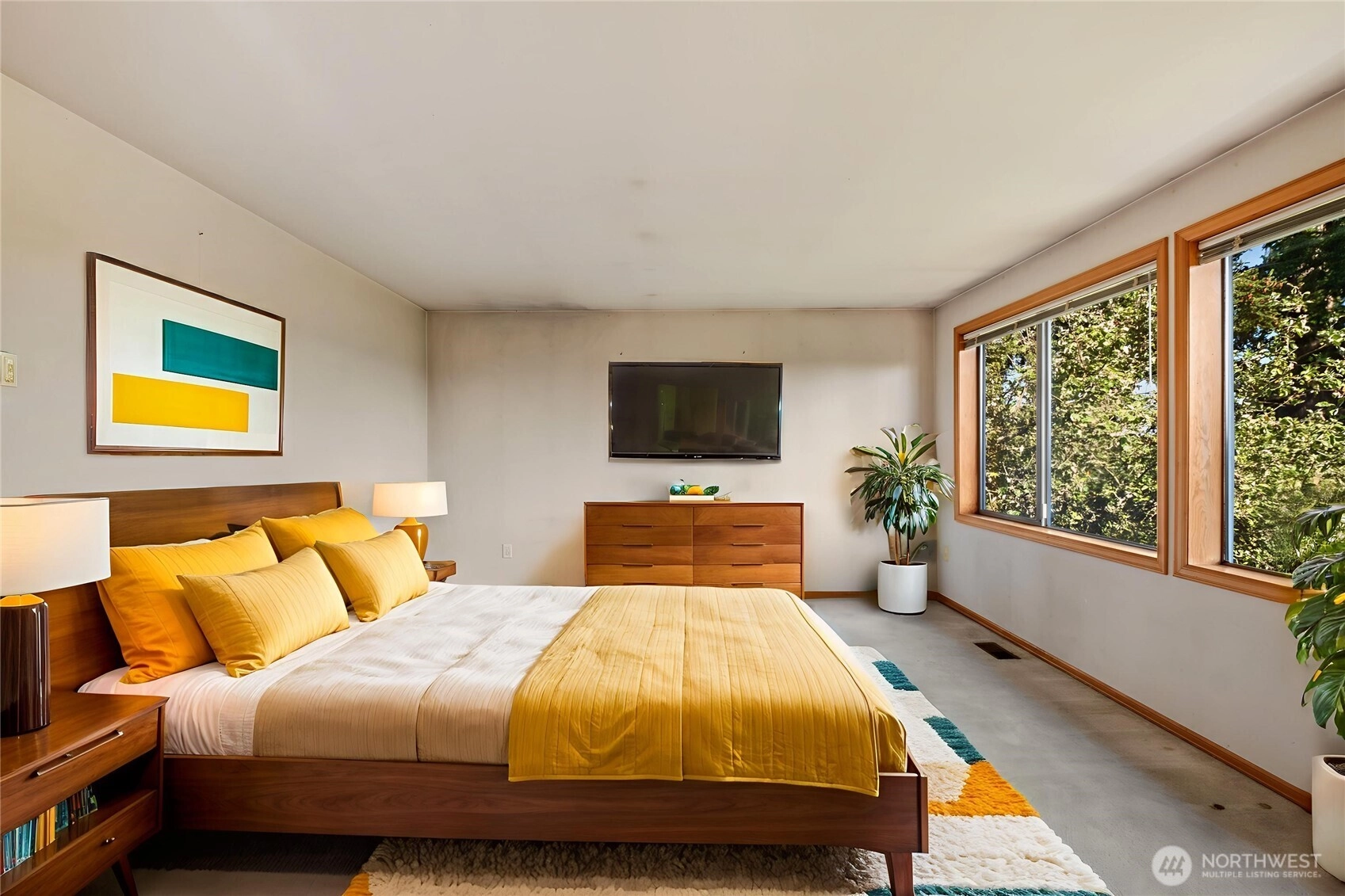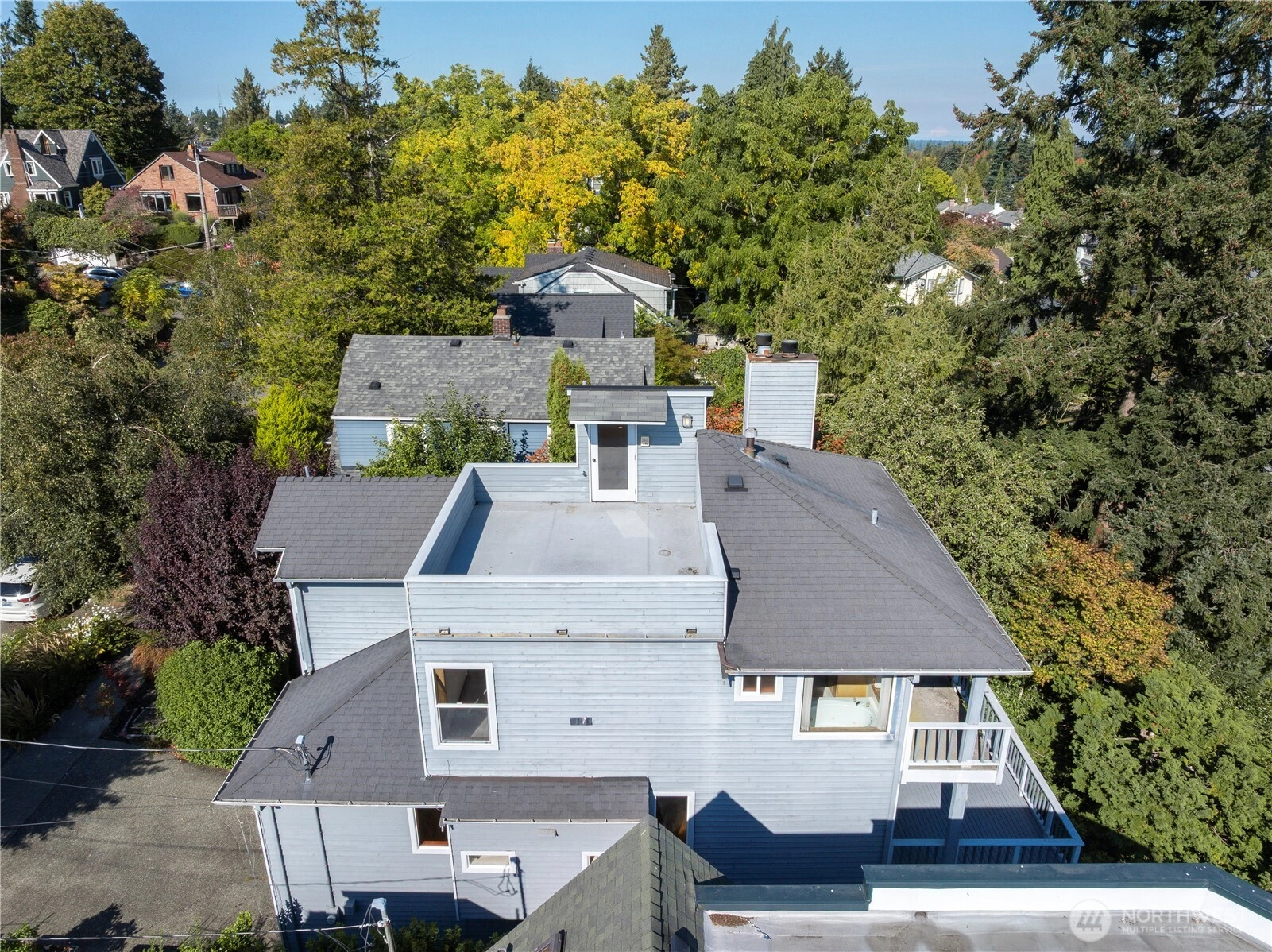 Welcome to your City Oasis, this 1990 Contemporary home is in the amazing Ravenna Neighborhood! Enjoy sidewalks & tree lined streets close to the heart of Seattle, yet far enough from the city bustle. Main level has a wonderful living room w/fireplace, dining room, 1/2 bath (with full laundry) & kitchen w/fabulous deck out the back. Lower daylight level has a large bedroom w/gas fireplace & slider door to private patio+adj. 3/4 bathroom. Upper level has primary w/4 piece bath, private deck, & walk-in closet. There are 2 other bedrooms & another full bath on this level. Fantastic rooftop deck w/bar sink. Enjoy territorial views & long views of Mt Rainier, Lake Washington & DT Seattle. Two car garage. Home is in need of some repair & TLC.