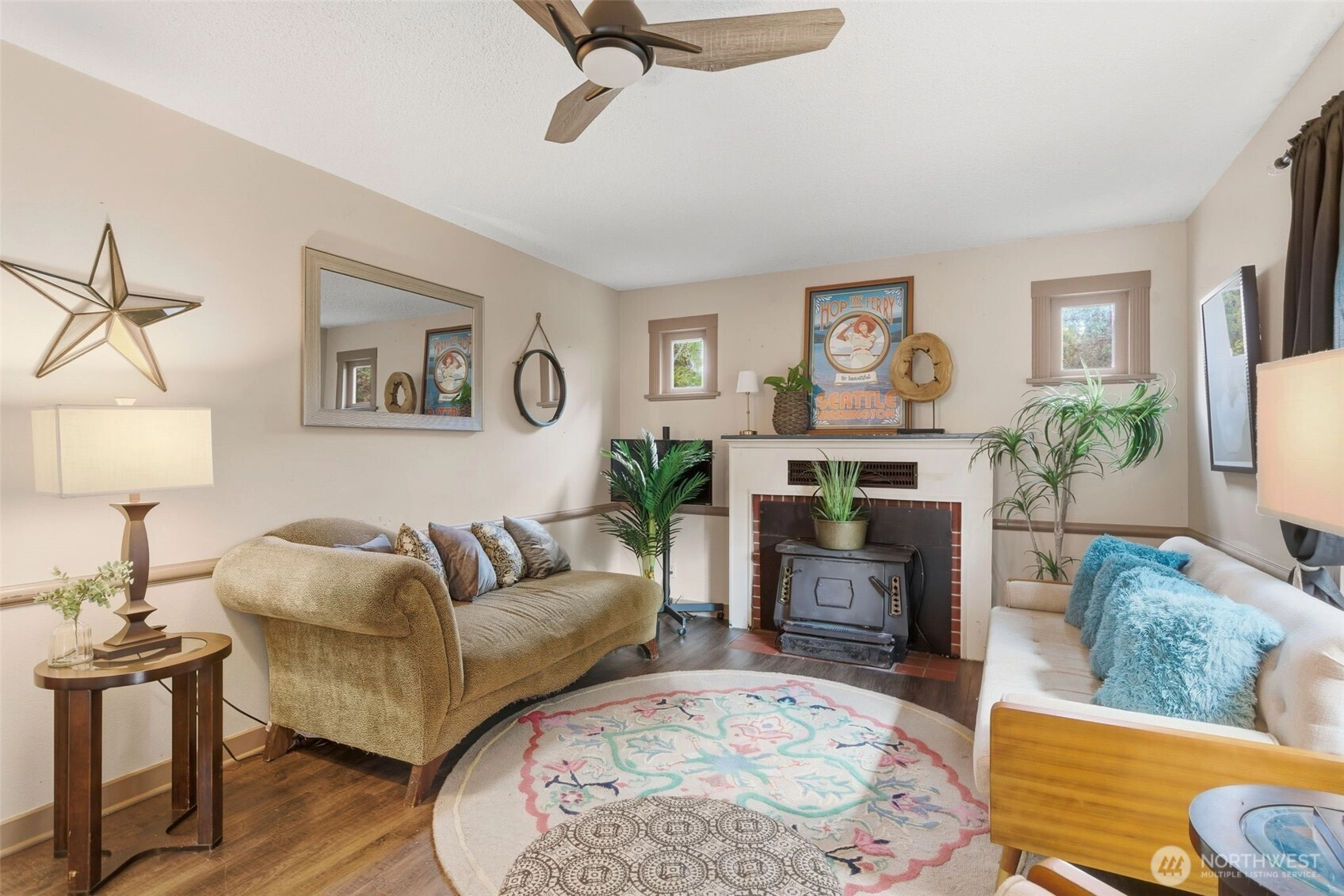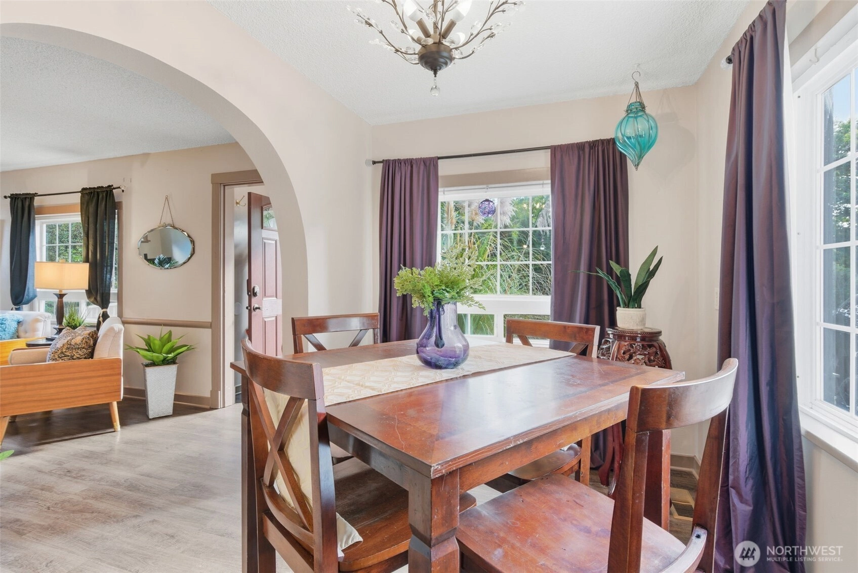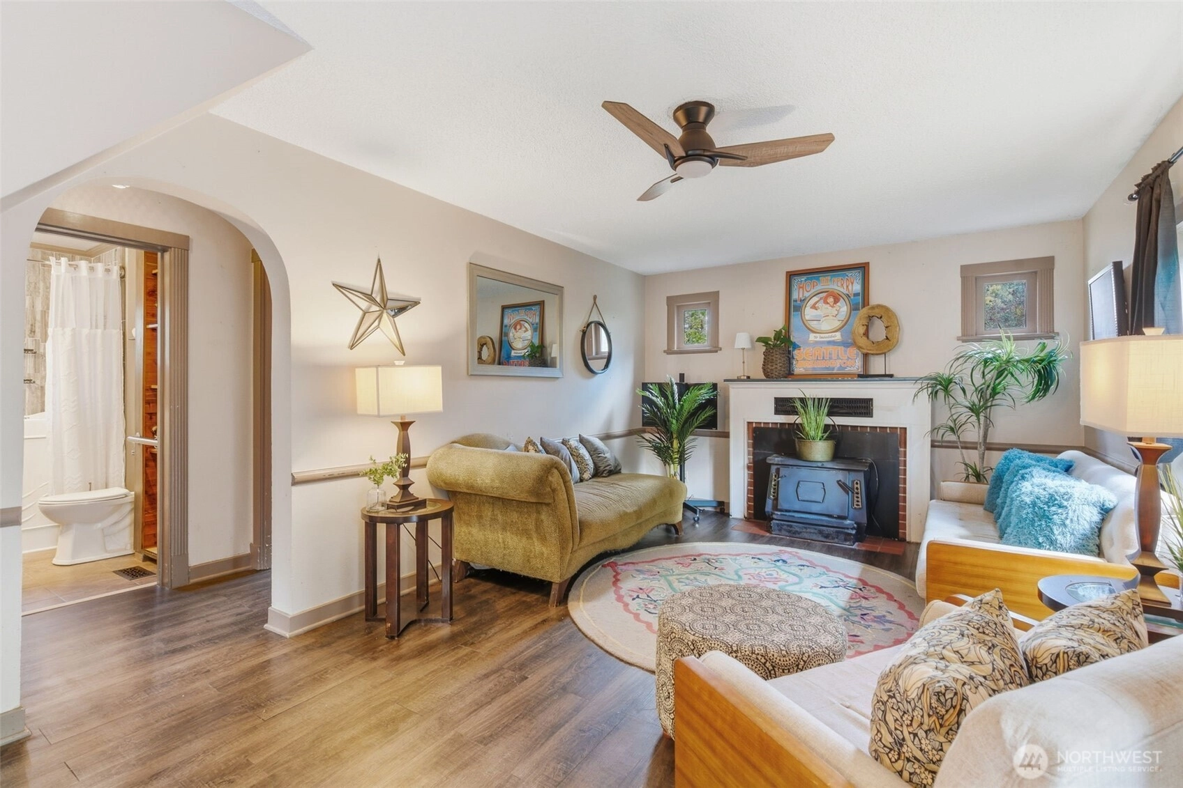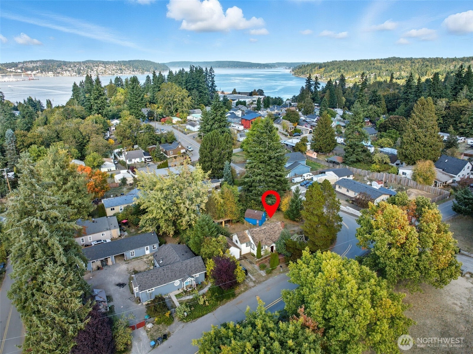 Charming 1937 Port Orchard bungalow on a sunny corner lot across from Veteran’s Memorial Park! This 2-bed, 1-bath home blends vintage character with practical updates. A welcoming archway leads to the dining room, while the cozy living room features a wood-burning fireplace. Handicap-accessible entry ramp and bath with walk-in tub offer added convenience. The unfinished basement provides room for storage or hobbies. Outside, enjoy a fenced backyard with covered gazebo for relaxing or entertaining, detached garage, and storage shed. Just minutes to the Annapolis foot ferry to Bremerton and the Southworth ferry to Seattle! Close to schools, Bay St. shopping, and the waterfront—ideal for those seeking character, comfort, and location.