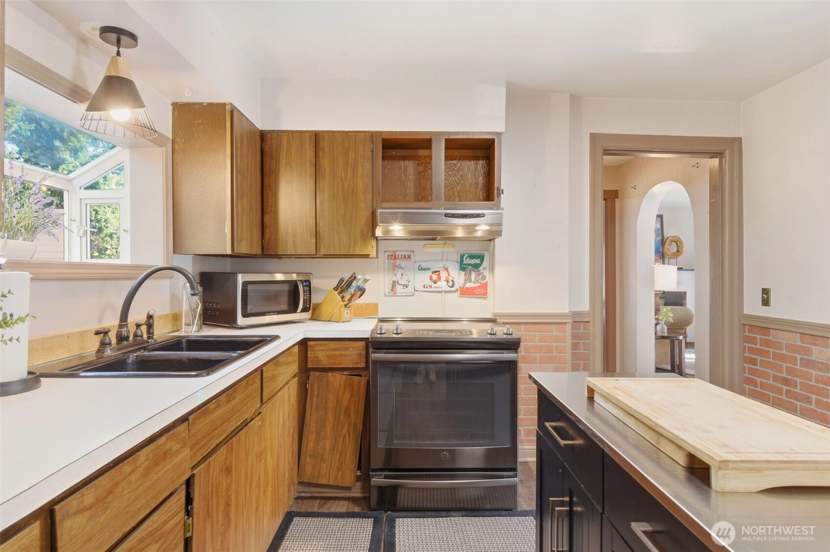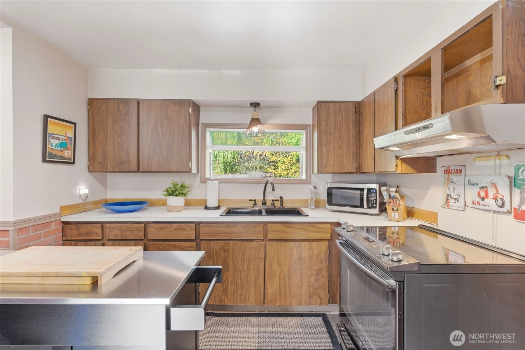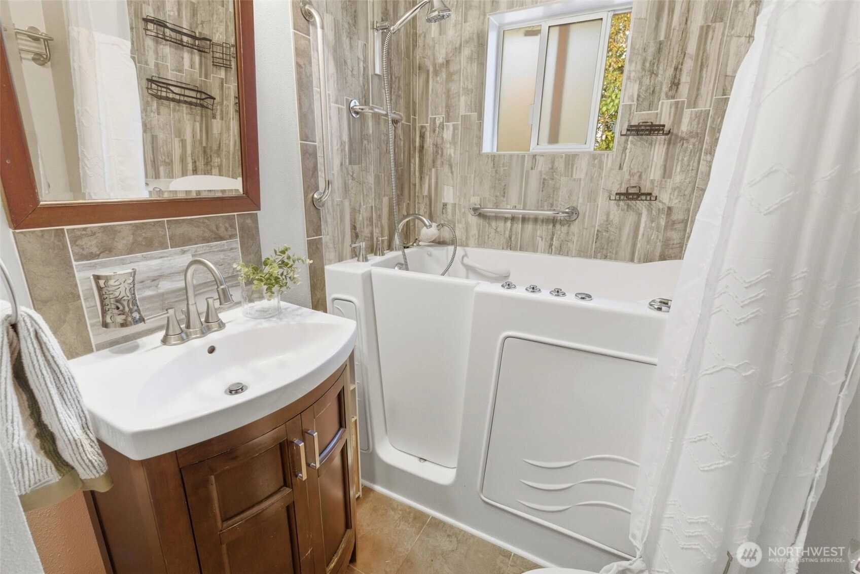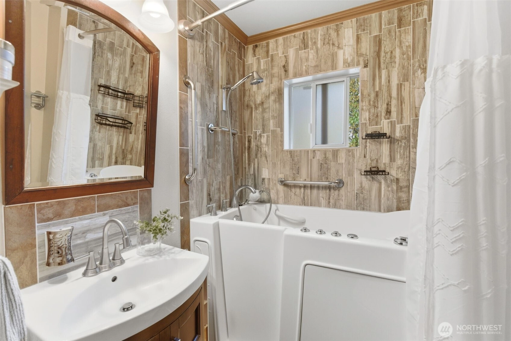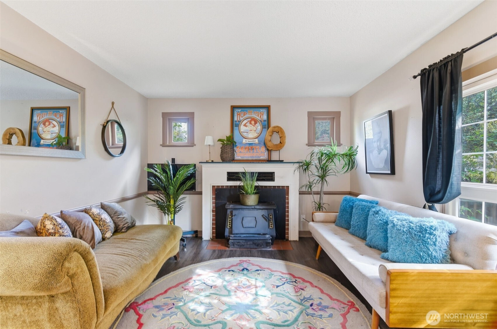 Charming 1937 Port Orchard bungalow on a sunny corner lot across from Veteran’s Memorial Park! This 2-bed, 1-bath home blends vintage character with practical updates. A welcoming archway leads to the dining room, while the cozy living room features a wood-burning fireplace. Handicap-accessible entry ramp and bath with walk-in tub offer added convenience. The unfinished basement provides room for storage or hobbies. Outside, enjoy a fenced backyard with covered gazebo for relaxing or entertaining, detached garage, and storage shed. Just minutes to the Annapolis foot ferry to Bremerton and the Southworth ferry to Seattle! Close to schools, Bay St. shopping, and the waterfront—ideal for those seeking character, comfort, and location.